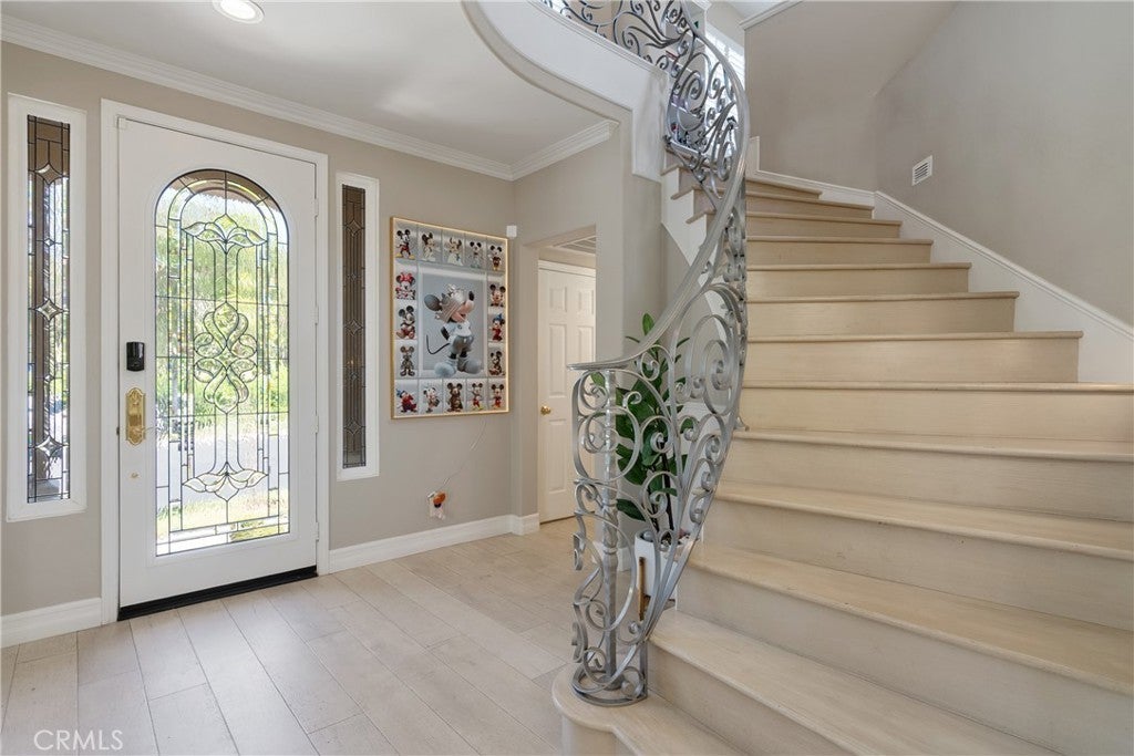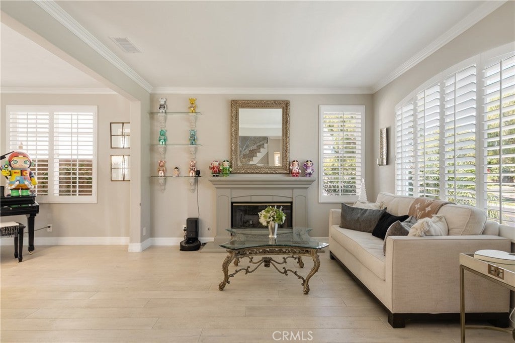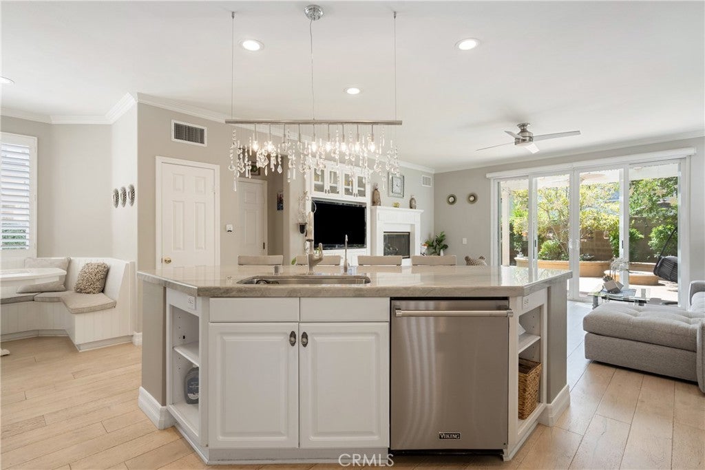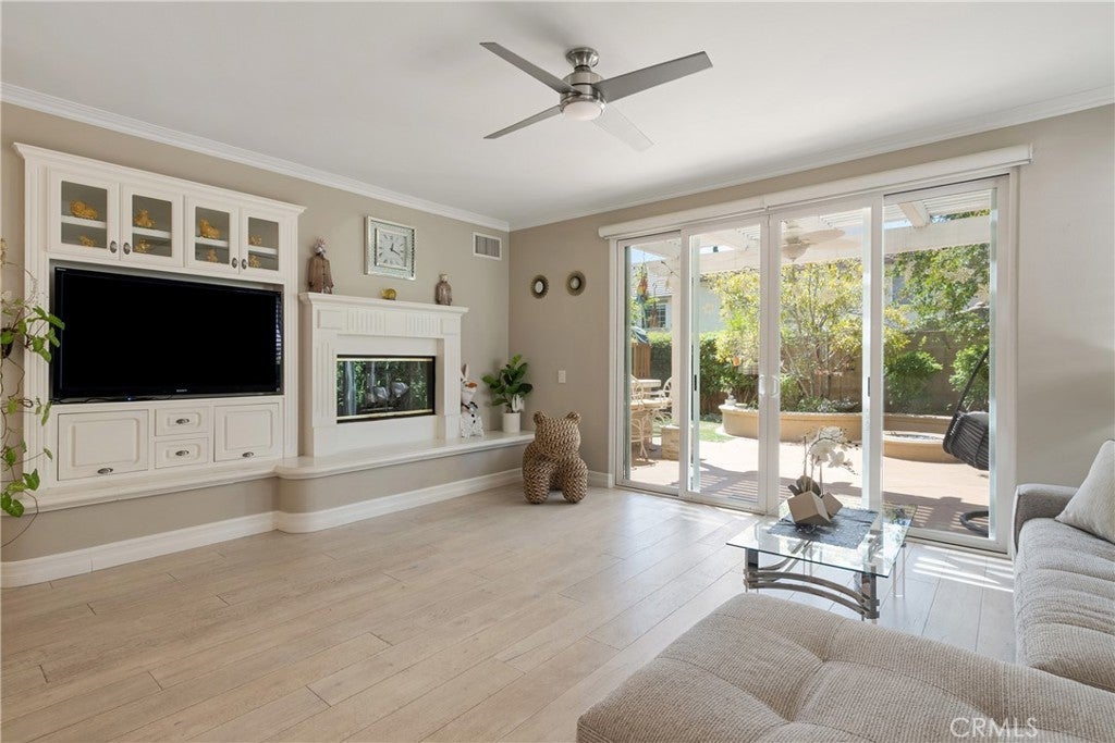 Gorgeous Home in the highly sought after 24-hr GUARD GATED community of NorthPark! As you enter the home, you will love the inviting open floorplan featuring soaring ceilings, hardwood flooring throughout, and lots of natural light. The recently remodeled CHEF'S KITCHEN is bright and airy, featuring a sit up center island, white cabinets, full backsplash, Quartz countertops, Viking stainless appliances, and a separate built in breakfast nook with table. The open kitchen overlooks the Gorgeous Great Room which features built-in media cabinets, a cozy fireplace with beverage cooler and direct access to your private backyard oasis. Step outside to discover the Professionally designed backyard with patio cover, built-in barbeque with cooking warmer, sit-up dining counter area, fire pit manicured softscape/hardscape with grass, flowers and fruit trees. With low HOA and Mello Roos, residents can indulge in the community's amenities including 5 pools, tennis courts, walking trails, and direct access to the acclaimed Hicks Canyon Elementary School. Conveniently located within walking distance to Orchard Hills Shopping Center, which includes Pavilions, Wells Fargo, and many dining options. Zoned for California Distinguished Tustin Unified Schools.