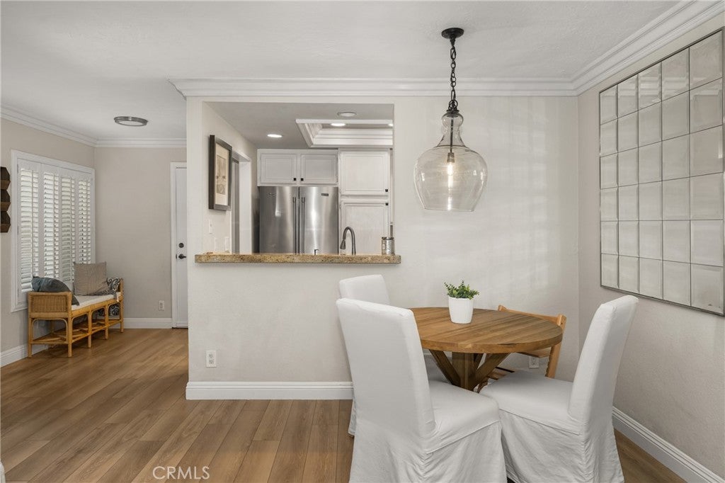 *LARGE OUTDOOR PATIO* *LUXURY VINYL FLOORING* *NEWER APPLIANCES INCLUDING STACKED WASHER & DRYER* *DIRECT GARAGE ACCESS* *SINGLE-LEVEL LIVING* *UPDATED BATHROOM* Discover an incredible opportunity to own a piece of Aliso Viejo’s coveted lifestyle in the exclusive Heather Ridge community. This unique, single-level condo provides a rare blend of comfort, style, and private outdoor living, allowing you to enjoy a premium location surrounded by beautiful homes. Sitting gracefully above the street, this 994 sq. ft. Heather floorplan offers stunning views of the surrounding pine trees and hills. The interior has been thoughtfully updated with beautiful luxury vinyl flooring throughout, giving the spacious living area a fresh, modern feel. Find comfort in two bedrooms and enjoy the renovated bathroom's touch of elegance. The jack-and-jill bath includes a convenient dual vanity with direct access from the primary suite, providing a private and seamless experience. The kitchen is equipped with newer appliances and features a pass-through bar window, perfect for entertaining. For added convenience and security, the personal one-car garage is attached with direct access to the home and features an epoxy-coated floor. Step outside to discover a truly exceptional feature: a large, private outdoor patio complete with a hardscaped area perfect for BBQing, a gazebo for shaded relaxation and a turf yard space. As a resident of Heather Ridge, you'll have access to fantastic amenities, including a nearby sparkling pool, spa and two tennis courts. For the outdoor enthusiast, this home is ideally located near the Aliso and Wood Canyon Wilderness Park, offering over 30 miles of trails for hiking, running, and mountain biking. After meeting your step goal, grab your favorite folding chair and relax at any of the numerous beaches scattered along the coast of Laguna and Dana Point. Enjoy the ultimate convenience with a location that's just a short walk from shopping and dining options just south of Pacific Park Drive. Explore the Marketplace of Laguna Niguel and nearby Plaza de la Paz, where a variety of shops and restaurants await.