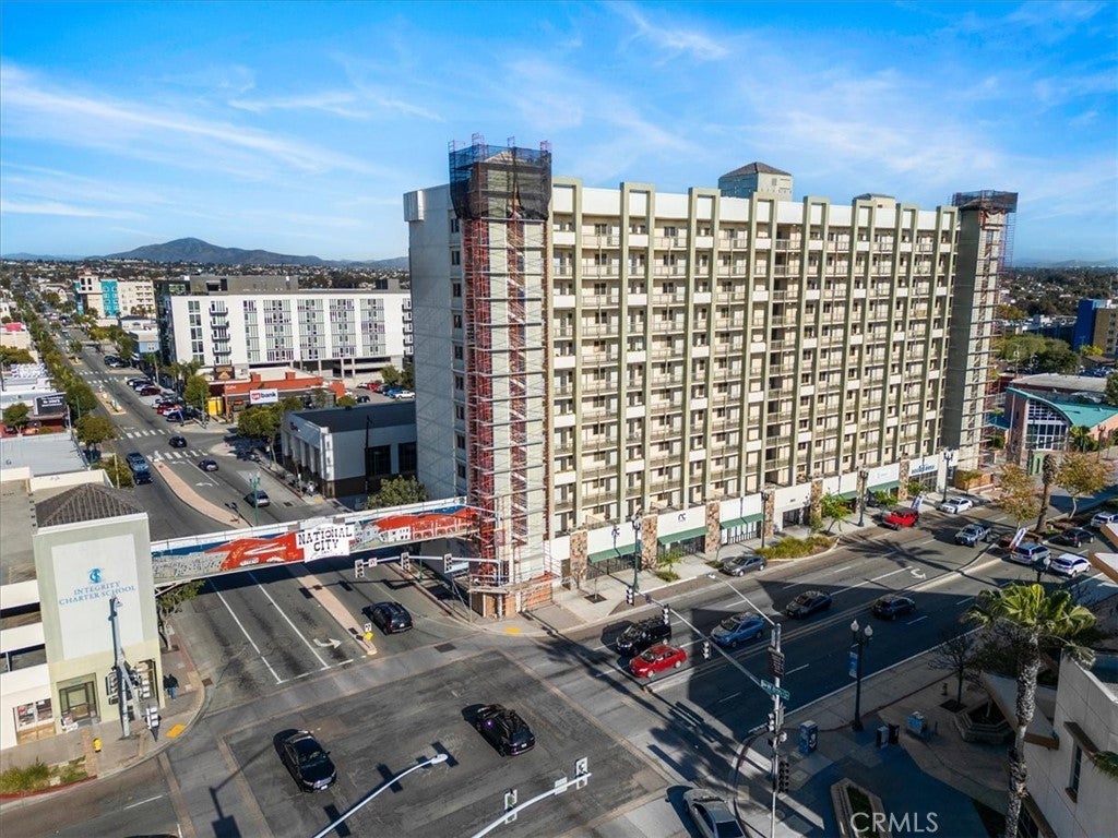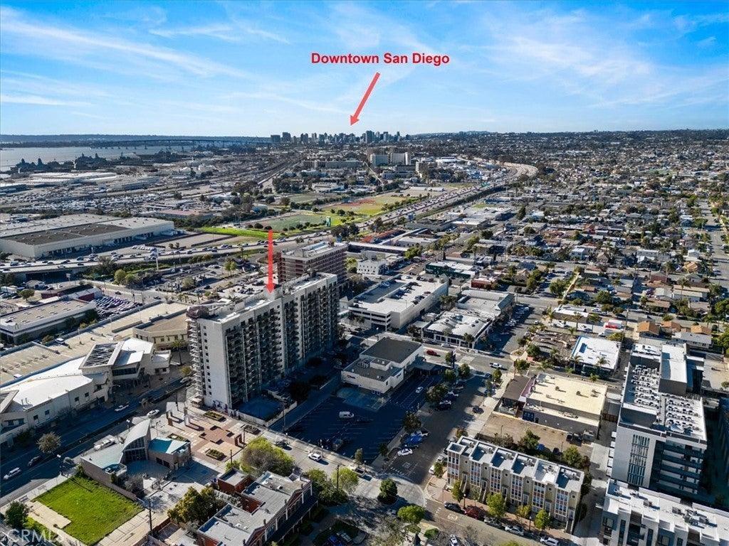Welcome to this stylish 7th-floor condo offering sweeping views of the San Diego Bay and Coronado. Breathtaking Bay Views in the Heart of National City! This amazing updated 1-bedroom, 1-bath home is move-in ready, featuring brand-new floors, fresh paint, sleek countertops, and a modern range. This one has 4 burners instead of the 2 original ones in all other units. No mini fridge but a space for your full refrigerator. Step into the spacious bedroom that opens to your private deck—perfect for sipping your morning coffee or entertaining under the city lights. Enjoy a well-designed layout with only one shared wall for added privacy. The community amenities elevate your lifestyle with a fitness center, spa, and more. Located in the vibrant heart of the city, this home offers the perfect mix of urban convenience and lively nightlife—just steps from the popular Market on 8th, a buzzing local hub where people eat, connect, and celebrate community. Plus, you’re only minutes from the freeway, making commuting a breeze. Whether you’re a first-time buyer or looking to downsize without compromise, this home blends comfort, style, and convenience in one stunning package. Don’t miss the opportunity to own a piece of the skyline—schedule your tour today!