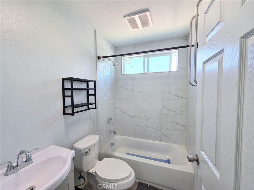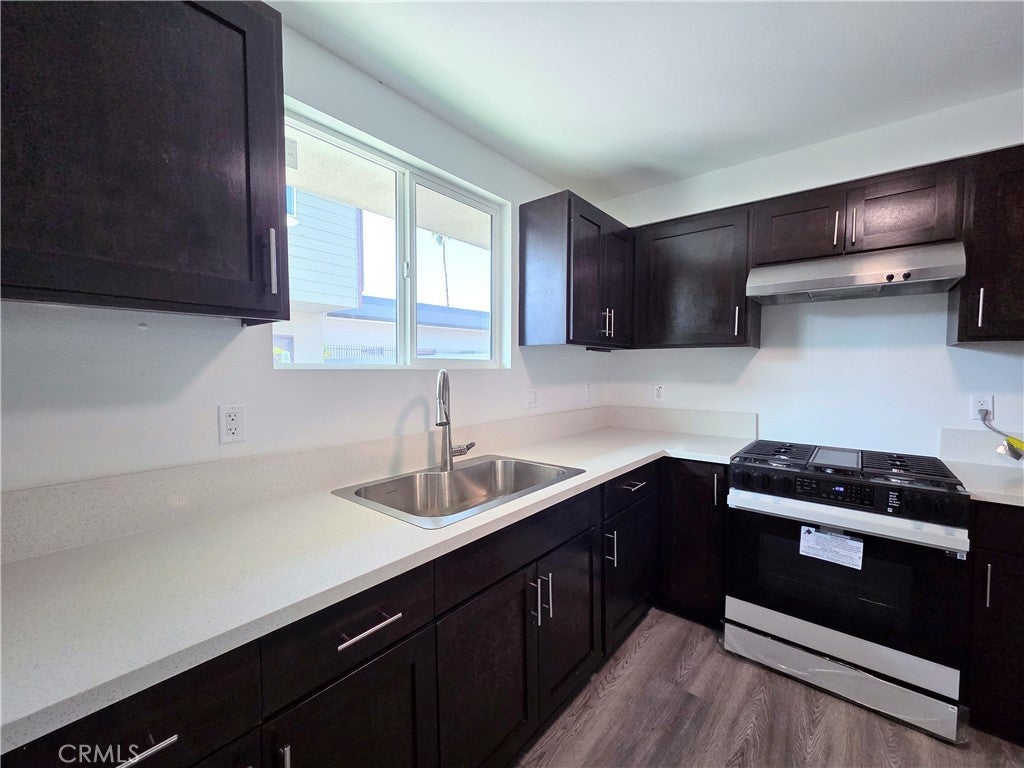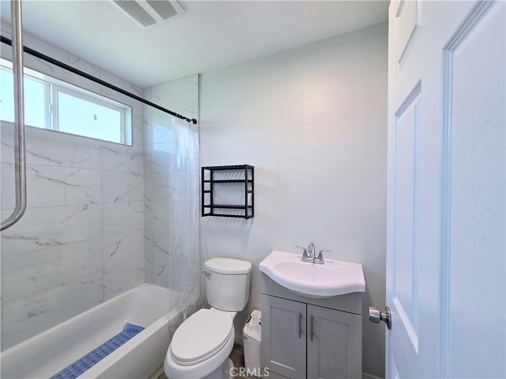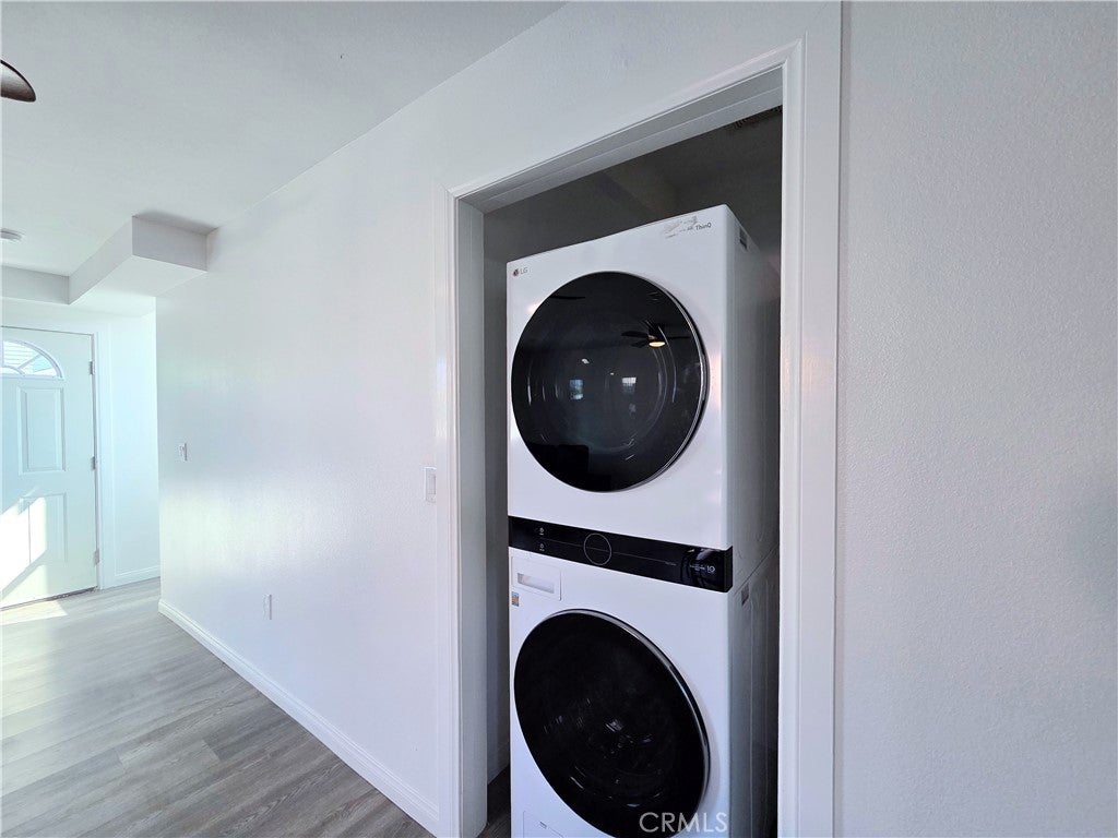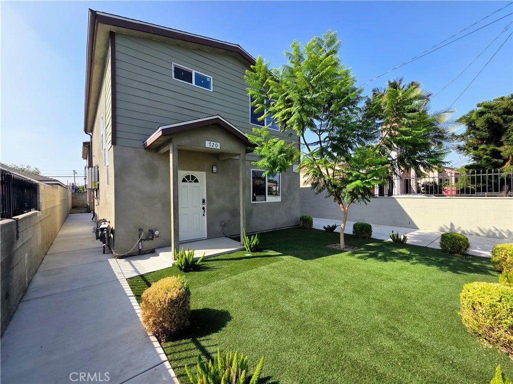 This stunning two-story front home, built in 2022, is loaded with upgrades and located in a fantastic, up-and-coming Compton neighborhood. The property features a gated driveway leading to an oversized one-car garage, a fenced turf front yard, and includes trash service for added convenience. Step inside to an expansive open-concept living area that seamlessly connects to a modern kitchen equipped with a stove and refrigerator. The main floor also offers a guest bathroom and a laundry closet with a stackable washer and dryer. Upstairs you’ll find three generously sized bedrooms, including a large primary suite with a walk-in closet and a private ensuite bathroom. The two additional bedrooms share a well-appointed hallway bathroom. Each bedroom includes ceiling fans and window coverings, and the home boasts stylish laminate flooring throughout. This home combines modern design, comfort, and functionality in a growing community.