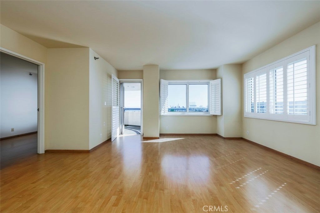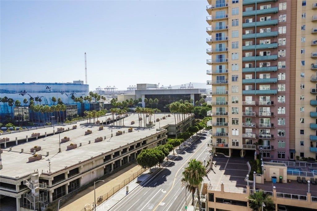 Make this ocean view HarborPlace Tower high-rise luxury condominium home. This two bedroom two bath condominium looks out to the Queen Mary, marina and Catalina island. Plus it looks right out over the Long Beach Grand Prix track giving you some of the best seats in the house. Secondary bedroom has see-through doors that look into the living area lending its self to being perfect as a den or office and can easily be closed back for additional privacy. Kitchen opens up to living area for ease of entertaining while living room connects to balcony perfect for a party or quietly taking in the view. Primary bathroom has large soaking tub to bring in that luxury feel. Full size washer dryer plus central heat and A/C gives a substantial feel. Two parking spaces are a big plus. Fantastic community with concierge service, gym, community room, meeting rooms and an inviting pool and sauna area. Live near all the beach action, marina, bike path, entertainment, restaurants, and night life.