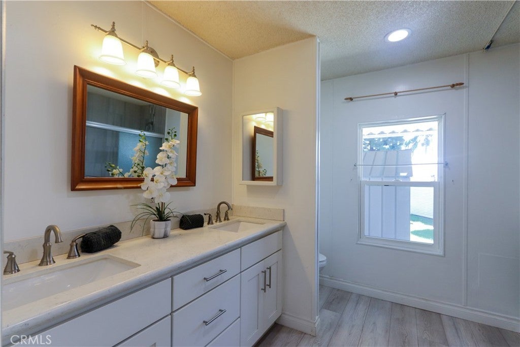 Reduced for a quick sale! Welcome to Anaheim Shores Estates, 1919 W Coronet Ave #221. A beautiful and affordable home to live in Orange County, CA! This spacious triple-wide 2-bedroom, 2-bath home offers comfort, style, and modern upgrades throughout. Step into the updated kitchen featuring soft-close pull-out drawers, quartz countertops, a full designer backsplash, stainless steel appliances (including dishwasher), recessed lighting, and a custom pantry. The open layout seamlessly flows into the large family room, which features laminated flooring, a cozy gas fireplace, and a built-in wet bar with a sink and cabinets, perfect for entertaining. The dining area with built-in cabinetry opens seamlessly to the light-filled living room. The extra-large primary suite includes a wall-to-wall walk-in closet and an upgraded bathroom with a walk-in shower. A separate laundry room provides ample storage, shelving, and a built-in sink. Additional highlights include a newer roof, some replaced windows, central A/C, forced heating, updated kitchen and bathrooms, and includes automated sprinklers. The extra-long carport, accompanied by a storage shed, offers a nice convenience. Located in the desirable Anaheim Shores Estates community, residents enjoy access to a clubhouse, BBQ area, pool, spa, greenbelt areas, and abundant guest parking. The monthly rent is only $ 1,725, one of the lower rates in the area.