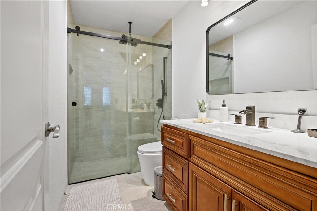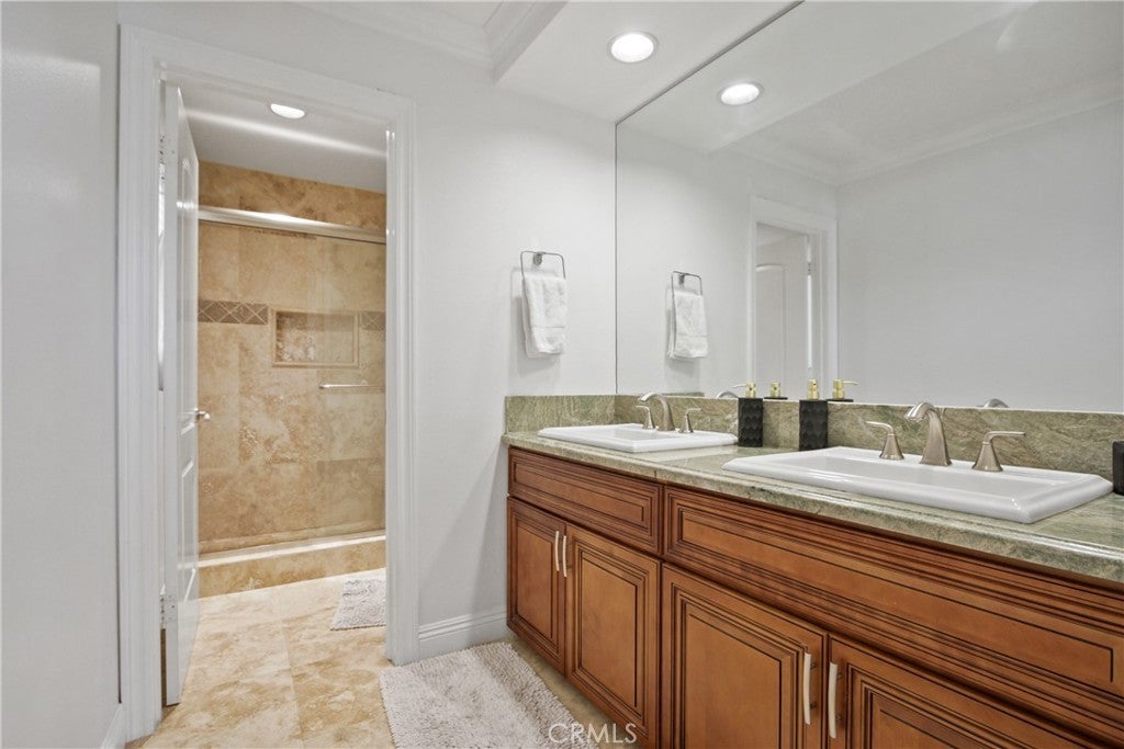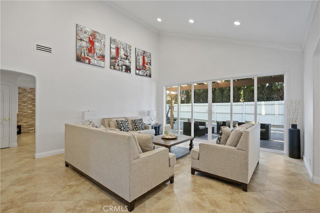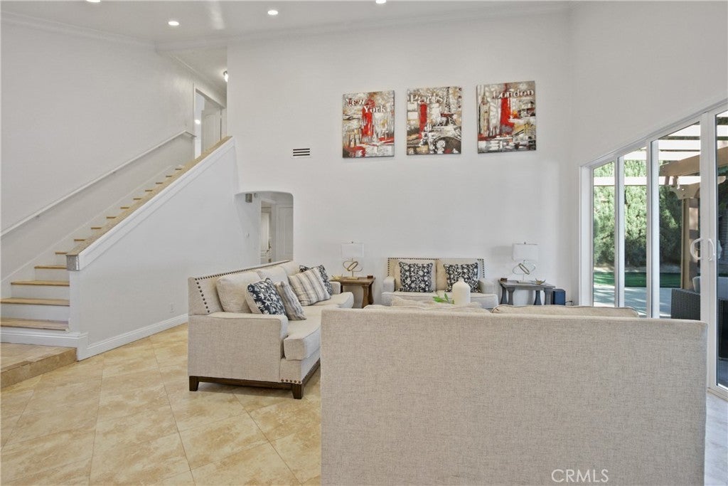 MASSIVE PRICE IMPROVEMENT AS OF NOV 27!!! Save $160,000 Off the Original Price of Your Dream Property!!! Nestled in the prestigious Westridge Community. This Artfully re-imagined Estate embodies impeccable taste, exemplifies refined elegance featuring 4 BEDROOMS, 3 BATHROOMS, OFFICE, FAMILY ROOM, 3-Car Garage with built-in cabinetry, FIRST LEVEL BEDROOM AND FULL BATHROOM-IN LAWS with independent access, NO MELLO-ROOS & EXTREMELY LOW HOA; Open-bright-airy layout, highlighted by soaring 2-Story ceilings and a stunning 15 foot, 6-panel sliding door that creates a seamless indoor-outdoor living experience—perfect for intimate gatherings and grand-scale entertaining. The Chef’s KITCHEN is a masterpiece, featuring quartzite counter tops and full-height backsplash, under-mount sink, lazy Susan cabinetry, soft-close drawers and doors, sophisticated gold-accented fixtures and matching gold hardware, 5-burner wolf range top with range hood and built-in: Contemporary LG Refrigerator with commercial-edge design, dishwasher, Kenmore convention oven & microwave. DINNING ROOM with waterfall quartzite table that adds sophistication and style. On the main level, you will find a private OFFICE with elegant accent wall and a welcoming FAMILY ROOM with surround system, veneer accent wall, and a sleek wet bar, as well as a spacious BEDROOM AND Spa Inspired FULL BATHROOM ideal for visitors or IN-LAWS with independent access from side yard. ||UPTAIRS||As you ascend the grand staircase leads to the luxurious MASTER SUITE with a Grand Dressing Room where sunlight beams through your primary suite, custom walk-in closet, REMODELED MASTER BATHROOM with dual sinks,TWO ADDITIONAL BEDROOMS,ANOTHER ELEGANTLY REMODELED BATHROOM & a convenient LAUNDRY CLOSET. ADDITIONAL FEATURES include Crown molding, double entry door, recess lighting, window shutters, dual-pane window, modern light fixtures, frame-less shower enclosures in all bathrooms, luxury vinyl plank flooring in warm, tanned distressed wood finish throughout. throughout. OUTDOOR space showcases elegant white veneer walls, a charming front patio with a breakfast niche, modern light fixtures and a generously sized entertainer’s backyard with built-in Integrated outdoor media niche. Located just minutes from the 91 & 55 freeways, commuting makes a breeze. The community offers resort-style amenities including a heated Olympic-size pool, lighted tennis and pickle ball courts, and BBQ & Entertaining Area.