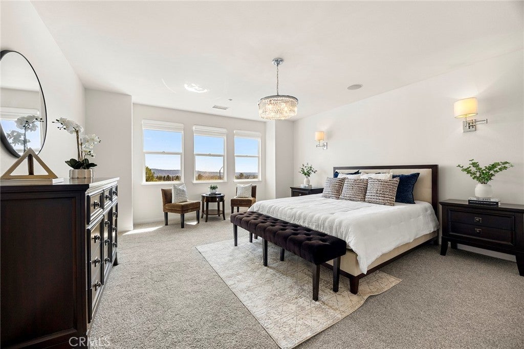 City Lights & Catalina Island Views from a Luxury San Lorenzo Home! Welcome to San Lorenzo at Vista Del Verde, one of Yorba Linda’s most sought-after communities, perfectly situated on the award-winning Black Gold Golf Course. This upgraded 2,600+ sq ft Plan Four (the largest model in the neighborhood) combines style, convenience, and breathtaking views — with the bonus of single-level living above your garage and a private in-home elevator. Inside, the home offers 3 spacious bedrooms (one currently an office) and 2.5 bathrooms, along with thoughtful upgrades like brand new carpet, hardwood floors, new interior paint, and custom built-ins. The floor plan is designed for both entertaining and everyday living: Formal living and dining rooms for hosting gatherings. A chef’s kitchen with granite countertops, center island seating, stainless steel appliances, and breakfast nook with built-in desk area. Large great room with cozy fireplace, surround sound, and custom built-ins. Primary suite retreat with walk-in closet, and spa-like ensuite featuring dual vanities, a soaking tub, and walk-in shower. Enjoy two covered outdoor decks where you can take in sweeping city light views that stretch to Catalina Island — perfect for evening sunsets or weekend hangouts. Additional highlights include: Convenient inside laundry room with sink Finished 2-car garage with plenty of storage cabinetry. Community amenities: resort-style pool, spa, BBQ area, and clubhouse HOA covers exterior maintenance including roof, paint, and fire insurance Set within the top-rated Placentia-Yorba Linda School District, and surrounded by miles of scenic trails for biking, hiking, and horseback riding, this home offers the best of Yorba Linda living — luxury, low-maintenance, and unforgettable views.