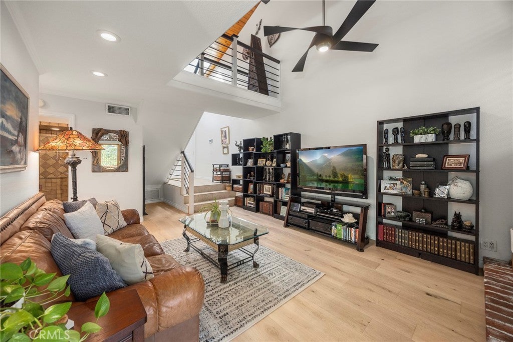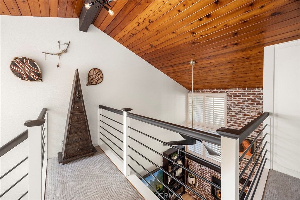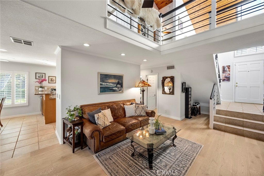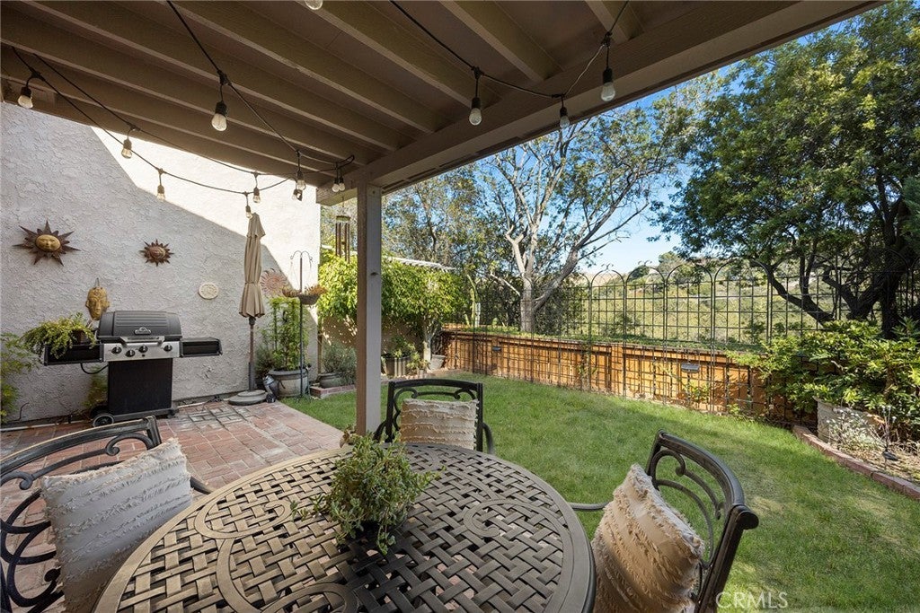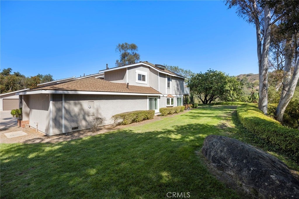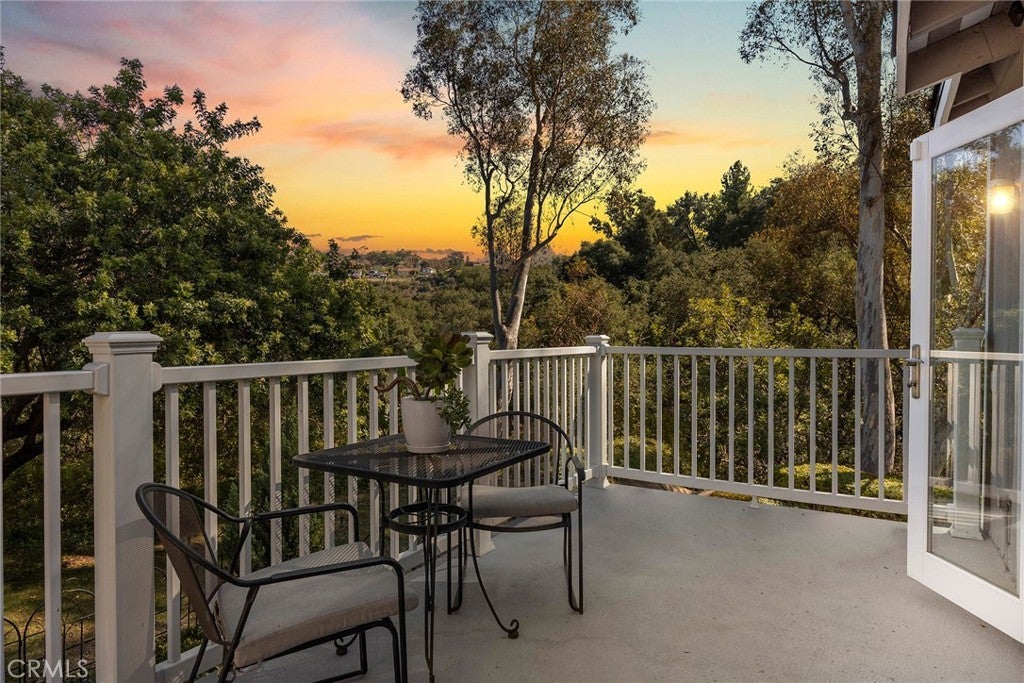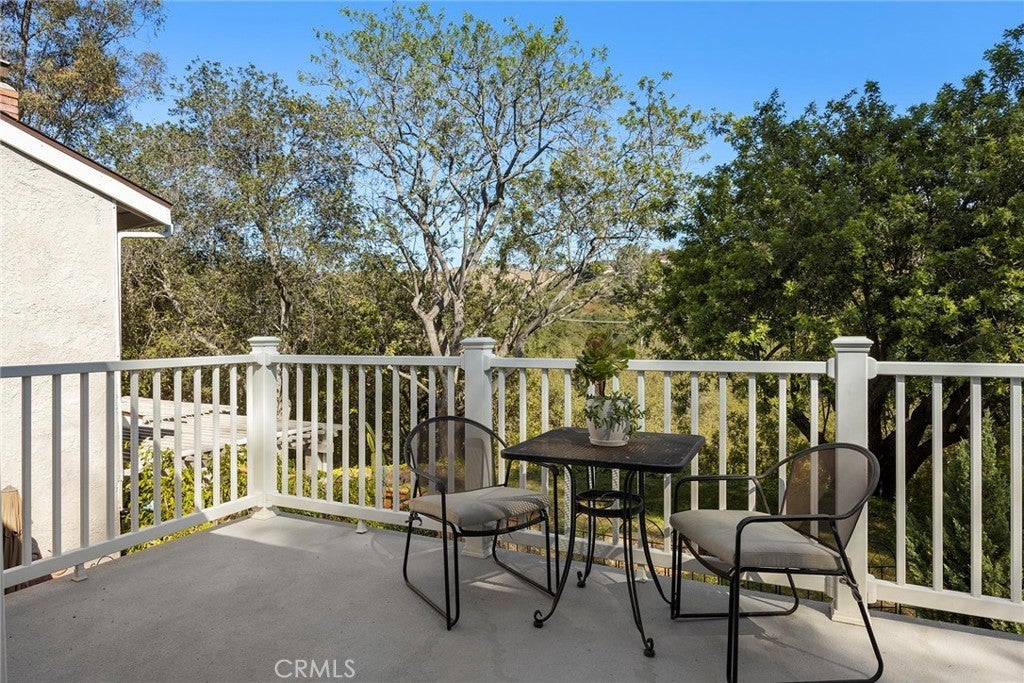 Welcome to this beautifully 1,539sqft, updated 3-bedroom, 2-bathroom residence, a true standout in the community thanks to its prime corner lot location, large yard, and sweeping canyon views. The home blends comfort with unique character, offering thoughtful upgrades inside and out. The spacious primary suite has been fully remodeled with a soaking tub, separate walk-in shower, dual sinks, custom storage, and a skylight that brings in natural light. A private balcony extends the suite, creating a peaceful retreat. Updated stairs with a modern touch led to open living areas enhanced by industrial brick accents and warm wood ceilings. Recessed lighting throughout and a modern ceiling fan in the living room add to the inviting atmosphere. The kitchen has been updated with stainless steel appliances, a 5-burner cooktop, wine fridge, and a versatile microwave/air fryer/oven combo. A charming garden window adds light and character, making the kitchen a central gathering point that truly draws people in. The main floor features wood flooring paired with neutral tile, while upstairs has updated carpet for added comfort. Designed for convenience and flexibility, the layout includes a downstairs bedroom with an adjacent full, updated bathroom. The living spaces flow seamlessly into the expansive backyard, complete with a brick patio and generous lawn, ideal for gatherings or simply enjoying the views. Additional highlights include a 2-car garage, new roof, dual-pane windows with shutters, and automatic blackout blinds in the primary suite. The community offers access to a pool, spa, and additional amenities. Conveniently located near the toll roads, 91 freeway, shopping, dining, and entertainment, with easy access to Irvine. This property combines style, location, and practicality ready to welcome its next owner.