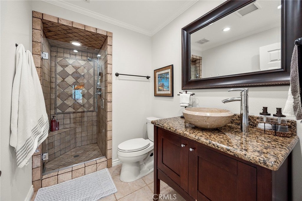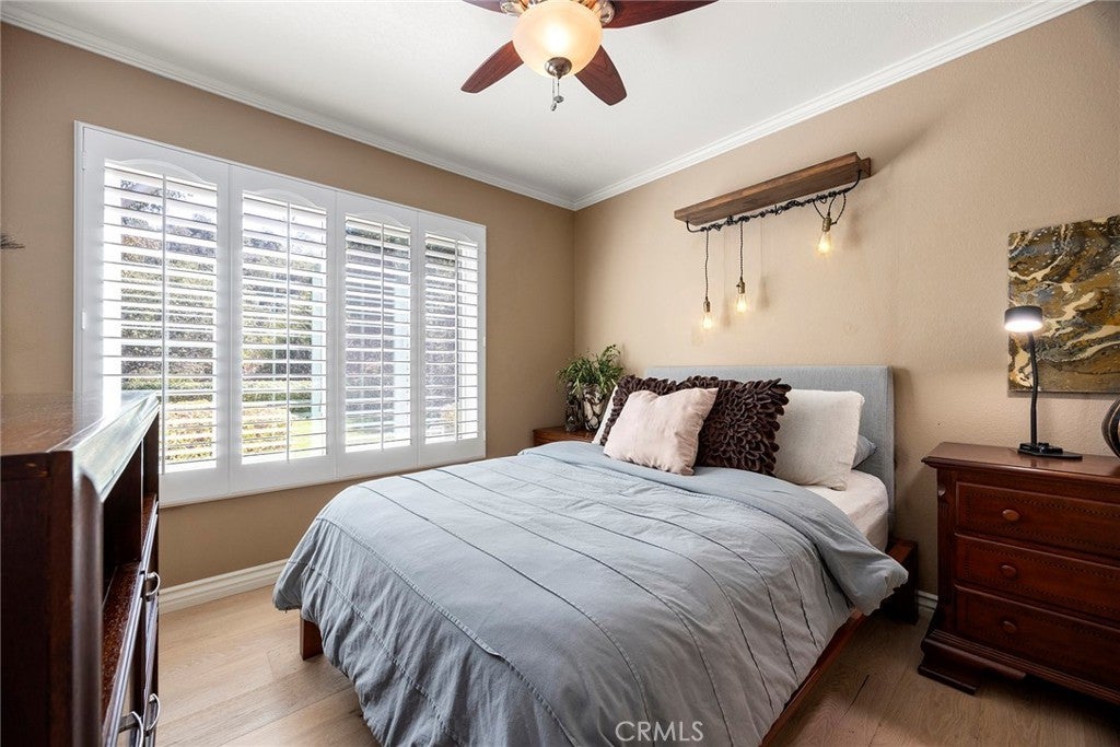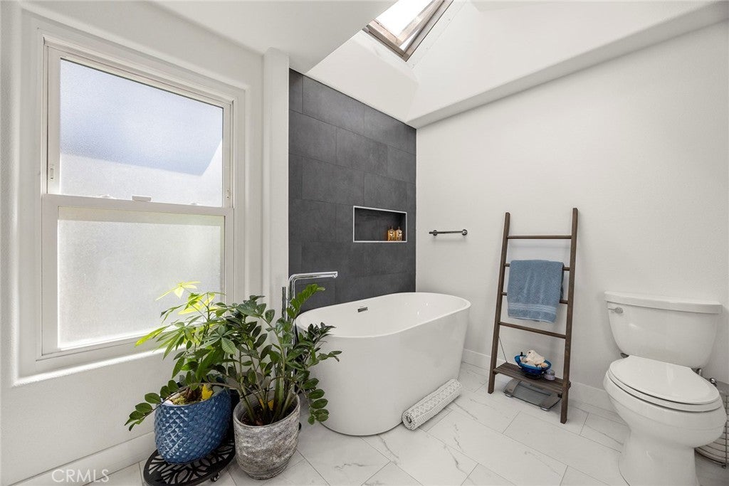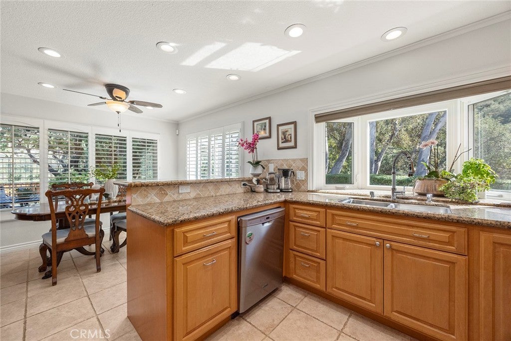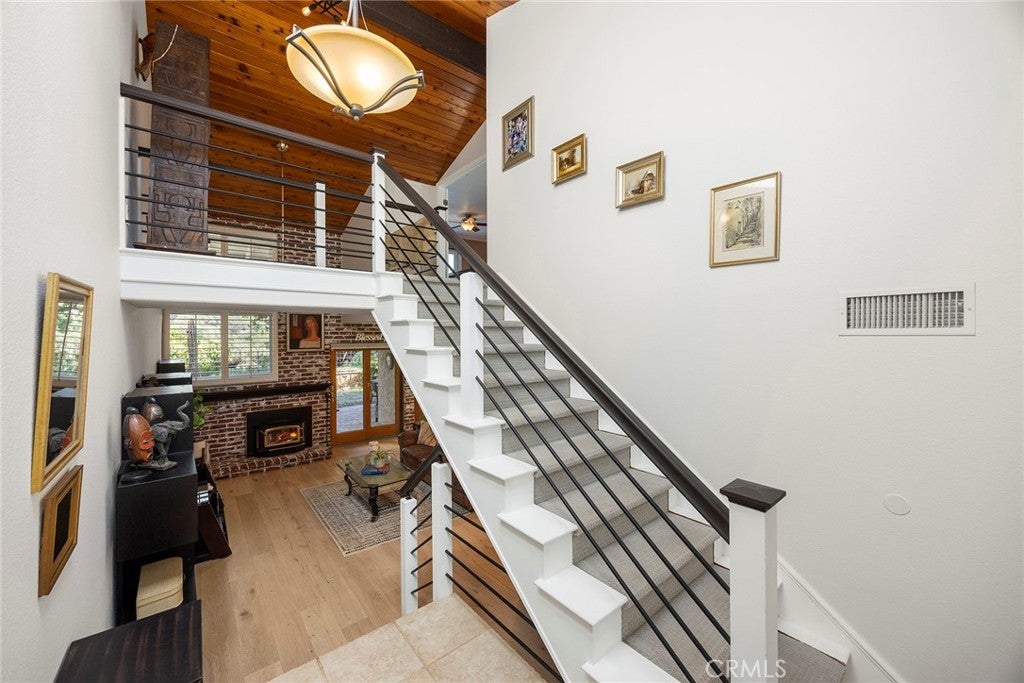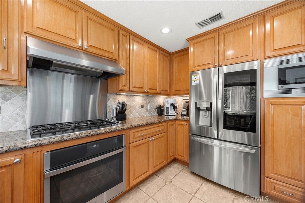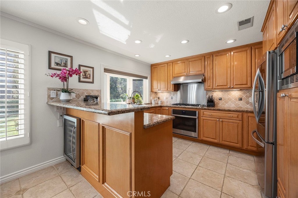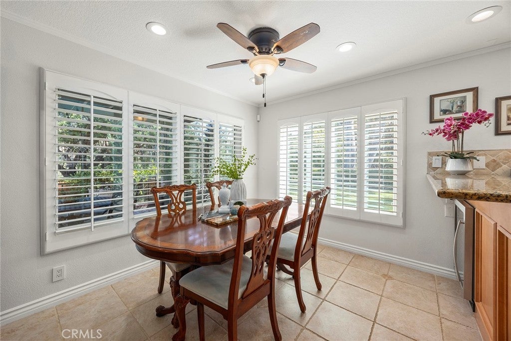 Welcome to this beautifully 1,539sqft, updated 3-bedroom, 2-bathroom residence, a true standout in the community thanks to its prime corner lot location, large yard, and sweeping canyon views. The home blends comfort with unique character, offering thoughtful upgrades inside and out. The spacious primary suite has been fully remodeled with a soaking tub, separate walk-in shower, dual sinks, custom storage, and a skylight that brings in natural light. A private balcony extends the suite, creating a peaceful retreat. Updated stairs with a modern touch led to open living areas enhanced by industrial brick accents and warm wood ceilings. Recessed lighting throughout and a modern ceiling fan in the living room add to the inviting atmosphere. The kitchen has been updated with stainless steel appliances, a 5-burner cooktop, wine fridge, and a versatile microwave/air fryer/oven combo. A charming garden window adds light and character, making the kitchen a central gathering point that truly draws people in. The main floor features wood flooring paired with neutral tile, while upstairs has updated carpet for added comfort. Designed for convenience and flexibility, the layout includes a downstairs bedroom with an adjacent full, updated bathroom. The living spaces flow seamlessly into the expansive backyard, complete with a brick patio and generous lawn, ideal for gatherings or simply enjoying the views. Additional highlights include a 2-car garage, new roof, dual-pane windows with shutters, and automatic blackout blinds in the primary suite. The community offers access to a pool, spa, and additional amenities. Conveniently located near the toll roads, 91 freeway, shopping, dining, and entertainment, with easy access to Irvine. This property combines style, location, and practicality ready to welcome its next owner.