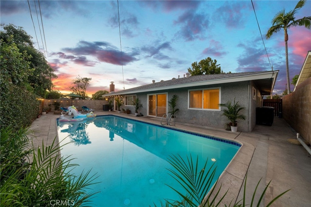 Welcome to Cambridge Estates. 1024 Tularosa, a 4-bedroom 2-bath with a pool, just 3 minutes from Old Towne or the 55 or 22 freeways! Great location! An extra-wide driveway leads to a detached 2-car garage. Gated entry through the double door leads into an open floor plan featuring a large living room, family room with brick fireplace, and an eating area. The entry has terrazzo stone floors, new life-proof vinyl wood textured floors, and new carpet in the bedrooms. The kitchen has quartz counters, Euro white cabinets with accent display doors, stainless steel appliances, including a dishwasher, a 5-burner built-in gas range with commercial-grade hood, and a full-size electric double oven, perfect for those holiday meals. separate laundry room. There are 4 bedrooms, mirrored wardrobe doors, ceiling fans, and 2" mini blinds that accent the rooms. The primary bedroom has its own bath with a neo-angle tile shower. The main bath has a tub/shower accented in tile. Central heating and air keep you comfortable all year long, and the best part is having a pool to have fun and a fire pit to dry off. A large patio area to enjoy with the summer BBQ.