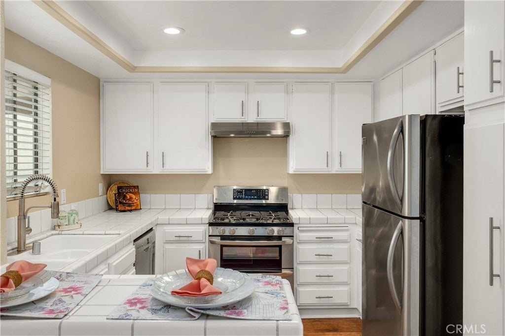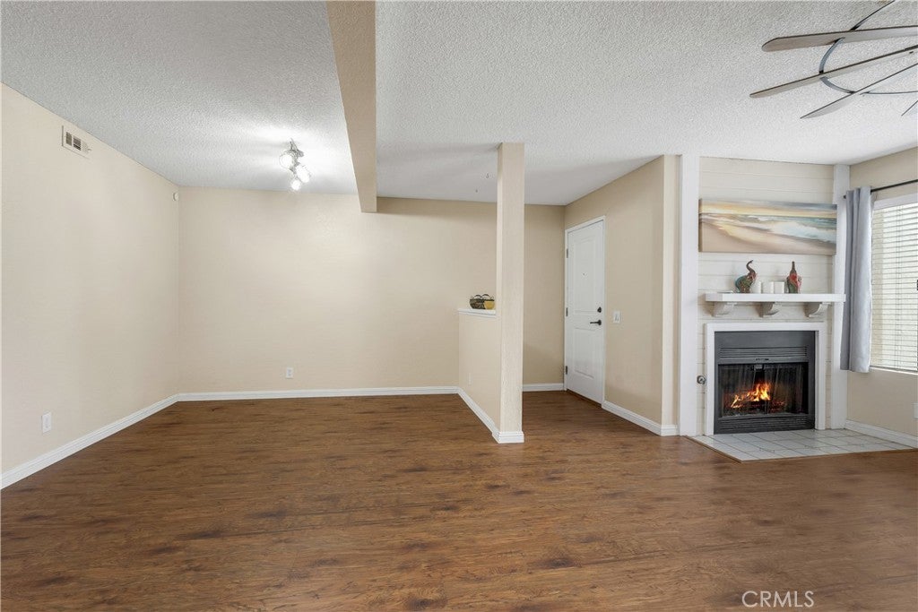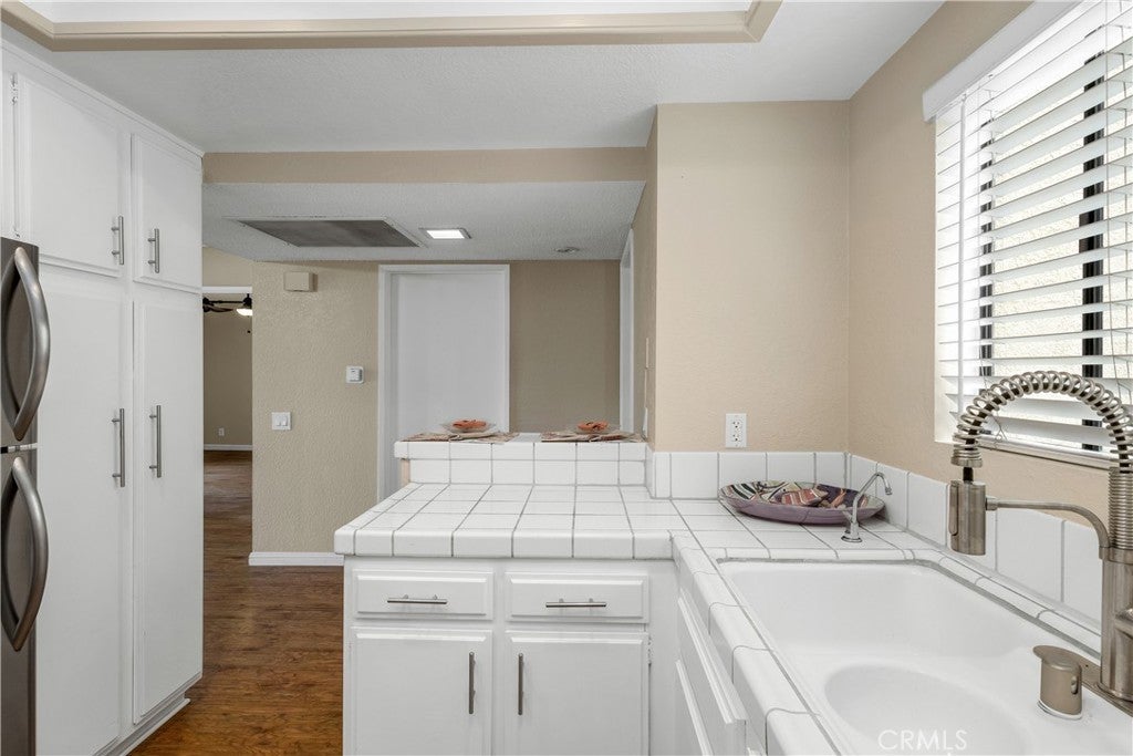 Nestled within a private gated community, this beautifully updated second-floor unit offers 2 spacious bedrooms and 2 full bathrooms. Step inside to discover a bright and airy living space where natural light pours into the living room, complete with a cozy gas fireplace and a separate dining area—perfect for entertaining. Sliding glass doors open to a private balcony. The kitchen is thoughtfully designed with crisp white cabinetry, tile countertops, recessed lighting, vinyl flooring, and a convenient breakfast bar. The first primary suite features dual vanity sinks, a luxurious soaking tub, a walk-in closet, and direct access to the balcony through a second patio door. The second primary bedroom is generously sized and includes its own en-suite bathroom for added privacy. Additional highlights include vinyl wood flooring throughout, an in-unit laundry room with extra storage, a one-car garage, and an additional parking space. Community has tranquil streams and walking paths, two pools, two spas, a clubhouse, and a BBQ area. All this in a prime location—just minutes from Bolsa Chica State Beach, shopping, and dining.