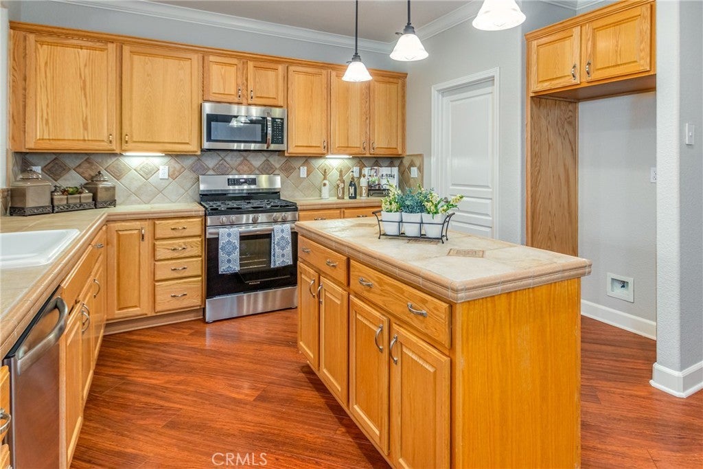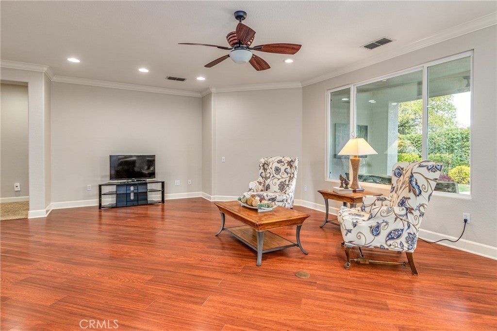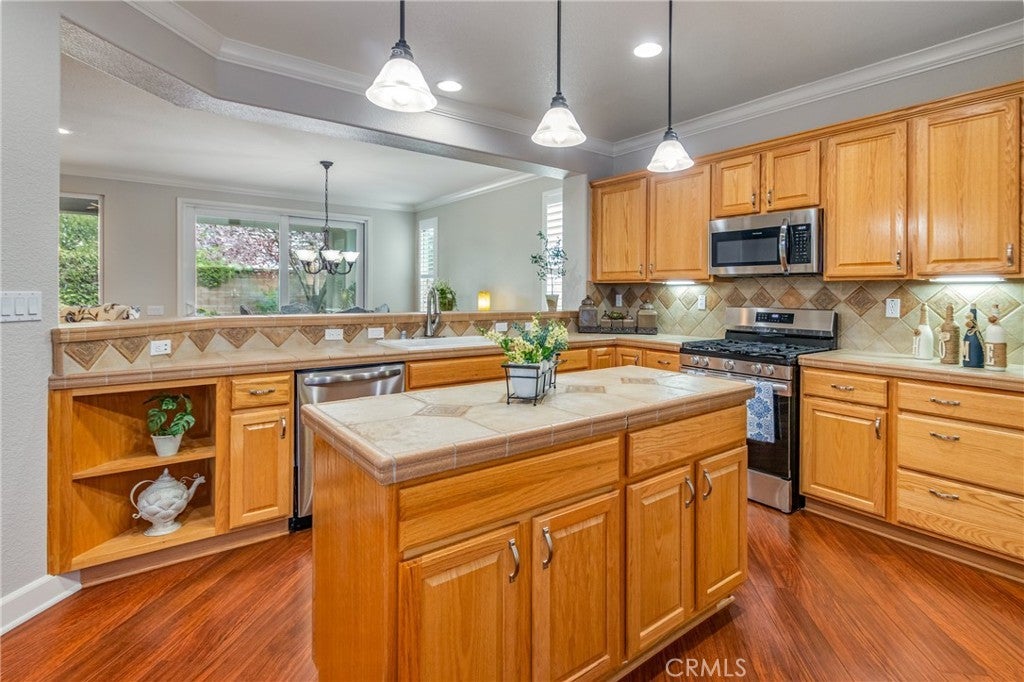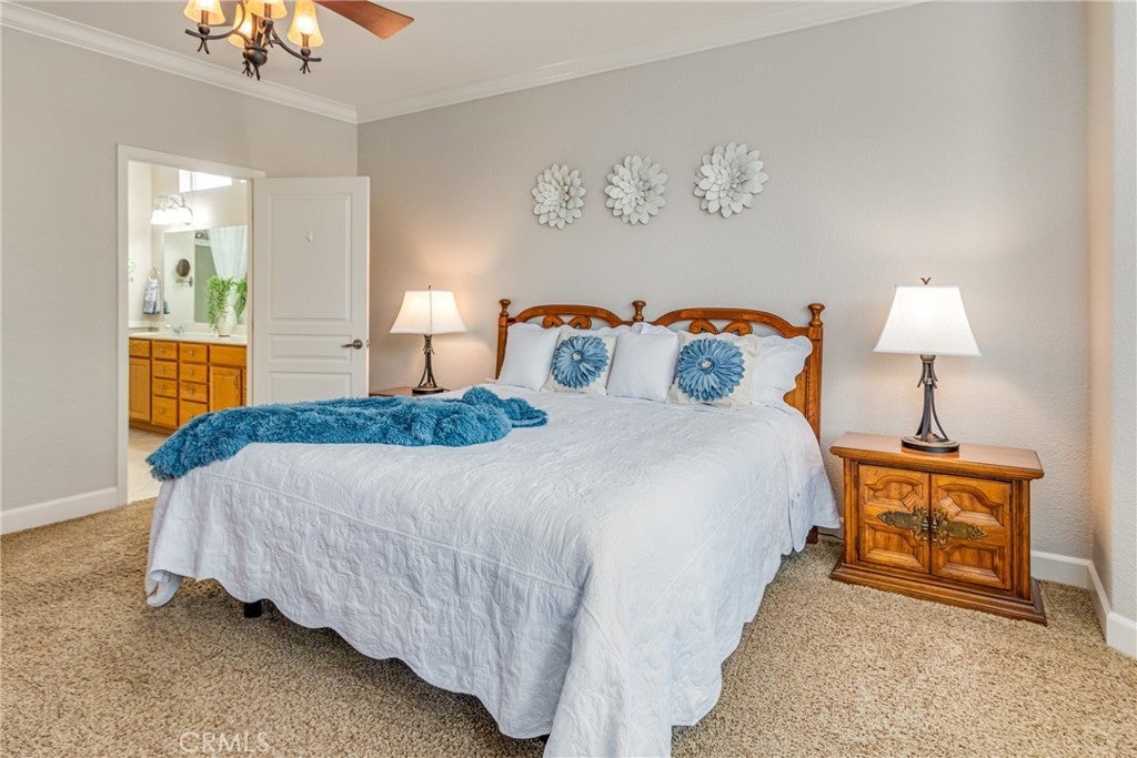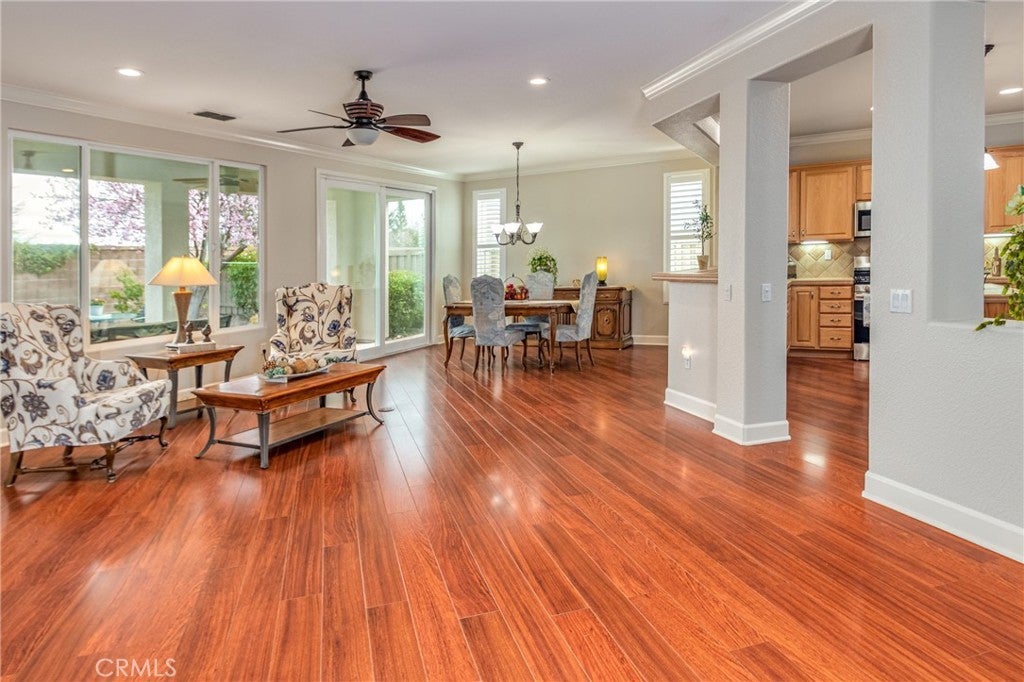 Breakfast Bar, Breakfast Area, Ceiling Fan(s), Crown Molding, Separate/Formal Dining Room, Open Floorplan, Recessed Lighting, Tile Counters, All Bedrooms Down, Bedroom on Main Level, Main Level Primary, Walk-In Closet(s)