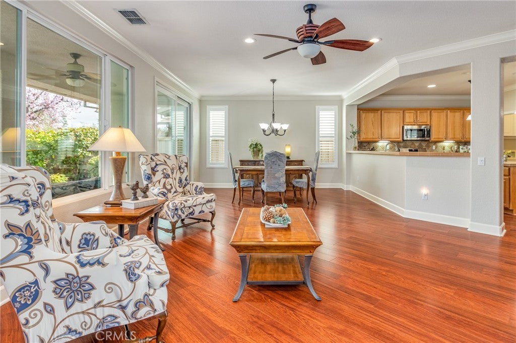 Discover the enchanting PLUMAS floor plan, a home that combines charm with popularity! As you step into the front yard, you'll be greeted by low-maintenance artificial turf and beautifully landscaped curb appeal. The private backyard provides a serene retreat, featuring mature trees, new sod, and updated sprinklers—ideal for relaxation or entertaining guests. Inside, you’ll appreciate the benefits of a newly installed HVAC system, a new water heater, and modern appliances, all complemented by a smart thermostat for convenient living. The interior has been freshly painted and boasts stylish shutter window treatments and elegant crown molding for an added touch of sophistication. But this home offers more than just aesthetic appeal; it grants you access to a lifestyle brimming with fun. Enjoy golf, pickleball, swimming, and numerous group activities that will keep you busier than you ever imagined. Don't miss this chance to embrace the vibrant lifestyle and amenities of a 55+ resort-style community! Say goodbye to simply having a house—this is your well-deserved slice of the good life. Come and experience it; you’ve earned it!