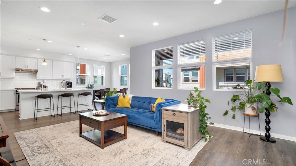 Welcome Home to 125 Allusion – A Modern Paired Townhome with Comfort and Connectivity at Novel Park in the Great Park Neighborhoods. Filled with natural light, this townhome offers over 1,700 sqft of living space and is the perfect blend of modern style and functional living, with the added privacy of only one shared wall on a PREMIUM LOT with building next to or across from the home. Thoughtfully designed for versatility, the main level offers an en-suite bedroom, perfect for a home office or guest room. On the second floor, the open-concept great room is the heart of the home, seamlessly connecting the living, dining, and kitchen areas perfect for both everyday living and entertaining. The chef’s kitchen impresses with white shaker cabinets, sleek quartz countertops, a stylish subway tile backsplash, and a built-in pantry. The center island with counter seating invites casual gatherings, while stainless steel appliances add a modern touch. Just off the great room, step out onto your private patio, offering a perfect extension of your living space ideal for morning coffee, al fresco dining, or simply enjoying the fresh air. Upstairs, you’ll find dual en-suite bedrooms, including a spacious primary suite with two walk-in closets, dual sinks, and an oversized tiled shower. Throughout the home, luxury vinyl flooring enhances the living areas, while upgraded carpet adds warmth to the bedrooms. Additional features include upstairs laundry, whole house fan, LED recessed lighting, a tankless water heater, and a 2-car attached garage for added convenience. Just steps away from Novel Park, you’ll enjoy access to its clubhouse, 2 dog parks, and The Cup, a charming neighborhood coffee shop to meet your neighbors! As a resident of the Great Park Neighborhoods, you’ll experience resort-style living with multiple pools to choose from, neighborhood parks, beach volleyball and basketball courts, outdoor kitchens, playgrounds and 12 rentable spaces for private gatherings. Plus, the Bosque Trail and a network of scenic walking and biking trails weave throughout the community, connecting you to parks, gardens, and recreational spaces perfect for an active, outdoor lifestyle. Located just minutes from award winning IUSD Schools Beacon K-8 and Portola High, and a short drive to Woodbury Town Center, Irvine Spectrum, and Laguna Beach, this home offers unbeatable convenience. Don’t miss your chance to experience elevated living at 125 Allusion.