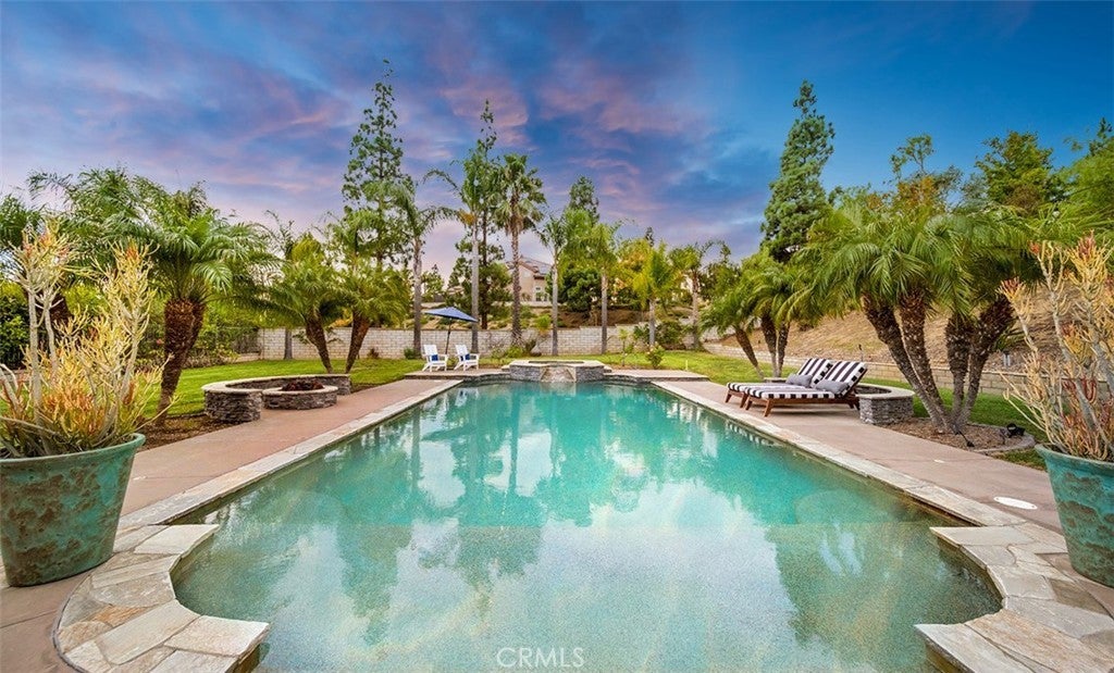Revel in the privacy and tranquility at this half-acre Yorba Linda estate at 5425 Castle Bend Way, quietly nestled at the end of a cul-de-sac with only eight neighboring homes. This exclusive setting offers not just a residence, but a lifestyle, surrounded by the natural beauty and community spirit that make Yorba Linda one of Orange County’s finest cities. Complete with 5 bedrooms (one bedroom downstairs with a full bath), a NEW FIRE RATED ROOF, a massive bonus room, and a rare 4-car garage with potential for RV parking, this property provides flexibility for modern living. From the moment you arrive, the home captivates with stacked stone walls, elegant coach lighting, and contrasting stone walkways that frame its impressive curb appeal. Dramatic wrought iron and glass doors open to a grand two-story entryway, where a sweeping staircase sets the tone for timeless elegance. The formal living room, warmed by a classic fireplace, flows seamlessly into the dining room, perfect for celebrations. At the heart of the home lies the chef’s kitchen, a showpiece with quartz counters, a marble backsplash, a farmhouse sink, and a spacious center island. A walk-in pantry and breakfast bar make this kitchen as functional as it is beautiful. The family room, complete with a cozy fireplace, invites you to relax while enjoying views of the sprawling backyard. Upstairs, retreat to the expansive primary suite, featuring its own fireplace, a private sitting room/office, and a spa-like bath with dual vanities, jetted tub, and custom walk-in closet. Additional bedrooms include two en-suites and a flexible second primary option, ensuring comfort for family and guests alike. A bonus room adds versatility for entertainment, study, or play. Step outside into your entertainer’s paradise, a lush yard with sparkling pool and spa, covered patio, fire pit, built-in BBQ, and ample space. Whether it’s a summer pool party or a quiet evening under the stars, this backyard was designed for unforgettable moments. Beyond the home, Yorba Linda offers the very best of Orange County living. Award-winning schools in the Placentia-Yorba Linda Unified School District, beautiful parks and trails, and the vibrant Town Center filled with dining, shopping, and entertainment are all just minutes away. Known as the “Land of Gracious Living,” Yorba Linda is celebrated for its safety, community, and family-friendly atmosphere, making this estate not just a home, but a foundation for an elevated lifestyle.