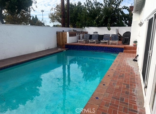 PRICE REDUCTION - STUNNING, ENTERTAINER'S DREAM HOME!! This home is absolutely move-in ready home. This home brings in a ton of natural light, it is a refreshingly fully renovated and family friendly home in well-located and maintained Cerritos. This 5-bedroom 3-bath home is facing east. The floor plan is an open, easy flowing home. Living room, dining room, kitchen dining area, and family room are each elegantly, uniquely and tastefully decorated. This home is immaculate! Spacious living room with cozy fireplace, and formal dining room that opens to an inviting outdoor open patio, BBQ grill, fire pit, outdoor fryer, built-in outdoor kitchen and large pool - 4' to 8' deep. Step down into a separate family room, where two bedrooms, laundry room and bathroom with shower are located (ideal for guests or share this home with family). The open kitchen includes upgrades - from porcelain countertops, floors, new kitchen appliances, gas top range, range hood and dishwasher; custom cabinetry, countertops in fully renovated kitchen and bathrooms, updated vanities, appealing fresh paint throughout, wood floors, tile floors, and modern manufactured quality vinyl wood-like floors. This home includes new windows, copper plumbing, streamlined, efficient recessed lighting throughout the house. Direct access to the large 2 car garage. Custom wood shutters, new HVAC, spa tub in master bathroom. 2 bedrooms downstairs and 3 bedrooms upstairs. Walking distance to Liberty Park, Los Cerritos Mall, and located in the award-winning ABC school district. This home is a MUST SEE!!