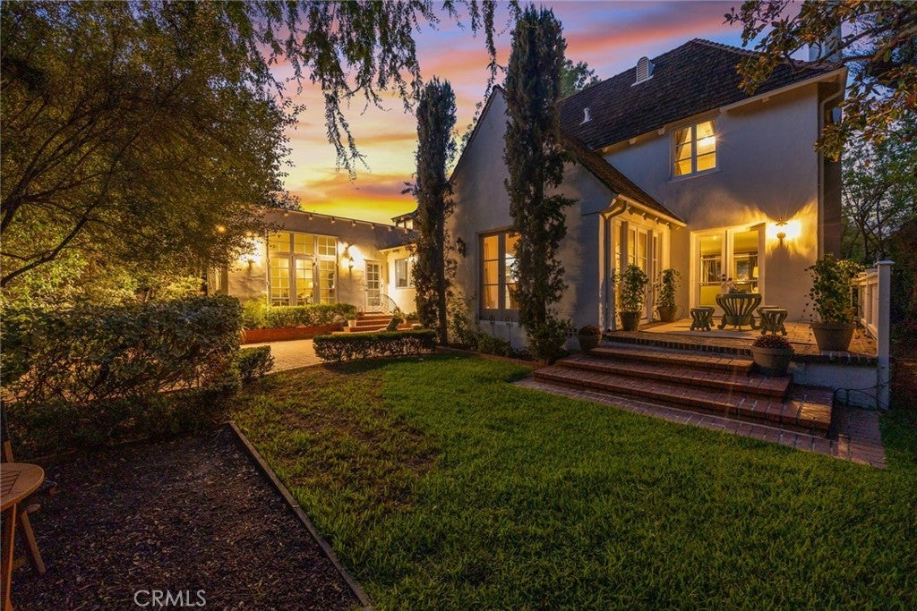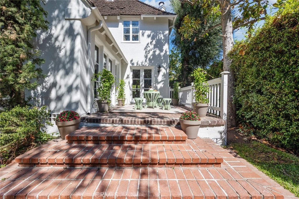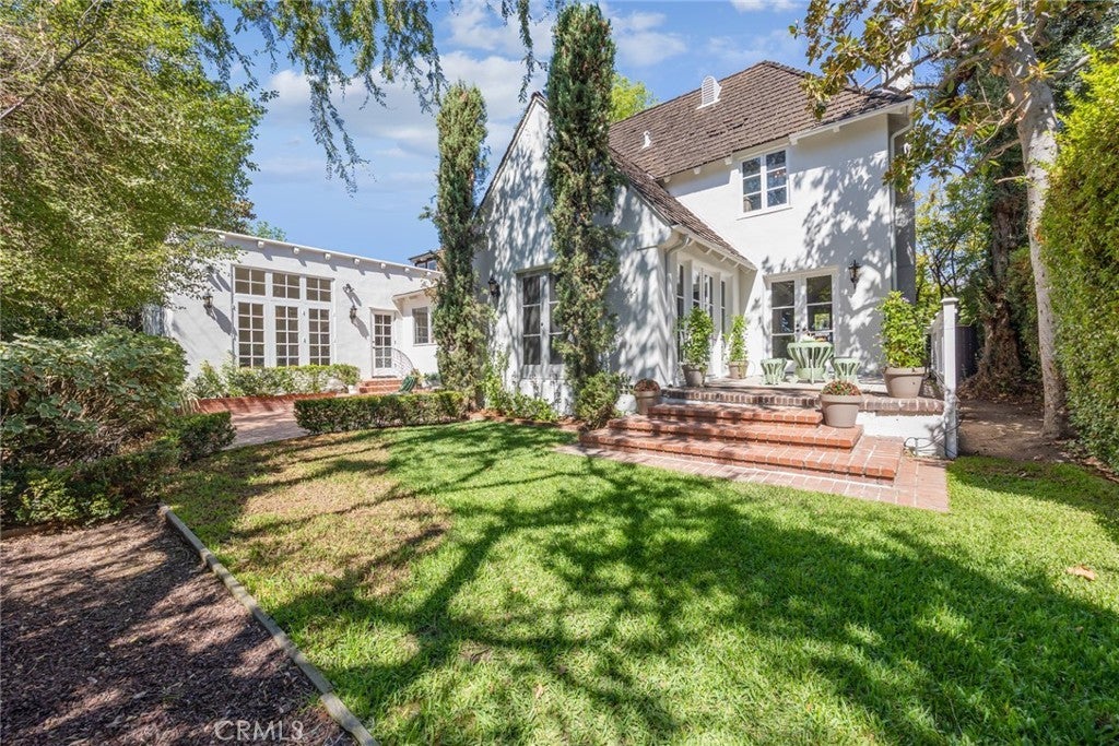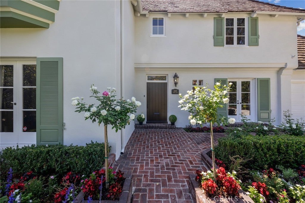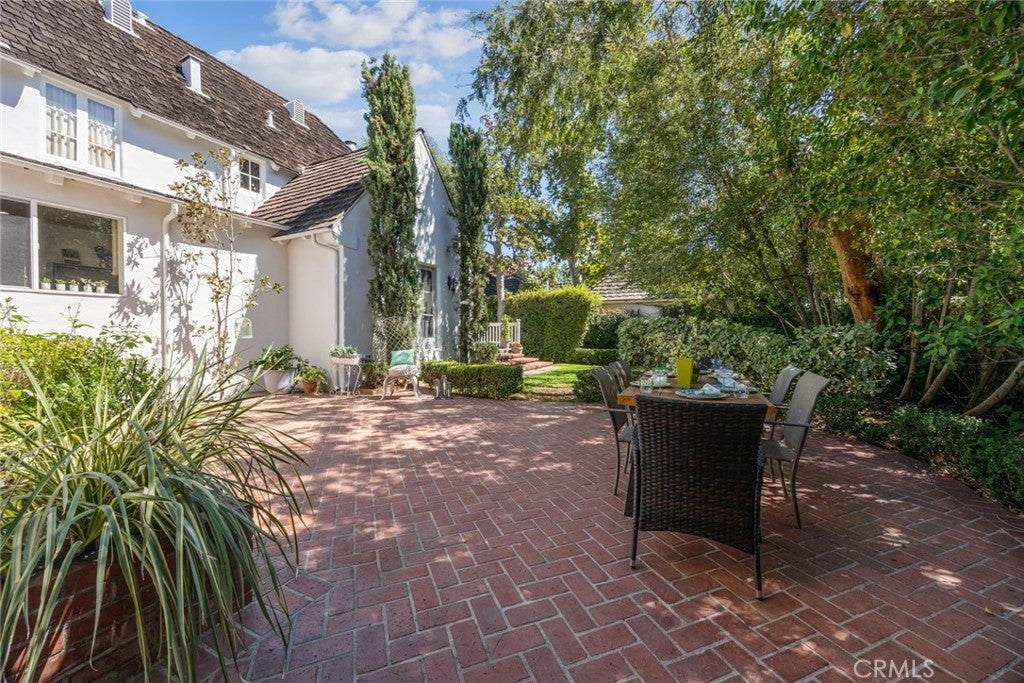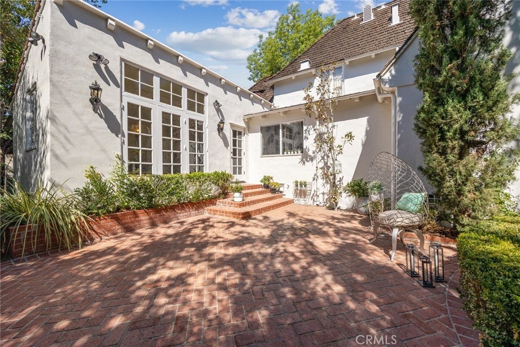 Designed by master architect Roland E. Coate and built in collaboration with esteemed builder Lee S. Davis, this captivating French Normandy-style home is a rare example of early California architectural excellence. Professionally measured at 2,590 sq ft, it combines classic European charm with relaxed indoor-outdoor living, reflecting Coate’s visionary philosophy that “The patio is the heart of the California house,” as noted in House & Garden magazine, 1931. The home’s graceful composition features steeply pitched rooflines and a soaring 16-foot high-hipped ceiling with exposed wood beams in the formal dining room. The living room centers on a grand fireplace and is framed by multi-pane windows that fill the space with natural light. Every first-floor room opens through French doors to the surrounding gardens, creating seamless indoor-outdoor flow. Architectural details abound, including arched entryways, crown molding, and crystal chandeliers that enhance the refined character throughout. The floor plan flows effortlessly, balancing open spaces with cozy, intimate areas. Built-in Bluetooth-enabled speakers wired throughout provide an elevated living experience, perfect for entertaining or relaxing. Recent updates include new landscaping, fresh interior and exterior paint, upgraded electrical systems, bathroom mirrors, plumbing, and lighting fixtures (full list available). Step outside to a private brick terrace framed by manicured gardens and mature trees—an idyllic setting for morning coffee, afternoon reading, or romantic dinners. A thoughtful exit from the family room and kitchen opens to a brick-paved patio, perfect for sunset entertaining and gatherings under the stars. Upstairs, spacious bedrooms offer serene mountain and garden views. Situated on a generous 9,256 sq ft lot, a new 70-foot concrete driveway provides parking for four vehicles and leads to an attached two-car garage. A 140 sq ft California basement is also included. This is a rare opportunity to own a piece of architectural history in one of San Marino’s most coveted neighborhoods. The home masterfully blends classic charm with modern comfort and gracious hospitality. Reflecting the enduring legacy of Roland E. Coate, it offers a lifestyle rooted in beauty, tranquility, and timeless appeal. Conveniently located near the Huntington Library, Caltech, and within the award-winning San Marino School District, this exceptional residence is truly a cherished treasure.