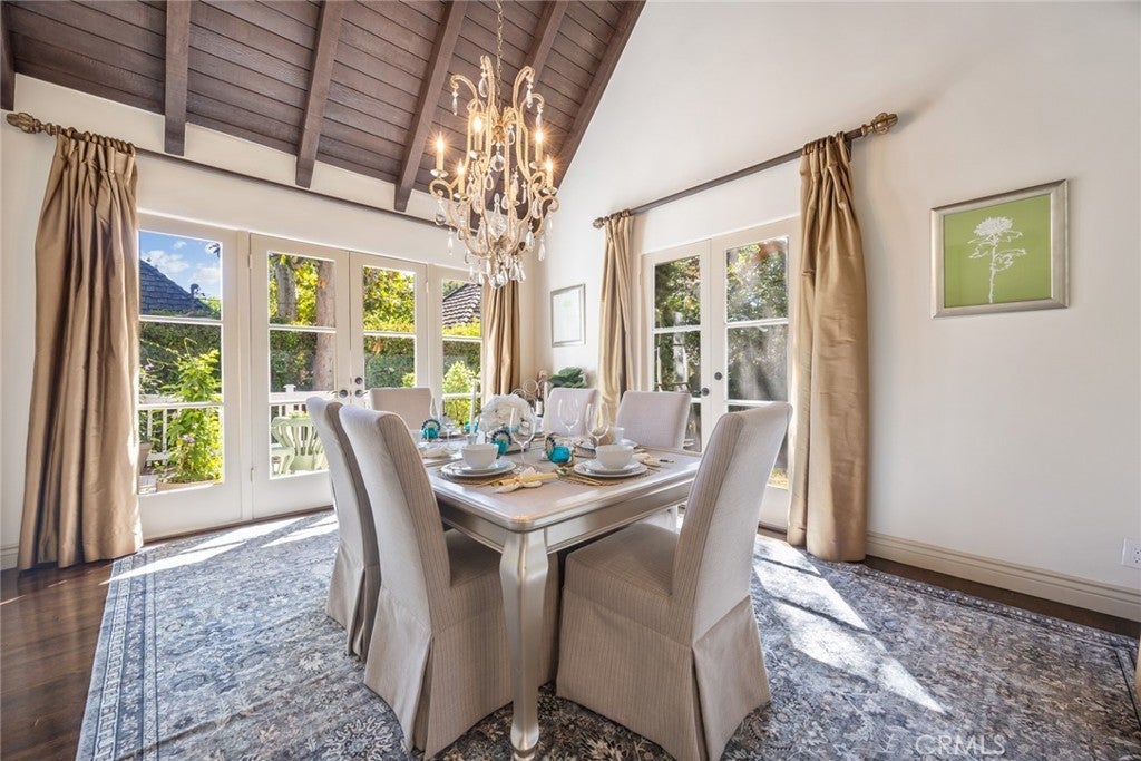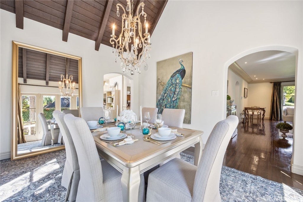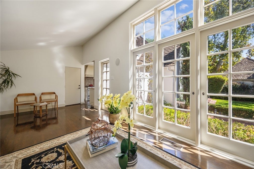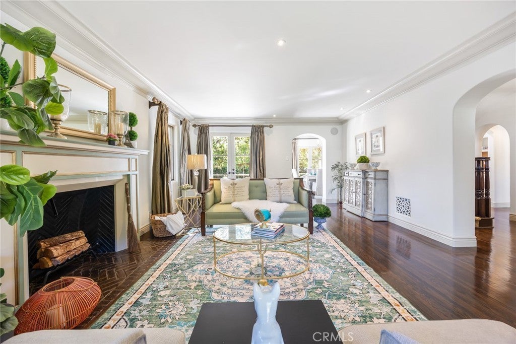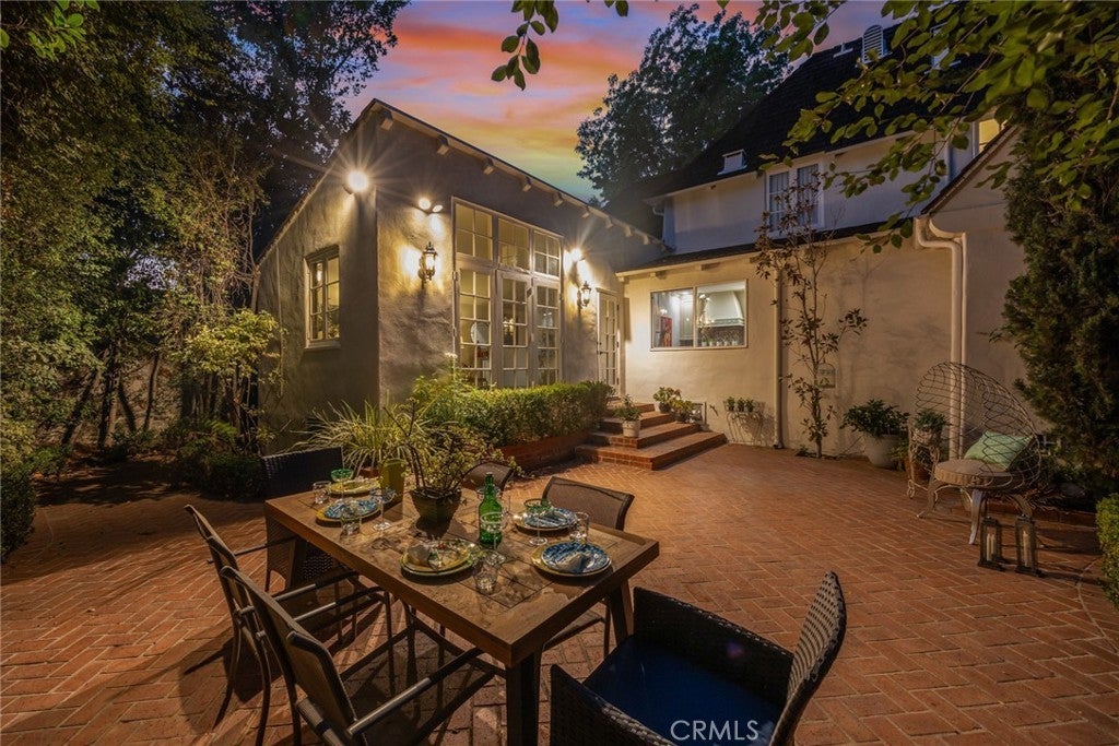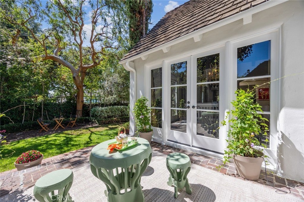 Designed by master architect Roland E. Coate and built in collaboration with esteemed builder Lee S. Davis, this captivating French Normandy-style home is a rare example of early California architectural excellence. Professionally measured at 2,590 sq ft, it combines classic European charm with relaxed indoor-outdoor living, reflecting Coate’s visionary philosophy that “The patio is the heart of the California house,” as noted in House & Garden magazine, 1931. The home’s graceful composition features steeply pitched rooflines and a soaring 16-foot high-hipped ceiling with exposed wood beams in the formal dining room. The living room centers on a grand fireplace and is framed by multi-pane windows that fill the space with natural light. Every first-floor room opens through French doors to the surrounding gardens, creating seamless indoor-outdoor flow. Architectural details abound, including arched entryways, crown molding, and crystal chandeliers that enhance the refined character throughout. The floor plan flows effortlessly, balancing open spaces with cozy, intimate areas. Built-in Bluetooth-enabled speakers wired throughout provide an elevated living experience, perfect for entertaining or relaxing. Recent updates include new landscaping, fresh interior and exterior paint, upgraded electrical systems, bathroom mirrors, plumbing, and lighting fixtures (full list available). Step outside to a private brick terrace framed by manicured gardens and mature trees—an idyllic setting for morning coffee, afternoon reading, or romantic dinners. A thoughtful exit from the family room and kitchen opens to a brick-paved patio, perfect for sunset entertaining and gatherings under the stars. Upstairs, spacious bedrooms offer serene mountain and garden views. Situated on a generous 9,256 sq ft lot, a new 70-foot concrete driveway provides parking for four vehicles and leads to an attached two-car garage. A 140 sq ft California basement is also included. This is a rare opportunity to own a piece of architectural history in one of San Marino’s most coveted neighborhoods. The home masterfully blends classic charm with modern comfort and gracious hospitality. Reflecting the enduring legacy of Roland E. Coate, it offers a lifestyle rooted in beauty, tranquility, and timeless appeal. Conveniently located near the Huntington Library, Caltech, and within the award-winning San Marino School District, this exceptional residence is truly a cherished treasure.