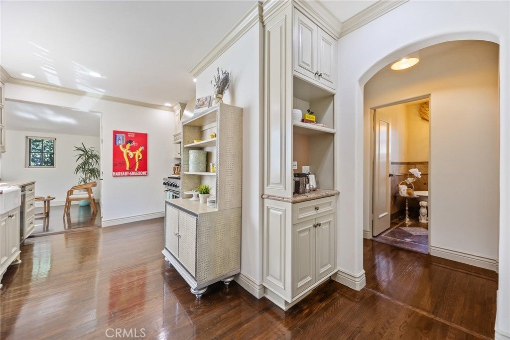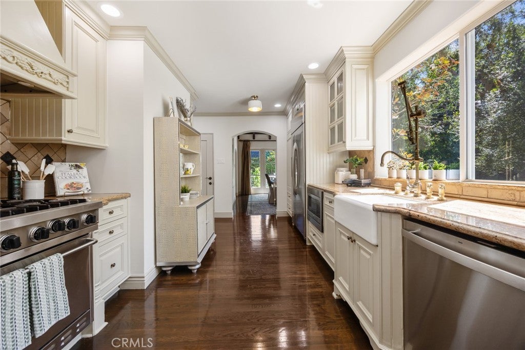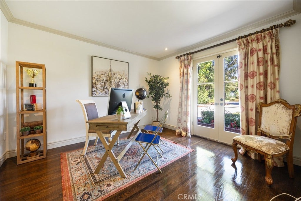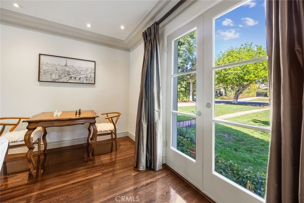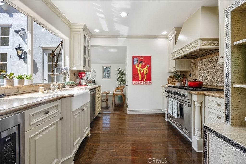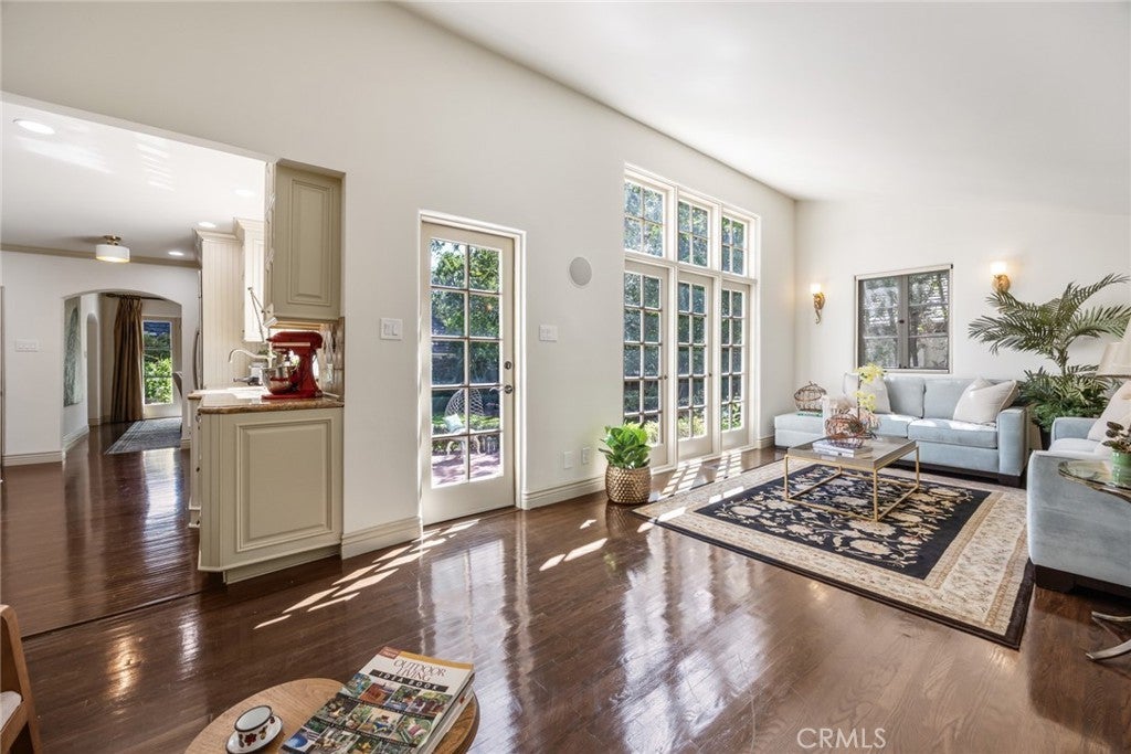 Designed by master architect Roland E. Coate and built in collaboration with esteemed builder Lee S. Davis, this captivating French Normandy-style home is a rare example of early California architectural excellence. Professionally measured at 2,590 sq ft, it combines classic European charm with relaxed indoor-outdoor living, reflecting Coate’s visionary philosophy that “The patio is the heart of the California house,” as noted in House & Garden magazine, 1931. The home’s graceful composition features steeply pitched rooflines and a soaring 16-foot high-hipped ceiling with exposed wood beams in the formal dining room. The living room centers on a grand fireplace and is framed by multi-pane windows that fill the space with natural light. Every first-floor room opens through French doors to the surrounding gardens, creating seamless indoor-outdoor flow. Architectural details abound, including arched entryways, crown molding, and crystal chandeliers that enhance the refined character throughout. The floor plan flows effortlessly, balancing open spaces with cozy, intimate areas. Built-in Bluetooth-enabled speakers wired throughout provide an elevated living experience, perfect for entertaining or relaxing. Recent updates include new landscaping, fresh interior and exterior paint, upgraded electrical systems, bathroom mirrors, plumbing, and lighting fixtures (full list available). Step outside to a private brick terrace framed by manicured gardens and mature trees—an idyllic setting for morning coffee, afternoon reading, or romantic dinners. A thoughtful exit from the family room and kitchen opens to a brick-paved patio, perfect for sunset entertaining and gatherings under the stars. Upstairs, spacious bedrooms offer serene mountain and garden views. Situated on a generous 9,256 sq ft lot, a new 70-foot concrete driveway provides parking for four vehicles and leads to an attached two-car garage. A 140 sq ft California basement is also included. This is a rare opportunity to own a piece of architectural history in one of San Marino’s most coveted neighborhoods. The home masterfully blends classic charm with modern comfort and gracious hospitality. Reflecting the enduring legacy of Roland E. Coate, it offers a lifestyle rooted in beauty, tranquility, and timeless appeal. Conveniently located near the Huntington Library, Caltech, and within the award-winning San Marino School District, this exceptional residence is truly a cherished treasure.
