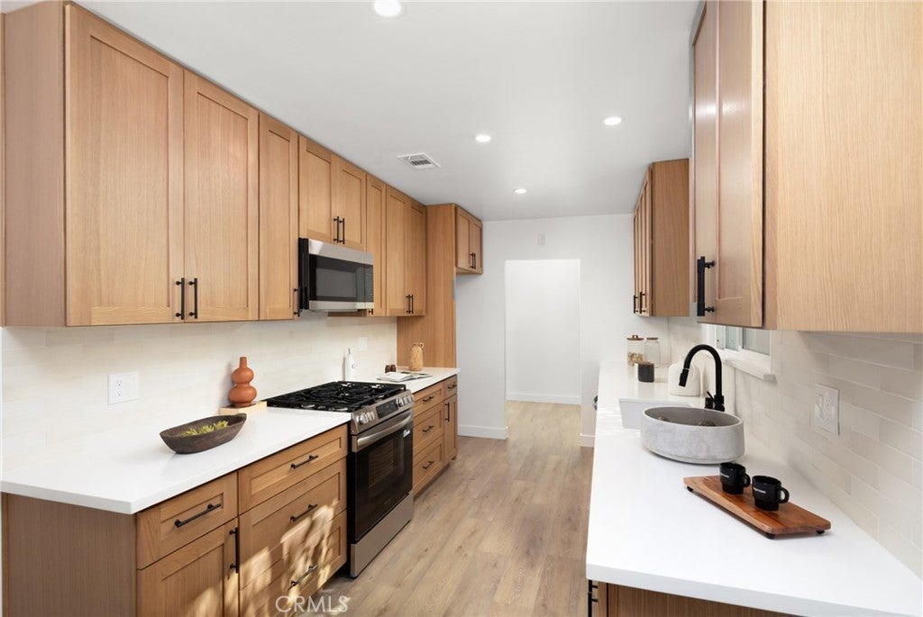 This exceptional Granada Hills residence truly has it all. Perfectly situated on a peaceful cul-de-sac, this impeccably remodeled pool home blends elegance, comfort, and functionality. With 3 spacious bedrooms and 3 beautifully appointed bathrooms, the home has been reimagined from top to bottom with an uncompromising attention to detail. At the heart of the home is a bright, designer kitchen showcasing top-of-the-line finishes and a seamless layout ideal for both everyday living and entertaining. Highlights include new cabinetry, premium countertops, custom lighting, flooring, state-of-the-art appliances, and more. The bathrooms have been completely transformed, featuring high-end fixtures, elegant tilework, and modern finishes that create a sense of understated luxury. Outdoors, your private backyard oasis awaits—a newly replastered pool with updated tile and a brand-new filter creates the perfect setting for relaxation and entertaining. Completing the property is a large detached two-car garage, offering endless possibilities—whether envisioned as a luxury pool house, guest quarters, or a fully realized ADU. Located in one of Granada Hills’ most desirable neighborhoods, this home is the perfect combination of sophistication, comfort, and convenience. Back on the market, the buyer was unable to get a loan.