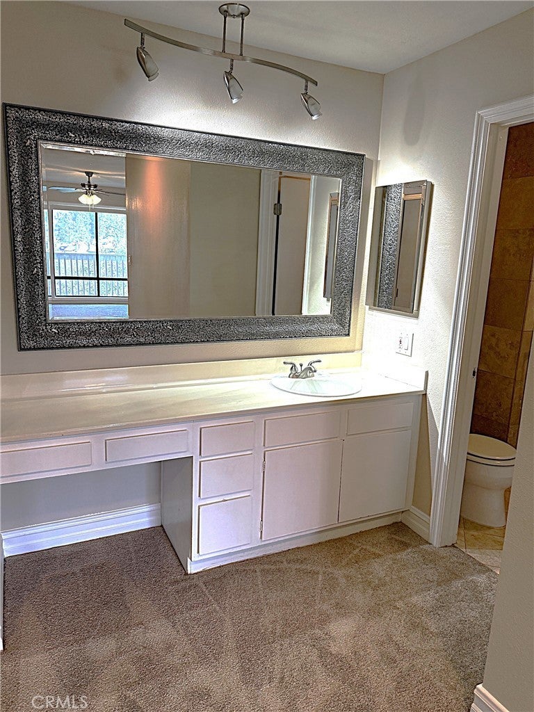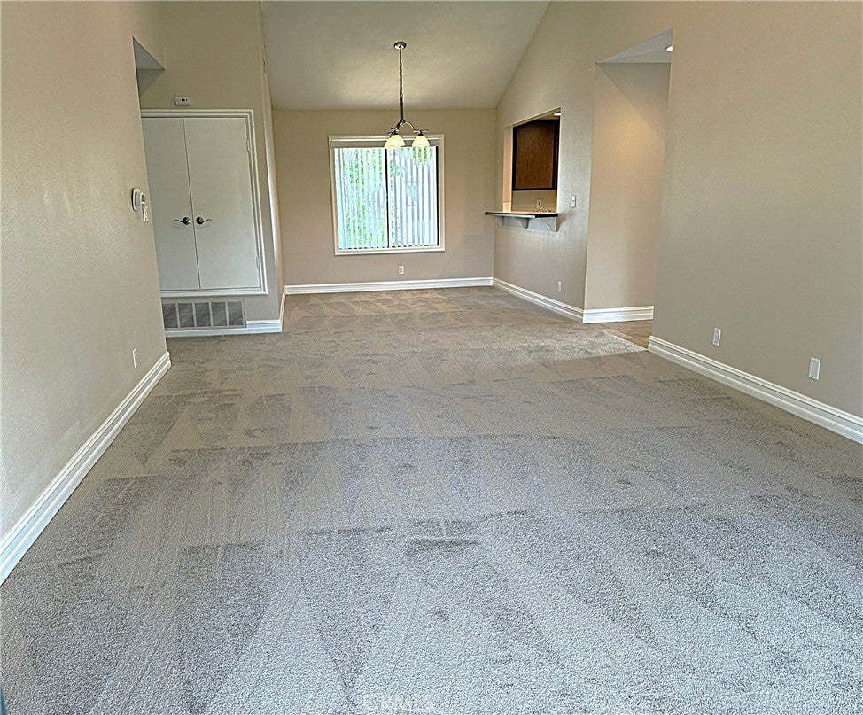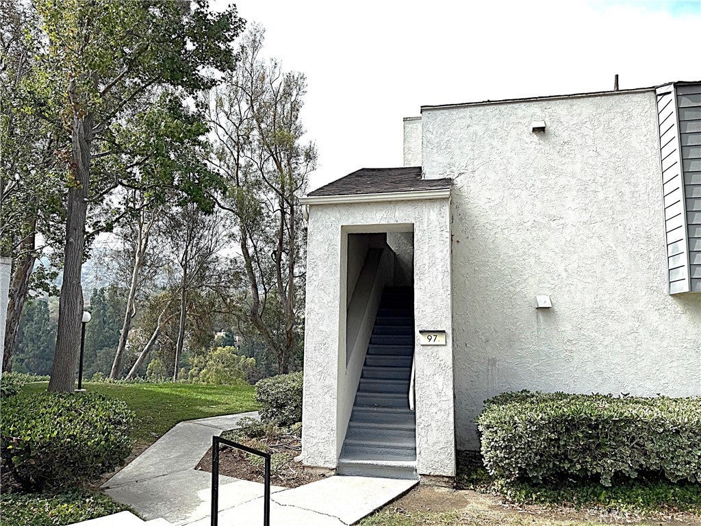 Discover a condo that offers stunning views, with the occasional sighting of deer or rabbits wandering across the golf course, all from the comfort of your condo. This upper-level end unit features two bedrooms and two bathrooms, with each bedroom and bathroom located on either side of the living room for added privacy. The condo has been freshly painted and boasts brand-new carpet in neutral tones. The kitchen provides ample cabinet space and includes a dishwasher, stove, and microwave, along with a breakfast bar for entertaining and additional seating. The dining room connects to a spacious living room with vaulted ceilings, making the space feel larger than its 1,200 square feet. The living room also opens to a large balcony that spans the length of the condo which includes a spacious storage closet and offers spectacular views of Anaheim Hills. The first bedroom features mirrored wardrobe doors, new carpet, and views of the city lights and foothills. The guest bathroom has been updated and offers a tub/shower combo with upgraded tile floors that flow into the hallway, front entry, and kitchen. The primary bedroom is spacious and also offers stunning scenic views. The primary bathroom features a wall of mirrored closet doors that leads into an updated bathroom with a custom shower with glass doors. The laundry is conveniently located in a closet inside the unit and includes a stackable washer and dryer. The community also has laundry facilities that include five washers and dryers available for residents' use. The detached carport area provides additional storage and is just around the corner from the condo. The community features a pool and spa, which is a very short walk from the unit. However, it is far enough away that your unit remains private and feels like a tranquil retreat in nature. Residents are also eligible for one additional parking pass for the open area, which comes with an annual fee to tenants. The location provides easy access to the 91 and 55 freeways and is within walking distance to shopping and schools. Rent includes water and trash services. Hurry before this one is leased!