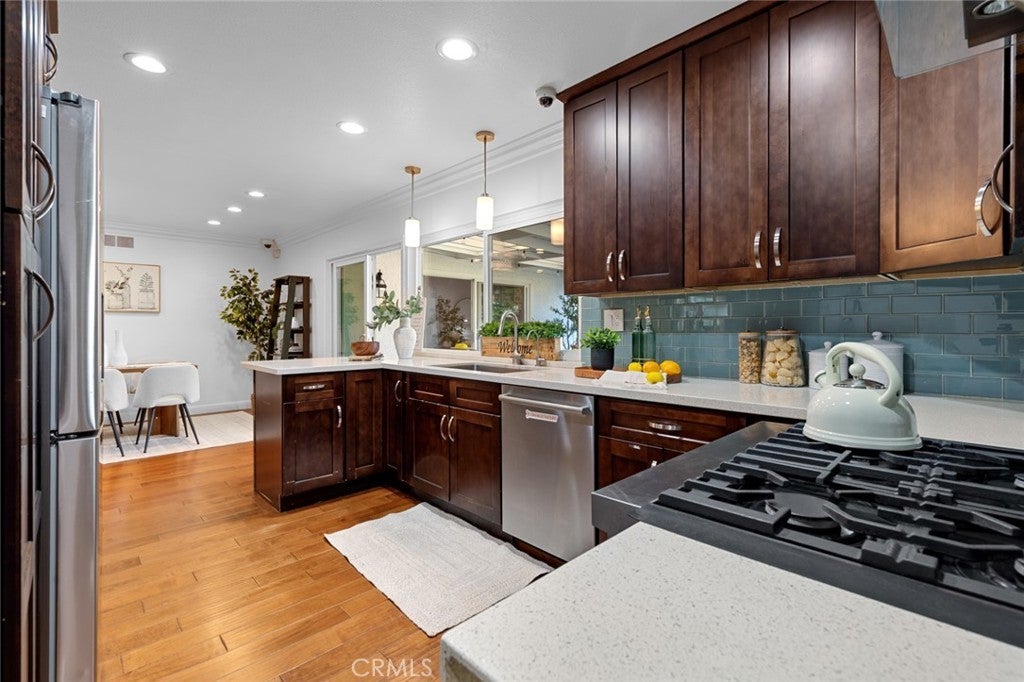 Set in one of Fountain Valley’s most sought-after, coastal-close neighborhoods, this single-story stunner blends space, style, and convenience. With 5 bedrooms, 3.5 baths, and 2,490 sq ft of living space on a generous 7,249 sq ft lot, the home welcomes you with cathedral ceilings and generously sized rooms, all freshly painted inside and out. Hardwood and laminate flooring, plantation shutters, recessed lighting, and central A/C create a bright, comfortable backdrop for everyday living. The upgraded kitchen and bathrooms elevate the experience, while the expansive primary suite impresses with a dream closet and a spa-like bath featuring a double vanity, soaking tub, and walk-in shower. An epoxy-floored, 2-car garage adds durability and utility. Out back, enjoy a private yard with plenty of fruit trees-perfect for relaxing or entertaining. Right across the street, a neighborhood park offers tennis, basketball, and volleyball courts plus a large playground. Love the location: top-rated schools, easy freeway access, and a short hop to shopping and dining. South Coast Plaza, Little Saigon, and many other favorite spots are all nearby, making errands and nights out a breeze. Move-in ready and thoughtfully upgraded, this spacious single-level home is a rare Fountain Valley opportunity you won’t want to miss.