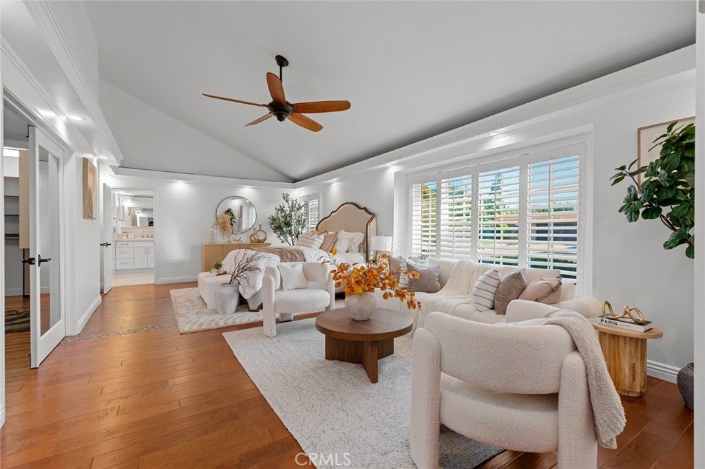 Breakfast Bar, Ceiling Fan(s), Crown Molding, Eat-in Kitchen, High Ceilings, Bedroom on Main Level, Primary Suite, Walk-In Closet(s)
