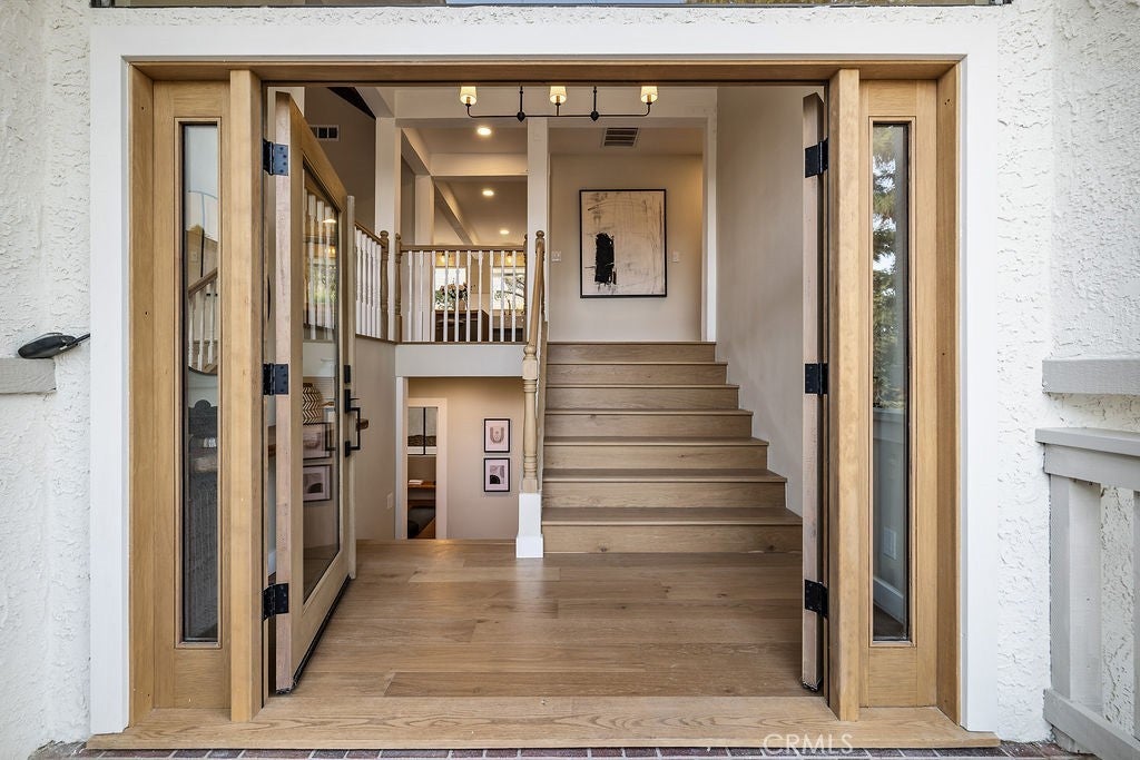 Beamed Ceilings, Built-in Features, Balcony, Eat-in Kitchen, High Ceilings, Multiple Staircases, Main Level Primary