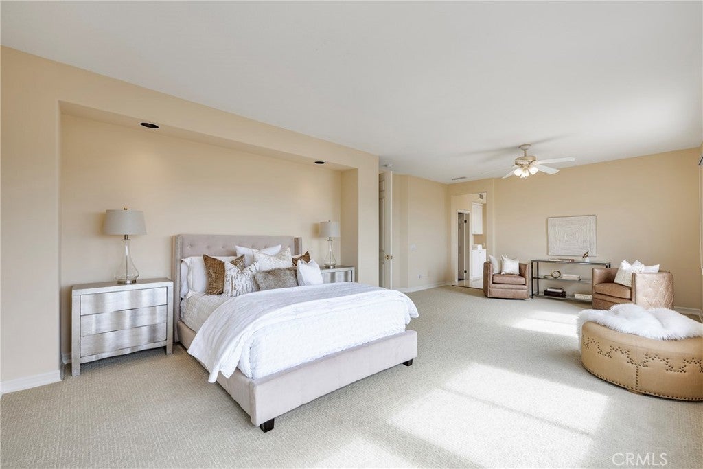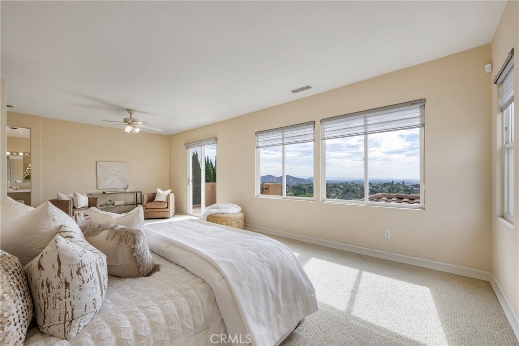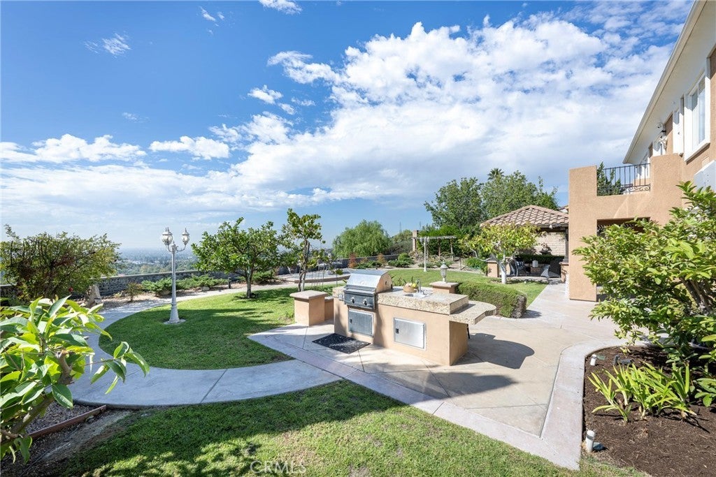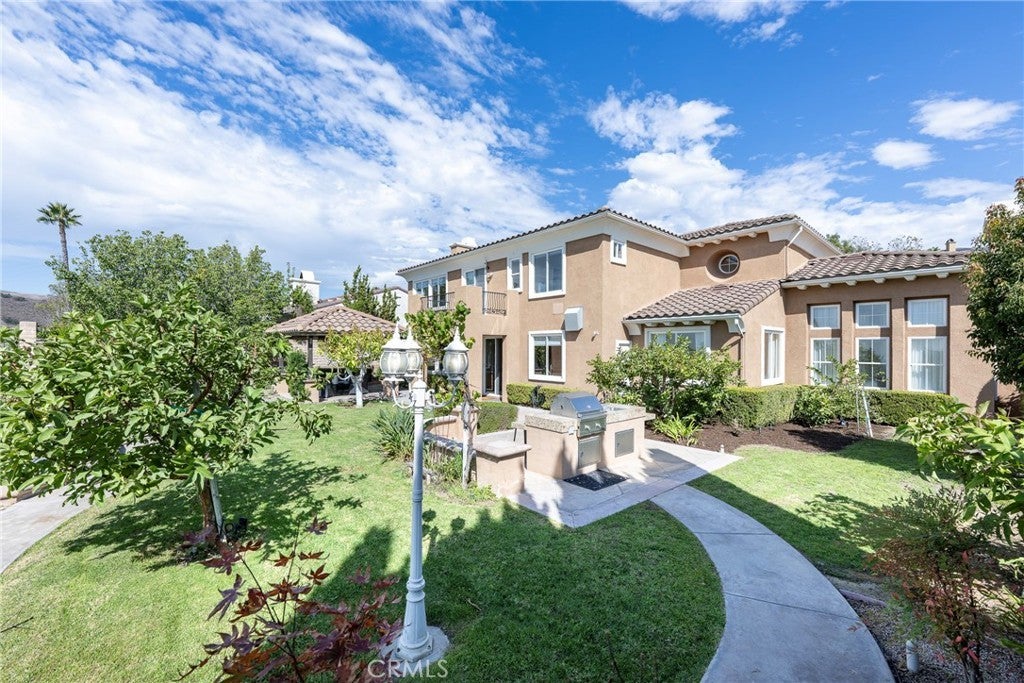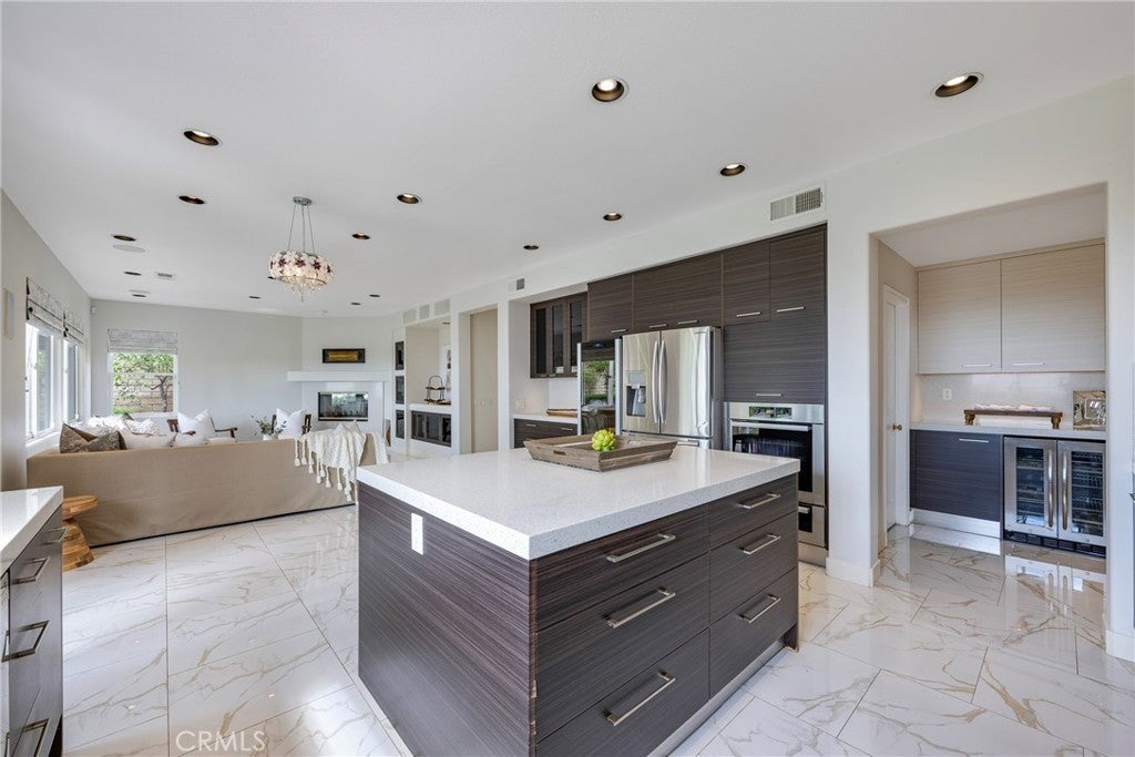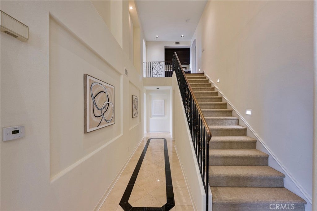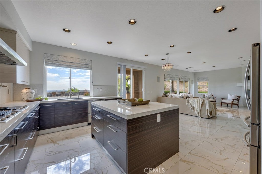 Unobstructed City Lights, Catalina & Ocean VIEWS abound from this exceptional home located in prestigious gate guarded Portofira Estates. The property is Perched on a hill located on a single loaded Street. Enjoy Ocean breezes & spectacular sunsets from your backyard that is suitable for intimate or large-scale entertaining. Many verities of fruit trees enhance the yard. Enter the property through a private gated Courtyard that leads to the dramatic entry with art niches and marble flooring. Step down to the Living Room with Fireplace & Dining room Adjacent the. large butler's pantry with SS wine/beverage refrigerator. and walk in pantry. The gourmet remodeled kitchen with SS oven, dishwasher, microwave, 6 burner cooktop, refrigerator, center island & Quartz countertops, is open to the expanded family room with fireplace. There is a downstairs bedroom suite with walk in closet, & full bath. Office, and large Laundry Room with sink and extensive storage. The magnificent gallery hallway leads up the stairway to the luxurious master suite with fireplace, walk in closets, tub, & glass enclosed e shower. Dual separated vanity areas. Large Balcony off the master suite offers exceptional VIEWS and Sunsets. There are 2 additional bedrooms upstairs, with a shared bath, and one bedroom with a full bath. Oversize 4 car garage with built ins and epoxy coated floors. The home has been recently painted inside. Meticulously maintained and cared for by the original owners. Close to freeway access. One of the premier VIEW oriented Gate Guarded Communities in North Orange County.