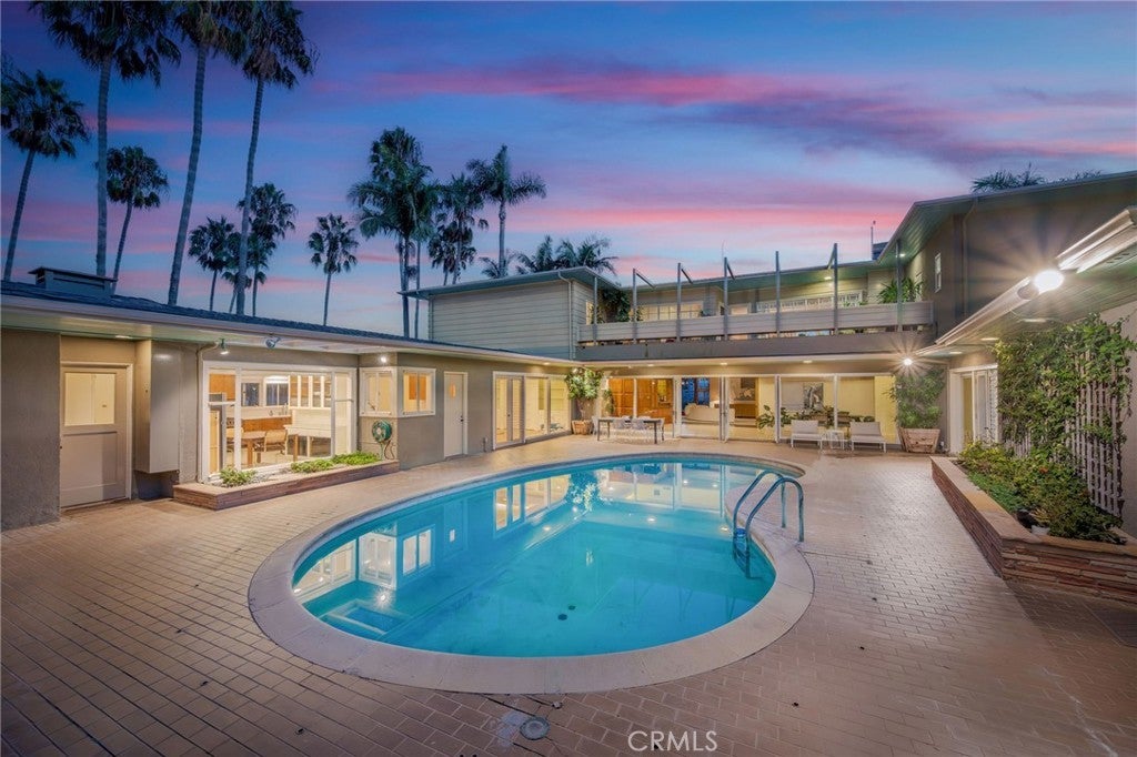Among California’s most distinctive waterfront residences, this iconic Mid-Century Modern estate on Naples Island stands as both an architectural treasure and a piece of Long Beach history. Designed by acclaimed architect George M. Montierth, the home was originally commissioned as an executive retreat, created to entertain corporate guests drawn to Long Beach during the city’s thriving mid-century era. Its grand scale, dramatic design, and commanding waterfront presence reflect that legacy of hospitality and prestige. Perfectly sited at the convergence of Naples Canal, Rivo Alto Canal, and The Colonnade Canal, the residence captures sweeping views of Alamitos Bay and The Peninsula from one of the island’s most sought-after locations. A private marina spans 135 feet of open-water frontage and includes a 35-foot U-shaped slip with a 13-foot beam—an extraordinary amenity for yachtsmen and water enthusiasts alike. The 6,182-square-foot home is centered around a serene courtyard with a swimming pool, offering seamless indoor-outdoor living. A soaring 20-foot entry sets the stage for dramatic entertaining, leading to a paneled formal living room with marble fireplace and walls of glass overlooking the water. A full walk-in wet bar, elegant dining room, and expansive gathering spaces recall the home’s original purpose as a setting for distinguished entertaining. Two generous primary suites provide luxurious retreats—one with its own marble fireplace—both with walk-in closets, vanity rooms, and spa-inspired baths. Additional highlights include a private guest house with full bath, a workshop, and a motor court accommodating up to 6 cars. Positioned across five legal lots, including three waterfront parcels, the estate offers 112 feet of water frontage and exceptional versatility. Whether preserved as a Mid-Century showpiece, reimagined as a contemporary masterpiece, or developed anew, it represents one of the rarest opportunities on Naples Islands. Recent updates include a new roof, fresh paint, resurfaced upper deck, and a newly completed seawall, ensuring both beauty and structural integrity for years to come. A true legacy estate, this home embodies the elegance of its mid-century origins while offering unmatched potential on one of Southern California’s most prestigious waterfronts.