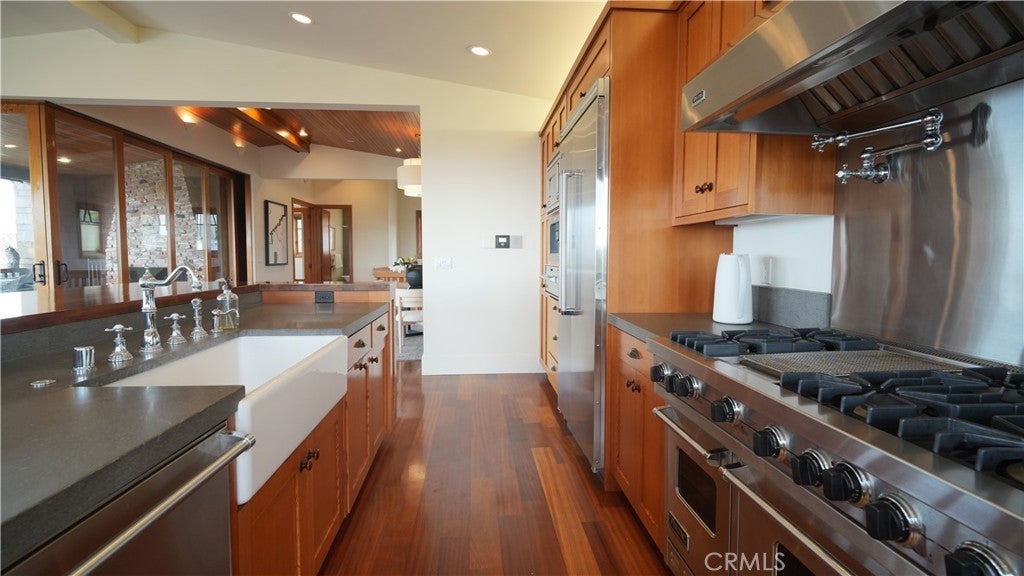 Coastal Craftsman Masterpiece: A Breathtaking Retreat! Prepare to be captivated by an exquisite blend of luxury and coastal charm in this Coastal Craftsman Masterpiece, expertly designed by Nick Schaar Homes & Building. Nestled in the prestigious Hill section, this residence offers stunning elevations and is ideally situated near the Sand section's greenbelt, pristine beaches, and the vibrant heart of downtown. As you step inside, you’re welcomed by soaring vaulted ceilings and exquisite finishes that elevate everyday living to new heights. The dining room serves as a striking centerpiece, featuring abundant built-ins that seamlessly combine beauty with functionality. Culinary enthusiasts will be enchanted by the gourmet kitchen, which is a true chef's paradise. Adorned with stunning stone countertops and Viking and Miele appliances, it also boasts wall-to-wall windows that frame breathtaking panoramic ocean views, creating an inviting space for both cooking and entertaining. Step outside the dining room to a casual living space, ideal for gatherings or relaxation. Designed to showcase spectacular views, this outdoor oasis includes a cozy stone fireplace and disappearing sliding walls that effortlessly blend indoor and outdoor living. The luxurious primary suite is a true retreat, featuring a spa-like bathroom with a freestanding bathtub, a striking glass tile shower, and an expansive walk-in closet equipped with an innovative automatic rotating hanger system, along with an additional closet for enhanced convenience. This remarkable property epitomizes quality craftsmanship and contemporary elegance, making it the perfect sanctuary for those who seek an unparalleled lifestyle of luxury, comfort, and convenience in one of the most desirable locations. Don’t miss the opportunity to call this your coastal home!