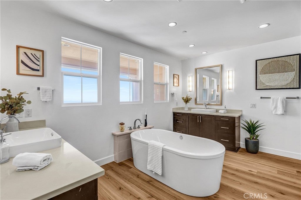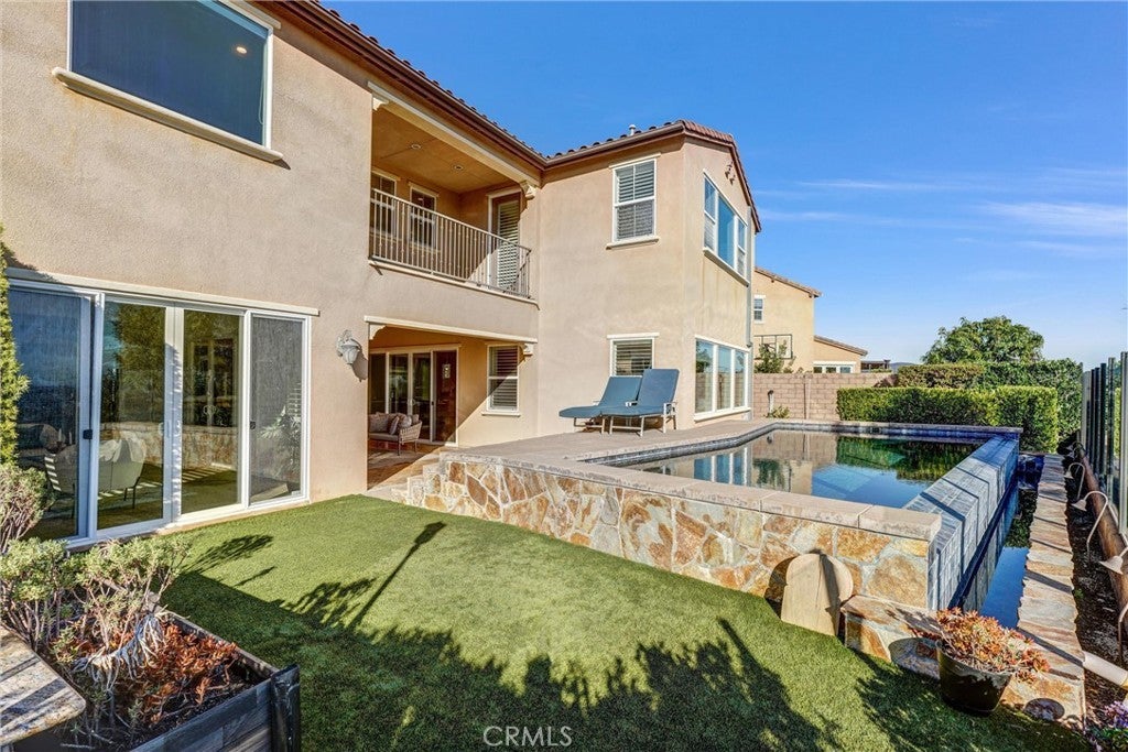 Welcome to 2488 Kern River, a stunning luxury residence in one of Brea’s most desirable hillside communities ~ Blackstone ~ where modern elegance meets breathtaking 180-degree panoramic views of city lights, Orange County skylines, and Disneyland’s nightly fireworks. As you arrive, a professionally paved driveway leads to a spacious 3-car garage & flagstone courtyard, offering beautiful curb appeal and a sense of timeless sophistication. Inside, the home blends warmth and refinement throughout its 5 bedrooms and 5.5 bathrooms. The main level features engineered hardwood floors, while the upper level showcases luxury vinyl plank flooring and new interior paint for a crisp, modern feel. Window shutters adorn most rooms, complemented by select roller shades for soft light control. The chef-inspired kitchen boasts a built-in refrigerator, large walk-in pantry, and a dedicated workspace ~ perfect for planning or organizing. An adjacent open great room flows seamlessly to the outdoor retreat, creating the perfect backdrop for entertaining. Enjoy the best of Southern California living in your own private courtyard with pool, built-in BBQ, and low-maintenance landscaping, highlighted by planters with artificial grass and lush accents for year-round beauty. The downstairs guest suite offers comfort and privacy with its own bathroom, plus an additional powder room for guests. Upstairs, the spacious loft can easily be converted into a primary retreat, home office, or kid's playroom/ study room while the private balcony off the retreat captures mesmerizing city-light views that stretch across Orange County. Every detail of this home reflects thoughtful design and easy luxury ~ a rare blend of functionality, elegance, and panoramic beauty.