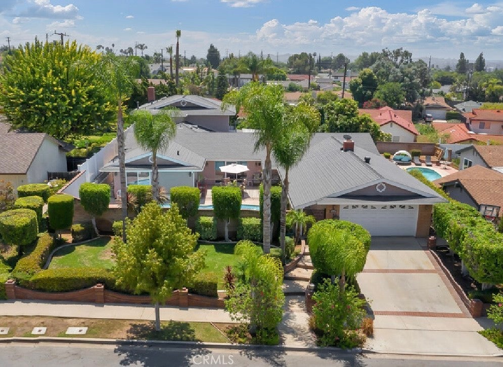 This spacious and versatile residence offering 6 bedrooms, 4 bathrooms, and 3718 sq ft of living space on an expansive 10988 sq ft lot. Perfectly designed for multi-generational living this home combines comfort, privacy, and entertainment in one of Brea’s highly desired neighborhoods. With 4 downstairs bedrooms and 2 bedrooms upstairs, a portion of the property could be used for rental income, making it an ideal setup for generating extra revenue or accommodating extended family. Additionally, there's a separate office with a private entrance, perfect for remote work. From the moment you arrive, you’ll be captivated by the beautifully landscaped front yard, with stunning brickwork and enclosed by a block wall for added privacy. The gated pool area is an ideal spot for enjoying sunny days. A two-car garage provides convenient side-door access to the covered front walkway, leading to the welcoming front double-door entry. Inside, the floor plan offers vaulted ceilings in the living room, highlighted by a cozy fireplace that sets the tone for relaxing evenings. Adjacent is a spacious formal dining area with French doors to the backyard, creating a seamless indoor-outdoor flow for entertaining. The kitchen offers a gas range, breakfast bar seating, and abundance of natural light, complemented by an additional dining area featuring a chandelier and French doors opening to the front courtyard with views of the pool. Downstairs also includes an oversized laundry room with built-in cabinetry, countertop space, and a sink for convenience. The main level hosts a full primary suite with an ensuite bathroom, as well as three additional bedrooms and a full bath. One of the standout features is the secondary unit within the home constructed in 1980, which offers excellent potential for rental income. Accessible through the main level or side gate with a separate entrance, this private space includes a living room with fireplace, kitchen, half bath downstairs, and direct access to the backyard ideal for guests, or generating rental revenue. Upstairs in this unit, you’ll find a full bathroom and two bedrooms. The backyard is equally inviting, with a covered patio, grassy play area, and a large patio space perfect for gatherings. Fruit trees, including pomegranate, avocado, lemon, fig, guava, and mango, seasonal harvests. A storage shed adds even more functionality. With generous space, pool, income potential, and a prime location, this home has it all.