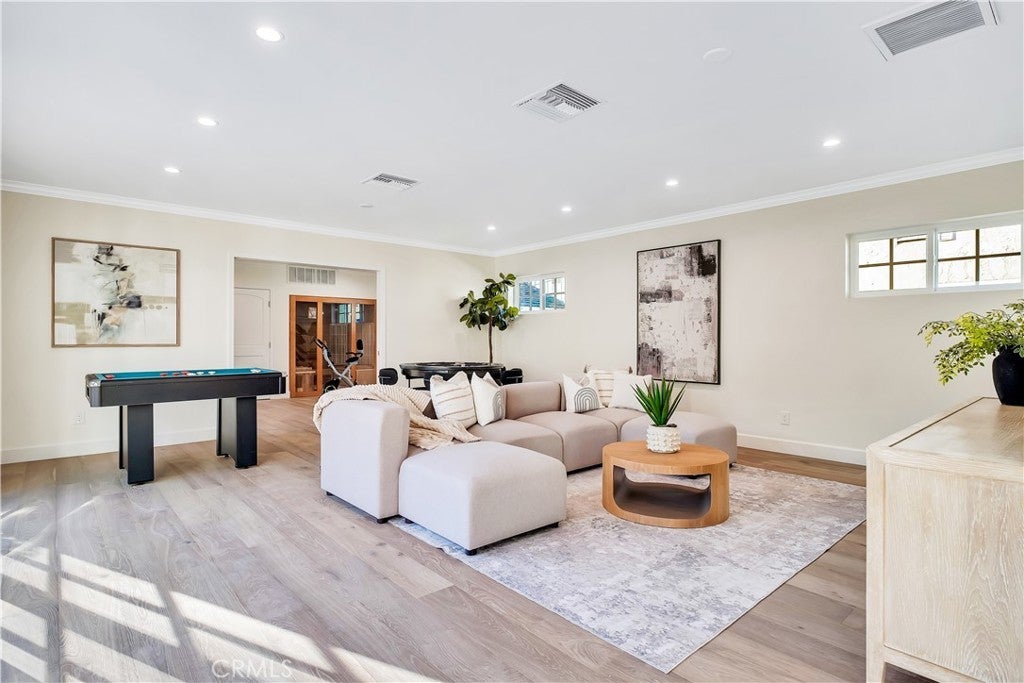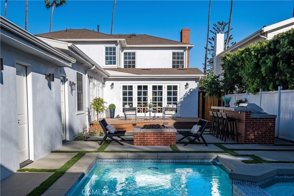 Stunning, fully remodeled 4-bedroom home with exceptional indoor-outdoor living and a private 1-bedroom, 1-bath ADU off the pool—ideal for guests, extended family, or rental income. Sunlit main residence features new oak hardwood floors, custom cabinetry, and an open layout designed for entertaining. The kitchen boasts Taj Mahal countertops, new Thermador appliances, a walk-in pantry, and a coffee bar with its own water supply. Generous counter space flows into two large living areas and a spacious dining room perfect for hosting. The upstairs primary suite overlooks the pool and offers a cozy fireplace, walk-in closet, and a beautiful, large bathroom. Outdoors, enjoy a resort-style yard with a heated pool, jacuzzi, expansive deck, and built-in BBQ. Step back inside to a dedicated workout space that includes a sauna for post-swim relaxation. Thoughtful modern finishes and ample gathering spaces make this a warm, move-in-ready retreat.