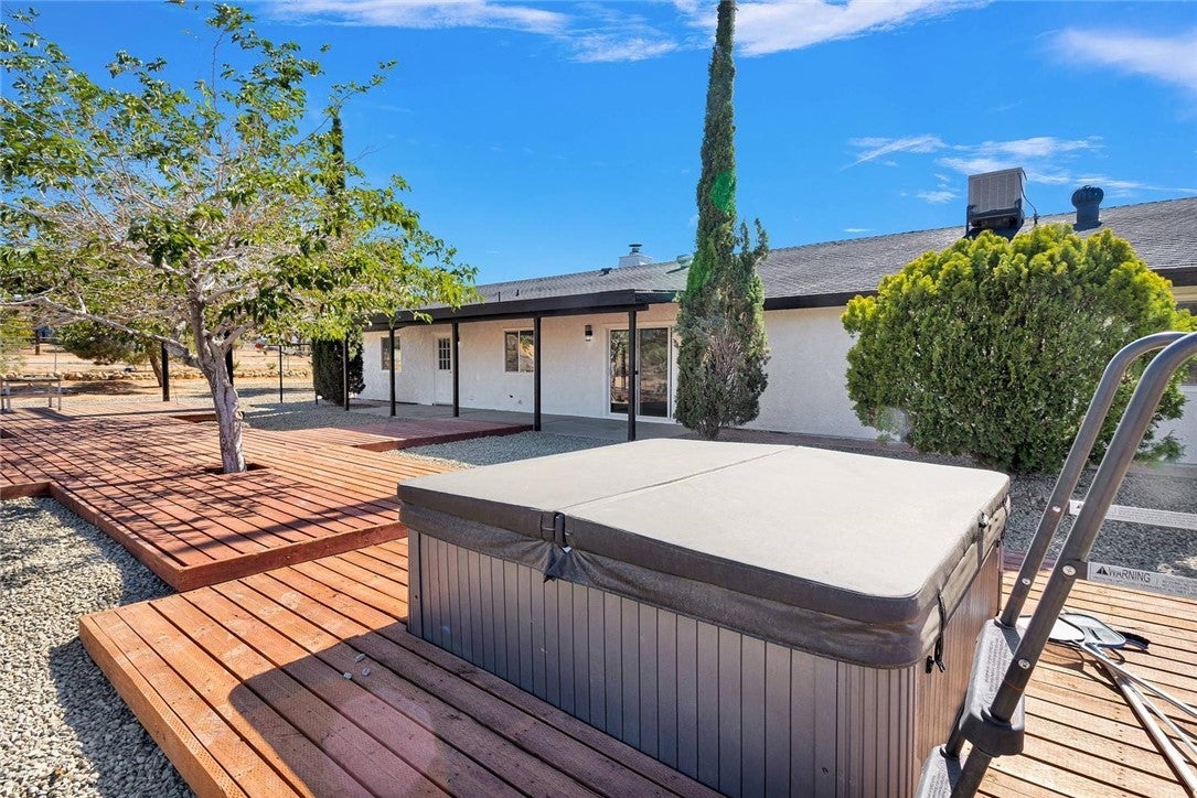 NO HOA. Huge lot size with extreme potential for ADU This FULLY RENOVATED 4 Beds /2 Baths home in Yucca Valley is more than just move-in ready; it's a lifestyle upgrade. Whether you're searching for a peaceful primary residence or a vacation rental with strong income potential, this home delivers. This Luxury property stands on one expansive lot, offering the perfect setup for multigenerational living, rental income or to live in. This residence stuns with luxury. Chef's kitchen adorned with waterfall quartz countertops, premium appliances, and custom cabinetry. The open-concept layout flows effortlessly into the dining and living areas, highlighted by lighting and elegancy all around. Each bedroom is generously sized, with spa-inspired bathrooms featuring modern tilework and high-end finishes. Step outside to a meticulously landscaped paradise a lush backyard oasis complete with Jacuzzi for you and family to relax and enjoy the day. Views with Vibrant gardens perfect for entertaining or relaxing in style. Additionally it comes with panoramic hill views, all nestled at a corner of a quiet street. All Brand new appliances included. Just minutes from shopping, dining, and freeways, this property is more than a home it's a lifestyle you have been waiting for, investment, and sanctuary all in one.