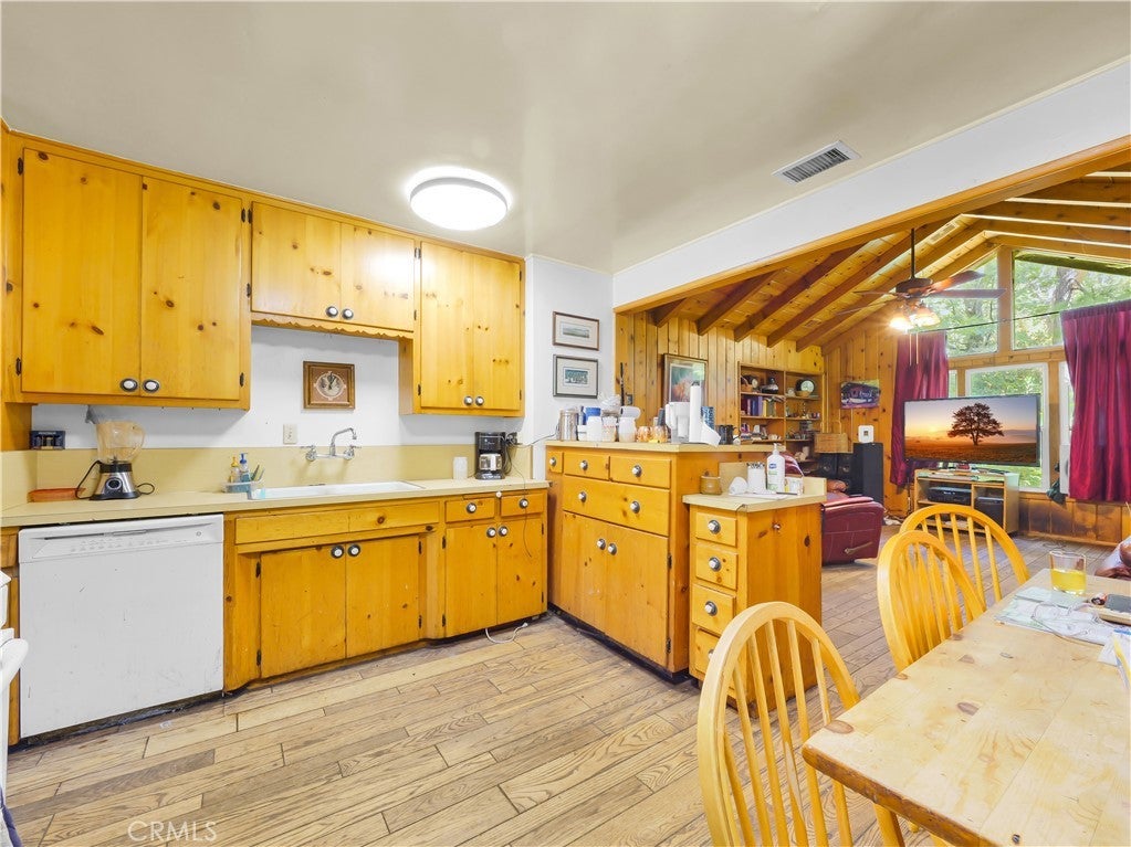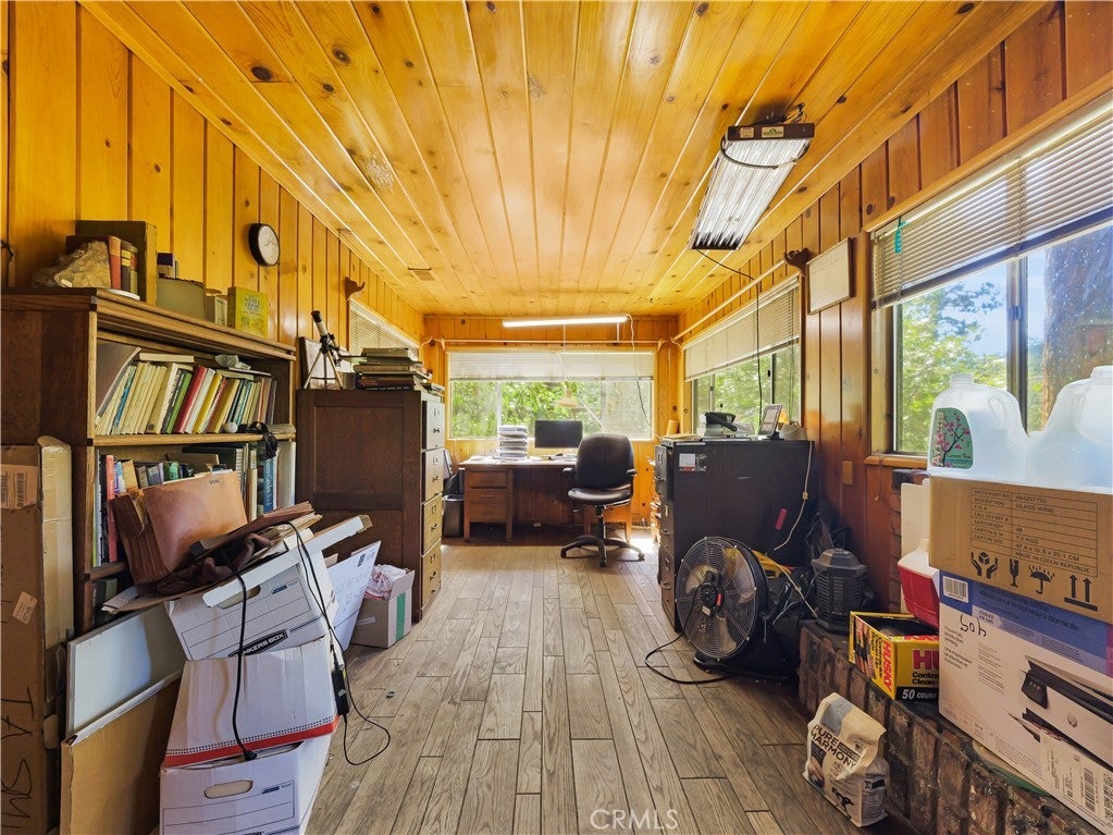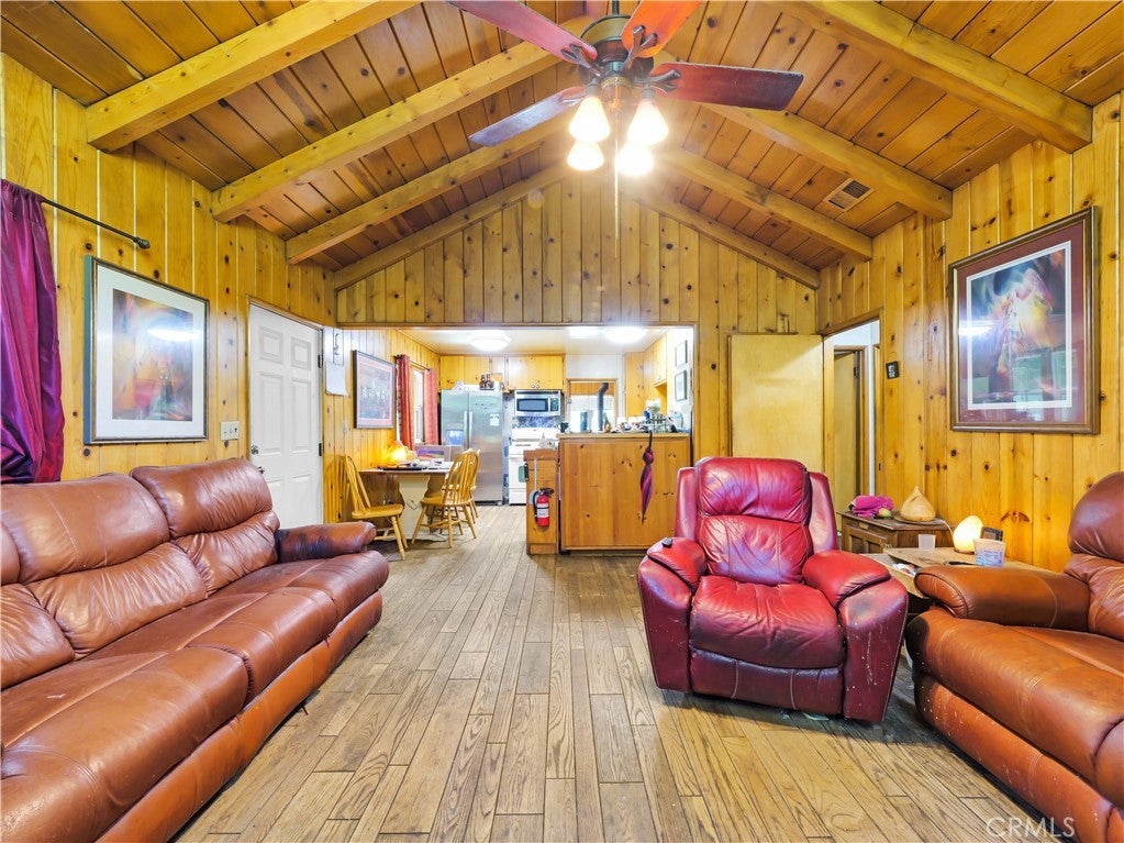 Find your perfect getaway in this rustic cabin, with 360 degree mountain views. The home is located just off Highway 38, at 6,700 feet elevation! Built with tongue and groove knotty pine and open beam ceilings, this 3 bedroom home features a wood burning fireplace, oak plank flooring and a double lot potential. Downstairs is a one car garage, basement laundry, workshop and a large yard with lots of mature trees and plantings. A sizeable adjoining parcel is potentially available as well. Don't miss it!