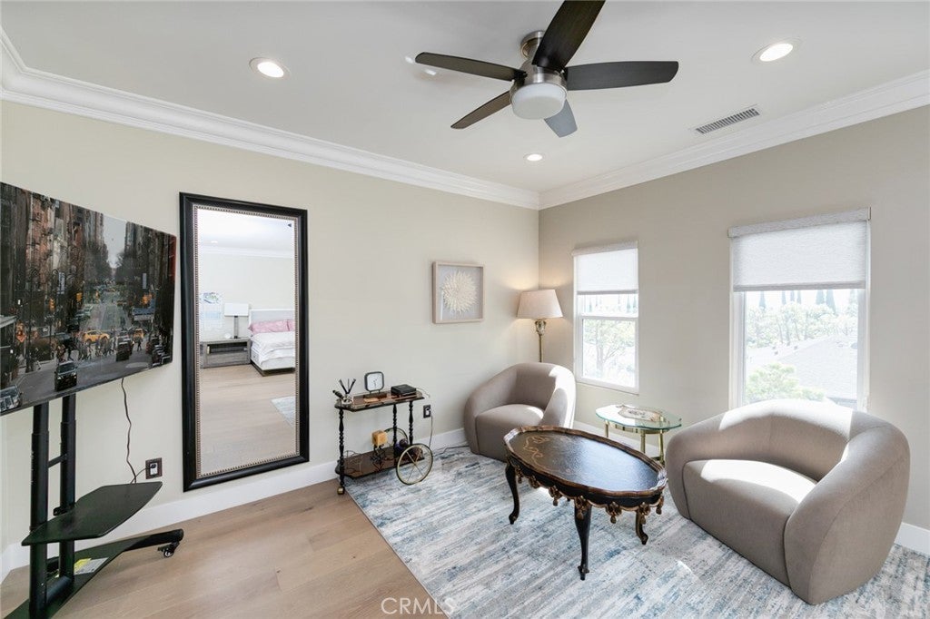Balcony, Ceiling Fan(s), Cathedral Ceiling(s), Separate/Formal Dining Room, High Ceilings, Living Room Deck Attached, Open Floorplan, Pantry, Quartz Counters, Recessed Lighting, Bedroom on Main Level, Main Level Primary, Primary Suite, Walk-In Closet(s), Breakfast Area, Crown Molding, Elevator, Two Story Ceilings