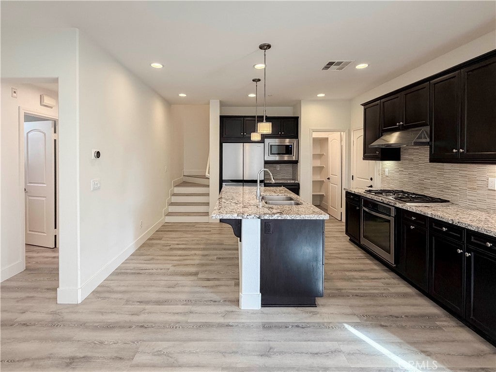 Located in the prestigious Blackstone community of Brea, this beautifully upgraded former model home offers 3 bedrooms, 2.5 bathrooms, and a versatile den on the main level—perfect for a home office or additional living space. The open-concept main floor features a bright living and dining area that flows seamlessly into a modern kitchen with granite countertops, stainless steel appliances, and stylish cabinetry. A convenient half bath and direct access to the finished two-car garage, featuring epoxy flooring and a 240V outlet for EV charging, add to the home’s comfort and functionality. Upstairs, the spacious primary suite includes dual vanities, a soaking tub, a glass-enclosed shower, and a walk-in closet. Two additional bedrooms, a full hallway bath, and an upstairs laundry room complete the second floor. The backyard is beautifully hardscaped for low maintenance, providing a private space for relaxation or entertaining. Residents enjoy access to Blackstone’s resort-style amenities, including a pool, spa, parks, and scenic walking trails, all within the award-winning Brea Olinda Unified School District. Don’t miss this rare opportunity to lease a well-maintained, upgraded home in one of Brea’s most sought-after neighborhoods.