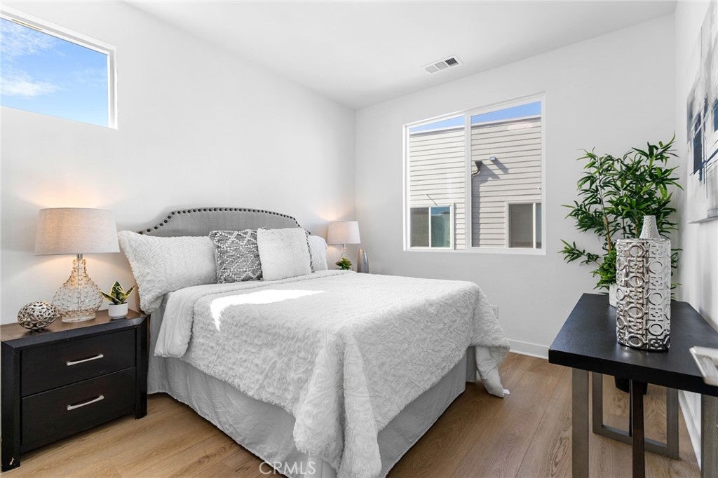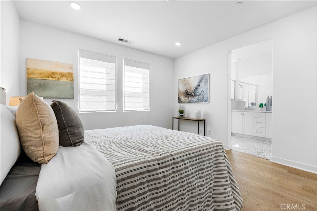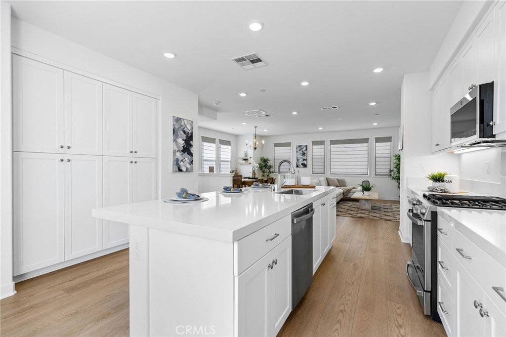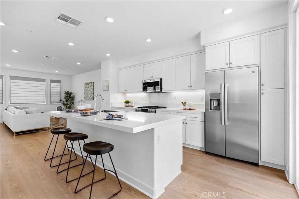 Rarely does a home of this caliber become available - especially at this price point. Perfectly positioned on a coveted corner lot just steps from the community pool within the gated community of Emerald Point by Lennar Homes, this sophisticated tri-level residence offers an unrivaled blend of luxury, functionality, and convenience. With three bedrooms, four bathrooms, and 2K sq.ft. of impeccably designed living space, every detail has been thoughtfully curated for modern living. The first-floor flex space offers endless possibilities, currently designed as a children’s play area with a custom built-in library and loft, yet easily adaptable to suit your needs. As you make your way up to the second floor, you’ll be captivated by the sun-drenched great room, highlighting the seamless open floor plan. The expansive layout flows effortlessly into a spacious kitchen complete with premium cabinetry hardware, luxury vinyl plank flooring, and an adjacent balcony - the perfect setting for sunset dinners or weekend entertaining. The primary suite is a sanctuary unto itself, featuring a spa-inspired ensuite with dual vanities and a capacious shower enclosure, all complemented by a generous walk-in closet. Every inch of this home reflects elevated design, from marble-tiled bathrooms to wireless Roman shades that can be effortlessly removed for cleaning. And for those who crave outdoor living, this home offers not just one, but two private outdoor spaces - a balcony overlooking the pool and a serene first-floor patio retreat. It also comes equipped with solar panels so you can feel good about renewing energy and save some money while you’re at it. Adding to its appeal, this home is still covered under the builder’s full warranty for eight more years, ensuring exceptional peace of mind. Its prime location offers unparalleled accessibility to major freeways, retail destinations, top dining, and some of Anaheim’s most iconic attractions. Homes like this - in a setting like this, at a price like this - simply don’t exist. If you thought Orange County homeownership was out of reach, think again. This could be your moment - or someone else’s - so connect with us today and schedule your private showing.