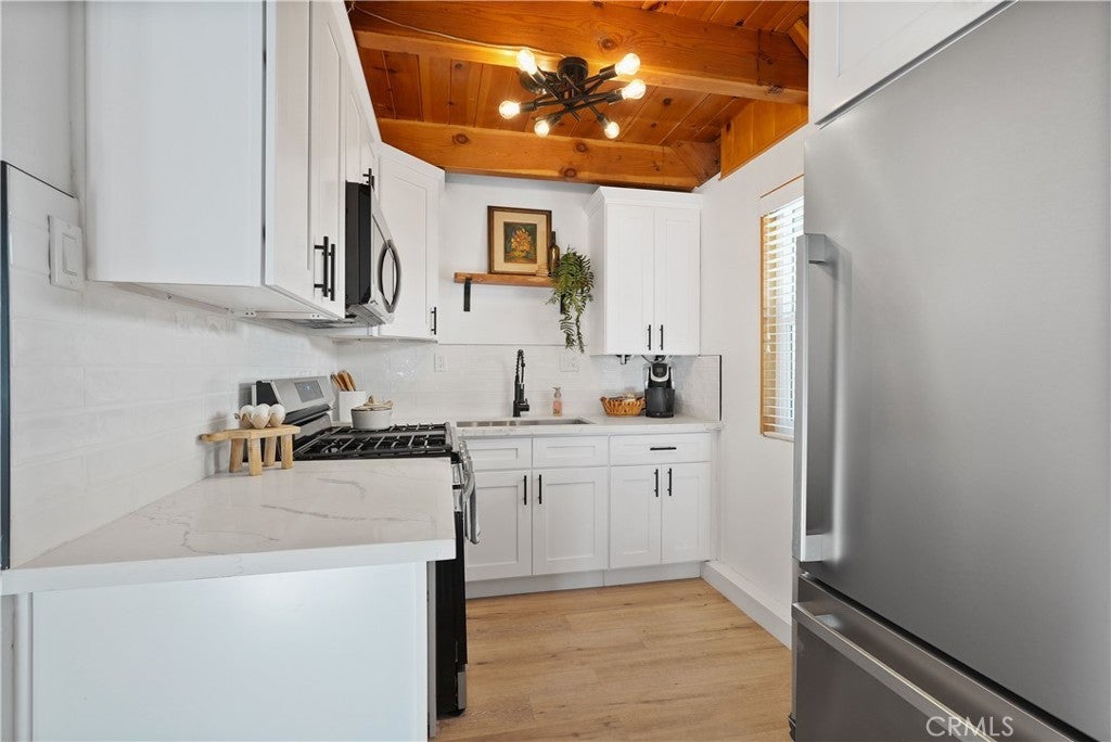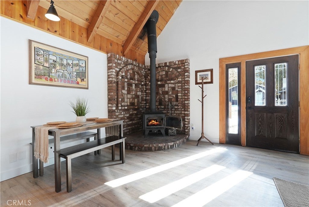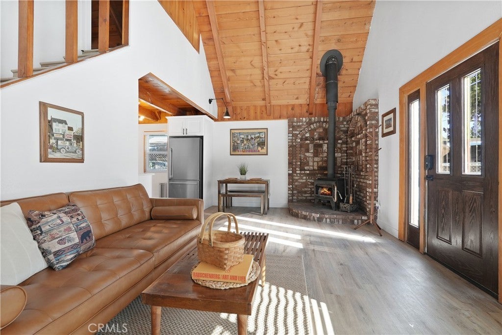 LOCATION! LOCATION! LOCATION! Welcome to 2107 4th Ln. Located in the heart of Big Bear! This beautiful 2 bedroom 1 bathroom home sits on a great size double lot. The interior of the home contains beautiful vinyl flooring throughout, a wood burning fireplace in the living room, and quartz countertops in the kitchen. The amazing size master bedroom is located upstairs. The room contains a bed with a brand new mattress. Main Bathroom is located downstairs and contains a walk-in shower and sink quartz countertop. There is also one more bedroom downstairs that is a great size. Room also contains room decor. The backyard is perfect for entertaining during all seasons of the year, also contains a huge storage unit. Home is close to Bear Mountain and The Village!! THIS HOME WILL NOT LAST!!
