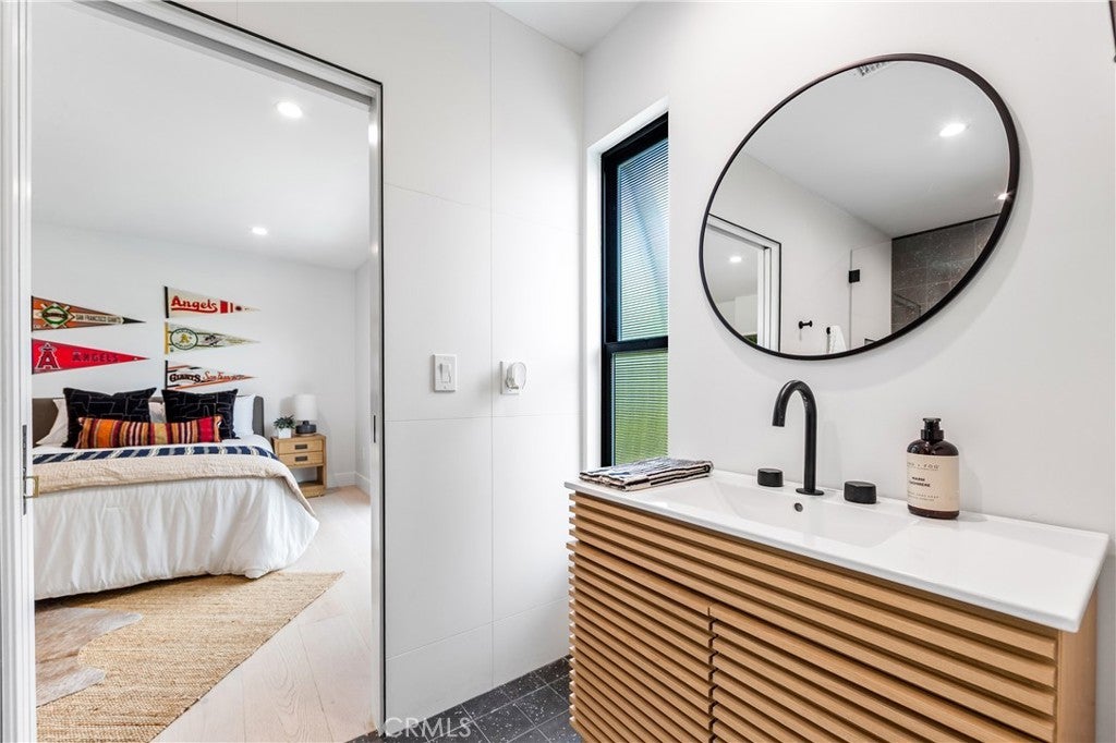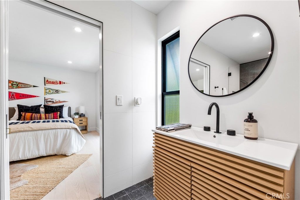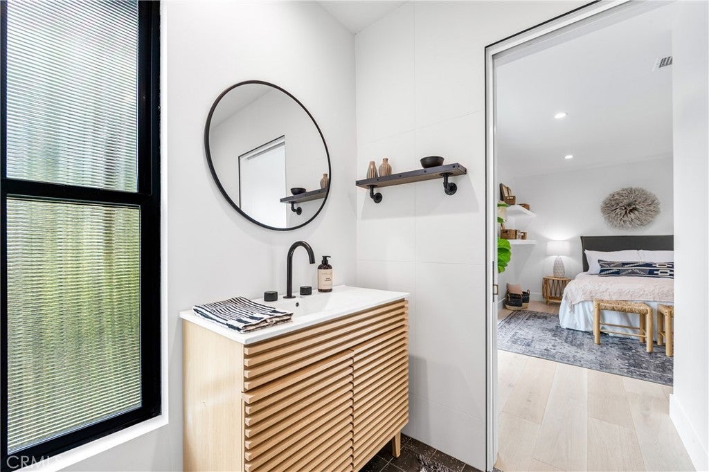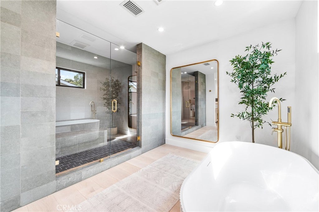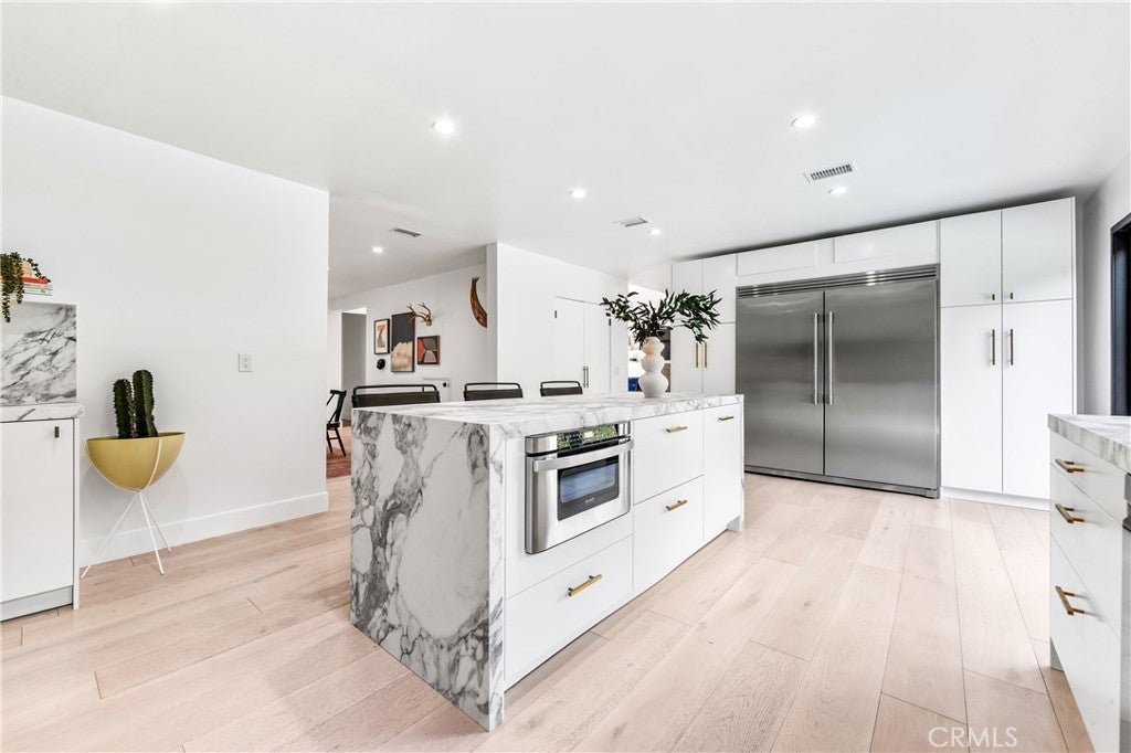 Perfectly positioned in the most coveted Seal Beach neighborhood, this modern Hill masterpiece reflects a refined coastal lifestyle. Step inside this stunning home where bold design meets relaxed living. Thoughtfully created for luxury and comfort, this residence blends clean lines, artistic details, and effortless indoor-outdoor flow—just minutes from the beach. A sleek charcoal exterior with board-and-batten detail, a dramatic entry and generous front patio sets the tone for the style within. Inside, soaring vaulted ceilings and wide-plank white oak floors create a gallery-like atmosphere, while curated statement pieces infuse the home with personality and warmth. The open-concept living space is anchored by dramatic volume and abundant natural light. The designer kitchen features professional-grade appliances, oversized porcelain waterfall island, custom cabinetry, and walk-in pantry, making the space as functional as it is beautiful. Perfect for entertaining, the space opens seamlessly to the back yard retreat. The first floor also features a large dining room, a pool room/den/guest bedroom, a full bathroom, and a laundry room with direct garage access. Upstairs, the primary suite offers a tranquil retreat with a spa-inspired ensuite bath, complete with dual-sink vanity, oversized multi-head shower, and soaking tub. The large walk-in closet offers endless possibilities for customization. The two additional oversized bedrooms share a jack-and-jill bathroom. These spaces maintain the home’s consistent blend of modern sophistication and inviting comfort. Every finish—from the natural stone surfaces to the hand-poured zellige tile—reflects a refined, curated aesthetic that’s both timeless and unexpected. The outdoor spaces enjoy the same level of intention, with large front and back areas designed for gathering. This home has also been extensively updated mechanically. An all-new HVAC system, electrical panel, tankless water heater, and newer roof are just a few notable upgrades. New windows, doors, hardware, exterior smooth stucco, and lighting complete the renovation. Located within the coveted Los Alamitos school district, this Hill home embodies the essence of modern coastal luxury—bold, livable, and designed to inspire. Just minutes from McGaugh Elementary School, Main Street shopping and dining, and nearby beaches and marinas, this home is perfection!