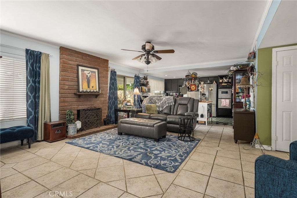 Located in the beautiful City of Orange, this wonderful, multi-generational home, or beautiful home with multiple options, is located at the end of a cul-de-sac beautifully landscaped with roses and cottage garden flowers, and separated by the large three-car driveway is a cute little orchard area with beautiful grapevines, apple trees, papaya, plum, and fig trees. The front yard has a beautiful used-brick courtyard and low fencing, making the grounds charming. The house is approximately 2,700 square feet and includes a large three-car attached garage with three parking spaces and a double-door (looking) entrance opening to the foyer, which has a staircase to the upstairs and a separate entrance to the main living area. As you enter into the main living area, you are welcomed into the charming family room with one of two beautiful fireplaces and open to the country kitchen with newer stainless steel appliances and a farm sink, overlooking the covered back patio and pool area that is ready to be landscaped as beautifully as the front yard. Access from the kitchen leads to the beautiful dining room and living room with high cathedral ceilings and double French doors leading to the front courtyard. Your laundry, full bath, and 4th bedroom are also in the downstairs area, as is access to your three-car garage. Upstairs, there is a beautiful grand suite with its own fireplace, upgraded mirrored wardrobe closet, and a full bath consisting of a separate double sink, vanity area, and walk-in closet, as well as a separate bath, shower, and toilet area. This beautiful suite is extremely large and feels even larger with its cathedral ceilings. The second kitchen, complete with its own laundry, is also on the second floor, as is another full bath, a large bedroom with triple mirrored wardrobe closet doors, and finally a large room, currently being used as another private suite with high cathedral ceilings. All bedroom and bathroom doors have been upgraded, along with other lovely improvements made through the years. This home gives you many options for how to enjoy it and is conveniently located near UCI Medical Center, CHOC, St. Joseph Hospital, Chapman University, and is freeway close to major connections. Angel Stadium, the Honda Center, and Disneyland are also nearby, adding to the incredible convenience and appeal of this beautiful Orange home.
