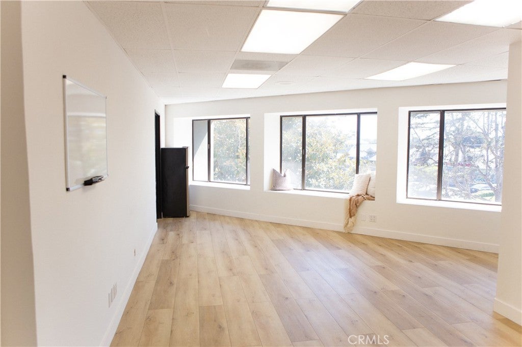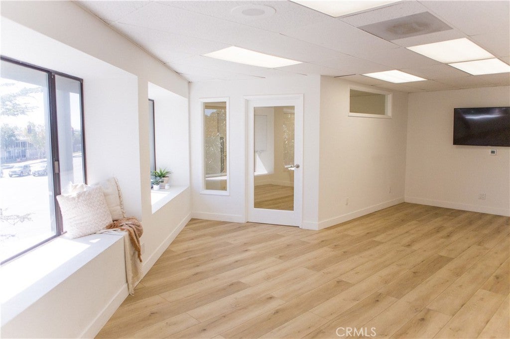 Light & Bright Costa Mesa Office Suite | Private Office + Modern Finishes Near The Camp & South Coast Plaza. Welcome to your new workspace in the heart of Costa Mesa, just moments from The Camp, The Lab, and South Coast Plaza. This light-filled second-floor suite features large windows overlooking Baker Street, creating an inspiring setting for creative, administrative, or professional use. Inside, you’ll find luxury vinyl plank flooring, contemporary finishes, and a private office with a glass door—ideal for meetings or focused work. The space also includes a separate storage closet, its own dedicated AC/heating unit, and ample natural light throughout. A TV and whiteboard can be included or removed to fit your needs. Shared restrooms are conveniently located in the hallway. Please note, access is by stairs only (no elevator). Enjoy easy freeway access to beach cities and South County, and take advantage of the countless nearby dining and retail options that make this location a local favorite.