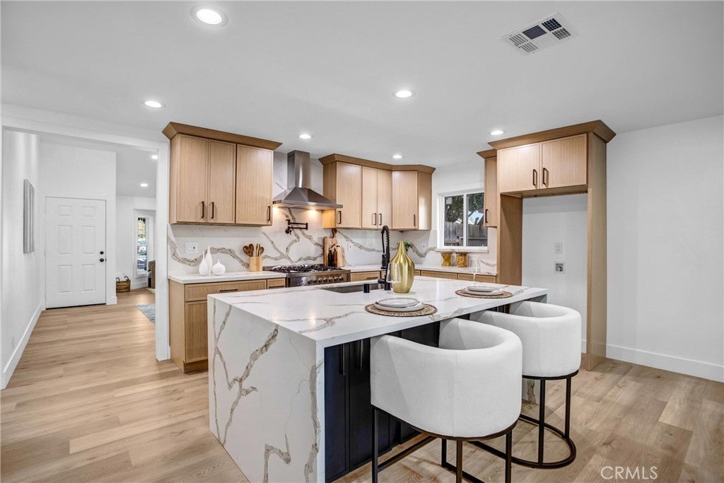 Situated in the highly sought-after 92807 zip code, this beautifully remodeled single-story home blends modern design with everyday comfort. Featuring 4 bedrooms, 2 bathrooms, and 2,522 sq ft of living space on a 5,640 sq ft lot, this home has been fully refreshed with quality updates throughout. Step inside to find new laminate flooring, recessed lighting throughout, and a stunning chef’s kitchen complete with quartz countertops, a waterfall island, and sleek finishes that make cooking and entertaining effortless. The home includes a hallway bath with dual sinks and a private primary ensuite, providing the perfect retreat for relaxation. With a two-car attached garage, central location, and access to the award-winning Placentia-Yorba Linda Unified School District, this residence offers both convenience and style. Whether you’re enjoying quiet evenings at home or exploring the nearby parks, shopping, and dining options, 4568 E Meadowhill Ave is the perfect place to call home.