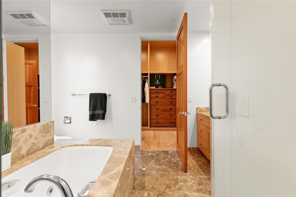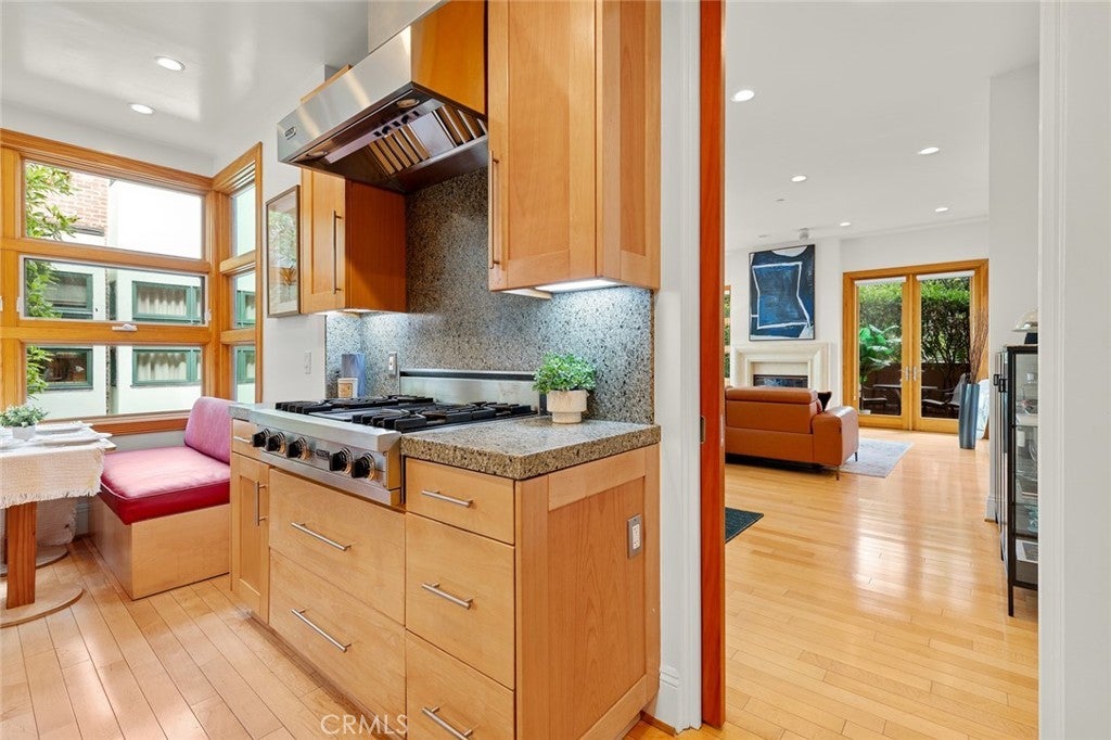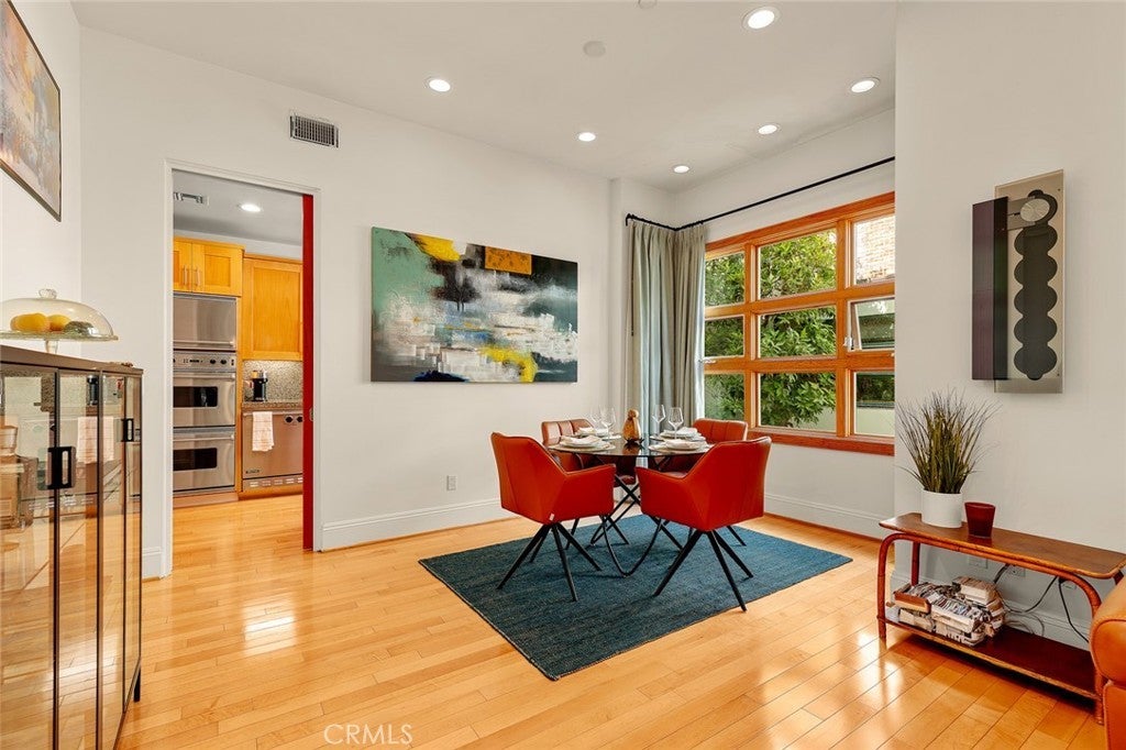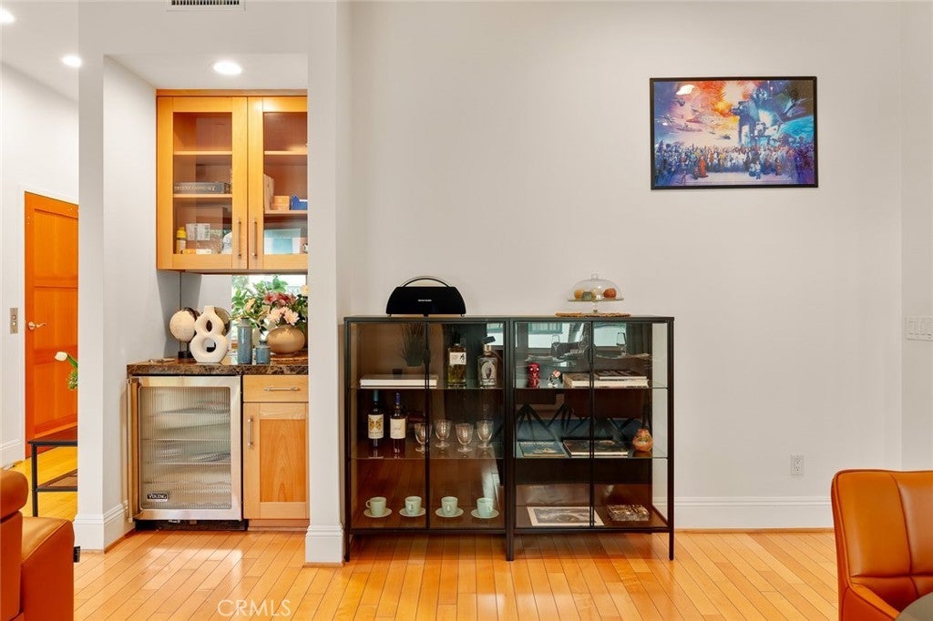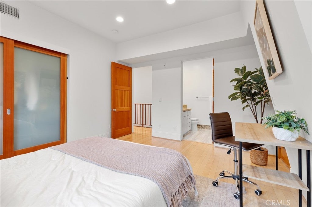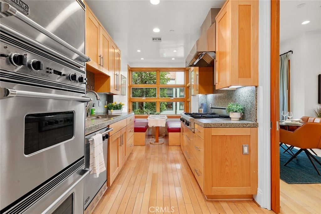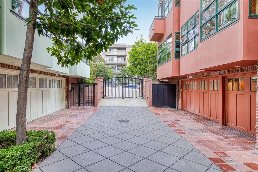 Bright and elegant front-corner townhome with a private entrance in the heart of Westwood. This 3-bedroom, 5-bath residence offers luxurious living with a 3-car private garage featuring a Tesla charger and your own elevator servicing all levels. The main floor showcases a spacious open-concept living area filled with natural light, featuring a cozy fireplace, a built-in bar with wine fridge, and access to a gated front patio—perfect for entertaining. The gourmet kitchen boasts wood cabinetry, granite countertops and backsplash, Viking stainless-steel appliances, an LG microwave, and a charming built-in breakfast nook. A powder room completes this level. The entire second floor is a private primary retreat, complete with two oversized walk-in closets, a fireplace, a balcony, and dual bathrooms connected by a glass-enclosed shower and jetted tub. On the third floor, you’ll find two spacious bedroom suites with 9-foot ceilings, each with its own bathroom. Additional features include 10-foot ceilings in the living and dining areas, natural maple hardwood floors, skylights, and recessed LED lighting throughout. Enjoy year-round comfort with individually zoned Ecobee thermostats on each floor and a separate laundry room with a sink and cabinetry. Built with sound-dampening air space between walls for added privacy. Located in a prestigious gated community of just 12 homes, this residence offers both privacy and convenience. Ideally situated near UCLA, Century City, and Beverly Hills—with Rancho Park Golf Course and Cheviot Hills Recreation Center just blocks away—and boasting a Walk Score of 76.