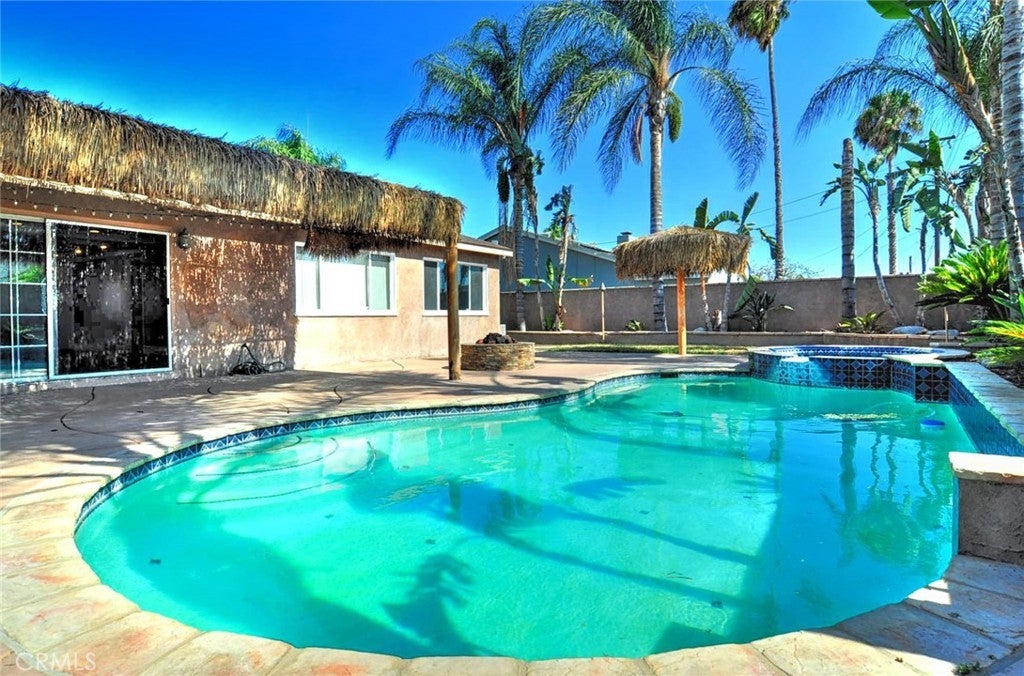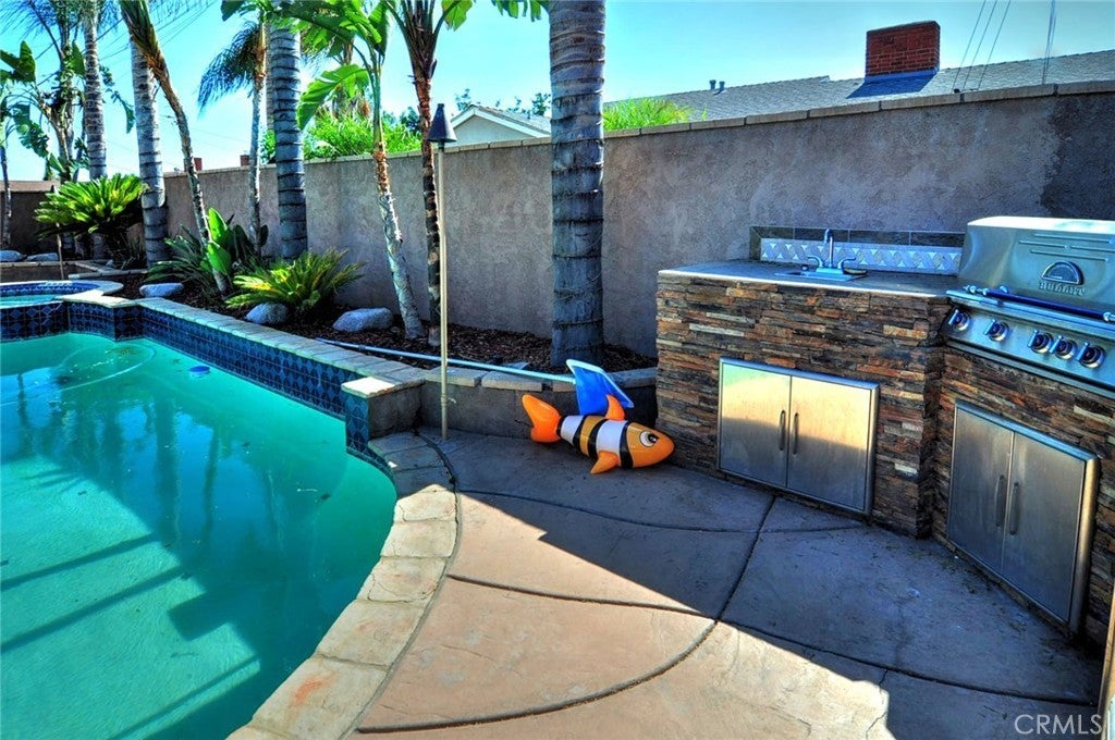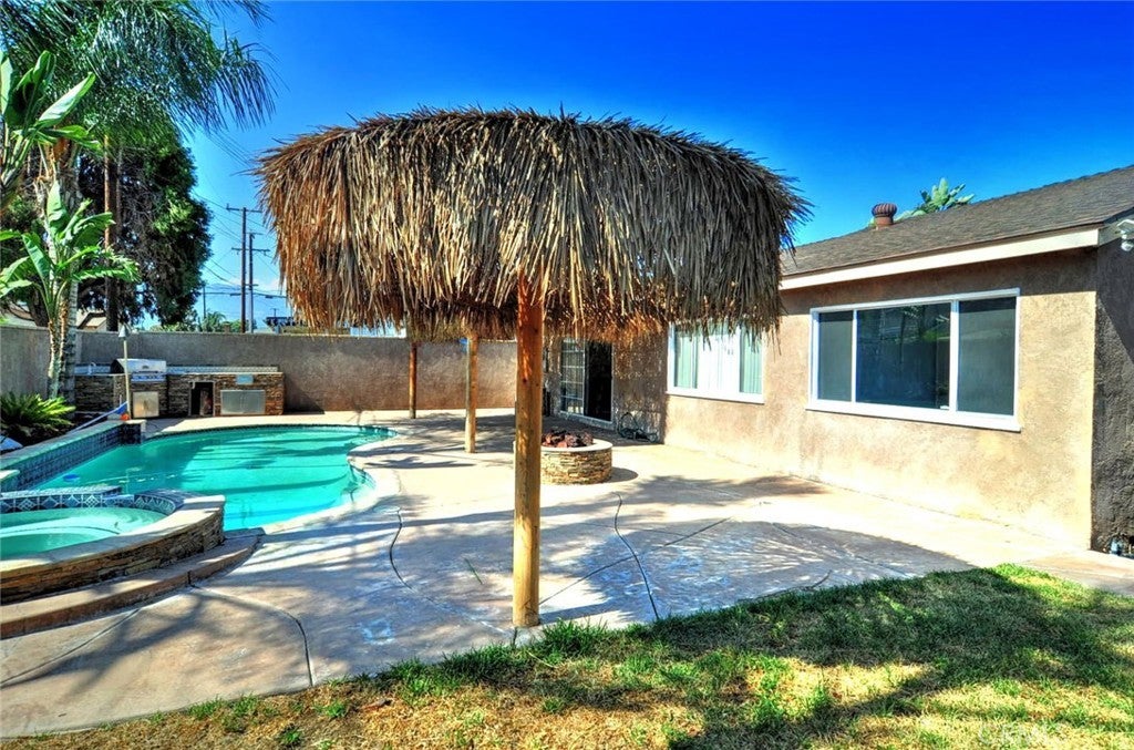 Welcome to your new home!! This wonderful home feature 3 spacious bedrooms, 2 upgraded bathrooms, a huge living area, and a recently remodeled kitchen. That is just the start, you wonder oasis awaits in the back yard with a sparkling pool, tiki lights, stamped concrete, fire pit, and a bbq island, perfect for entertaining all of your guest!! This house does not disappoint!!!