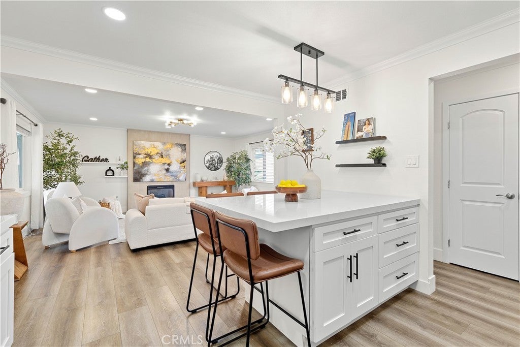 Turnkey modern home in the highly desirable Mesa Verde neighborhood of Costa Mesa - this 4-bed, 3-bath modern retreat blends style, comfort, and convenience. Inside, 1,653 sq ft of thoughtfully designed living space centers around an airy, open-concept living room and kitchen, perfect for everyday living and effortless entertaining. Gather around the sleek electric fireplace or the showpiece quartz kitchen island, where matching quartz countertops, recessed lights, new windows, and smooth ceilings create a bright, polished ambiance. The kitchen flows seamlessly to the living and dining areas, while durable laminate flooring and refined crown molding add warmth and sophistication throughout. Year-round comfort comes easy with a new HVAC, and a new water heater keeps life running smoothly. Four well-sized bedrooms give you flexibility for guests, a home office, or a playroom, accompanied by three well-appointed baths. Step outside to a generous 6,000 sq ft lot featuring a covered patio for al fresco dining and relaxing weekends. The spacious concrete driveway offers ample parking and convenience, with room for recreation or additional storage options. Turn the key and enjoy upgrades at every turn: new windows for energy-conscious living, recessed lighting in the living room and kitchen, and a layout crafted for connection and ease. All of this sits in coveted Mesa Verde - close to everyday essentials, local parks, shopping, dining, and the best of Orange County coastal living. Whether you’re hosting friends, working from home, or simply unwinding, this residence delivers the lifestyle you want in a location you’ll love. With 1,653 square feet of living space on a 6,000 square foot lot, there’s room to stretch out, entertain, and grow. From morning coffee at the quartz island to sunset dinners under the covered patio, this home elevates everyday moments. Don’t miss your chance to make this beautiful home yours. Schedule a private showing and discover turnkey living at its best