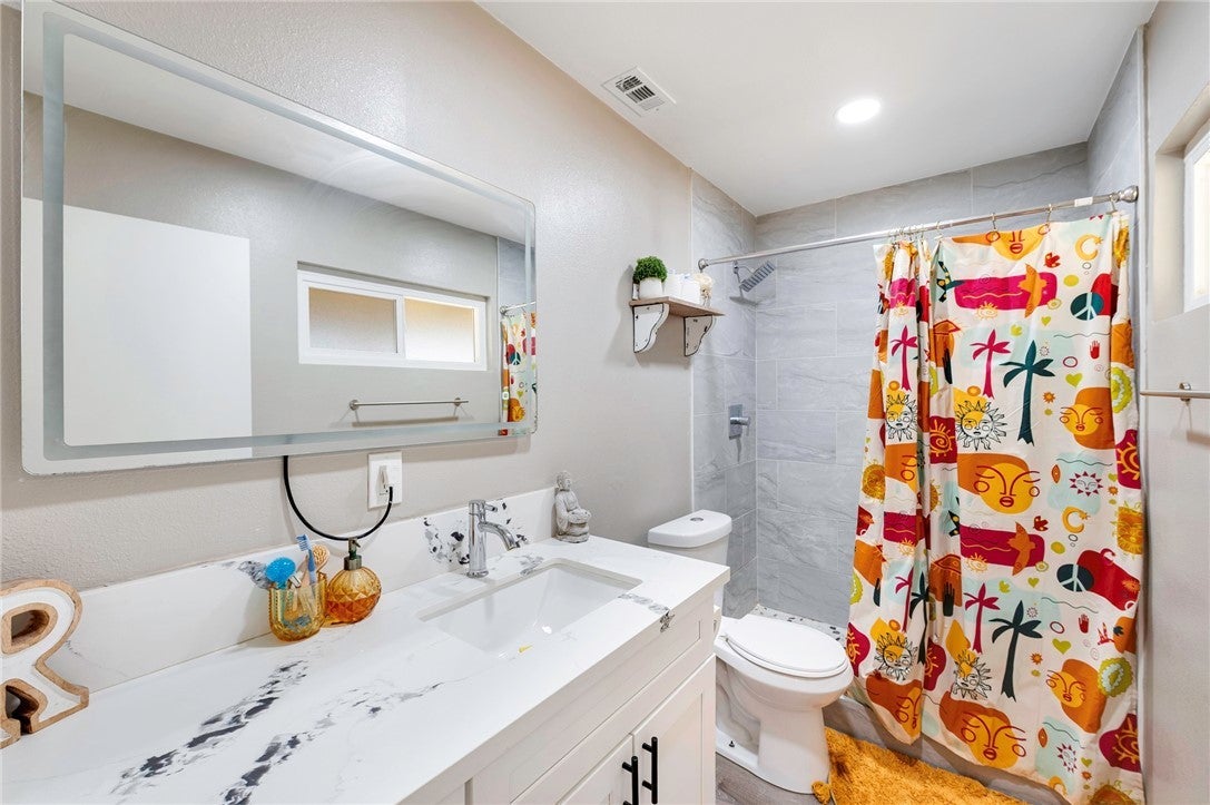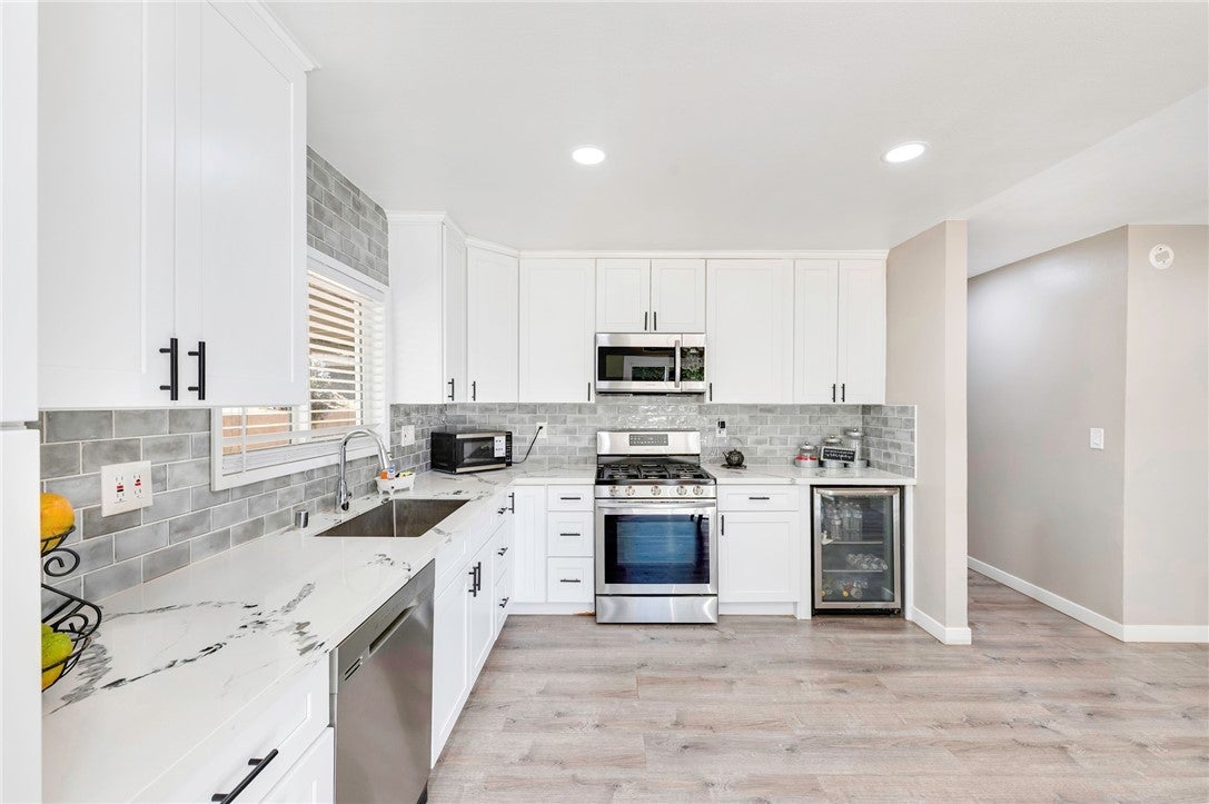 Welcome Home! This home features 3 bedroom, 2 bathrooms, single level/open concept, fully remodeled ready to move in. The kitchen features white cabinets with soft close, gorgeous quartz countertops, matching stainless steel appliances, recessed lighting and double pantries. The living room features recessed lighting and a fireplace. All three bedrooms have new ceiling fans with remotes and mirrored closet doors. The bathrooms have quartz counter tops and beautiful showers, new windows, RV parking and more. It's located in highly desired neighborhood centrally located on a cul-de-sac with easy access to all the major freeways.