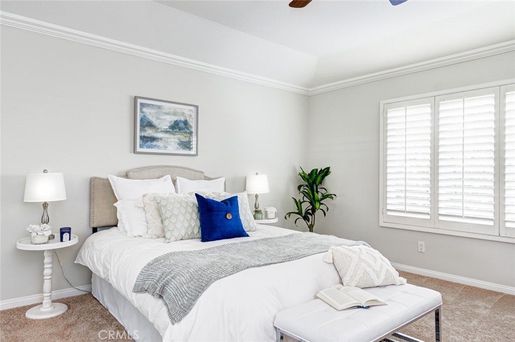 Charming Yorba Linda Gem in the Coveted Yorba Ranch Area - Nestled in the peaceful and highly sought-after Yorba Ranch Area, this delightful home sits on a quiet interior cul-de-sac on Via Santana—offering privacy with no through traffic. From the moment you arrive, you'll be welcomed by a beautifully designed brick front patio. The serene, covered outdoor space is adorned with vibrant flowers and a soothing water fountain—perfect for winding down in the evening. Inside, the home is warm and inviting. To the right of the entry, the efficiently designed kitchen features ample pantry and storage space, along with a spacious breakfast nook—ideal for enjoying your morning coffee. Just beyond, the open dining area flows into a bright and airy living room, enhanced by vaulted ceilings, abundant natural light, and a cozy fireplace. The oversized primary suite boasts mirrored wardrobes with custom shelving and a private en-suite bathroom featuring dual sinks, a separate shower, and a luxurious sunken tub. The secondary bedroom offers convenient access to the guest bathroom, making it perfect for visitors or family. Yorba Linda is called “The Land of Gracious Living,” and retains it’s charming small-town character while offering easy access to shopping, dining, and entertainment. Also note the home has a brand new HVAC system to give you years of trouble free heating and air conditioning This home is a true must-see—don't miss the opportunity to make it yours!