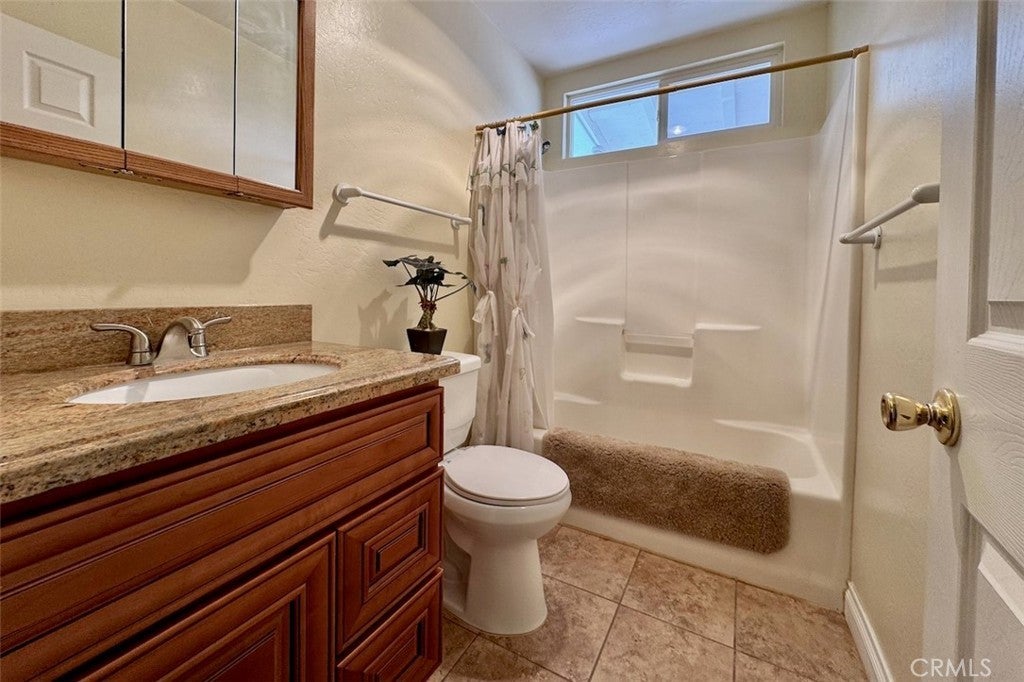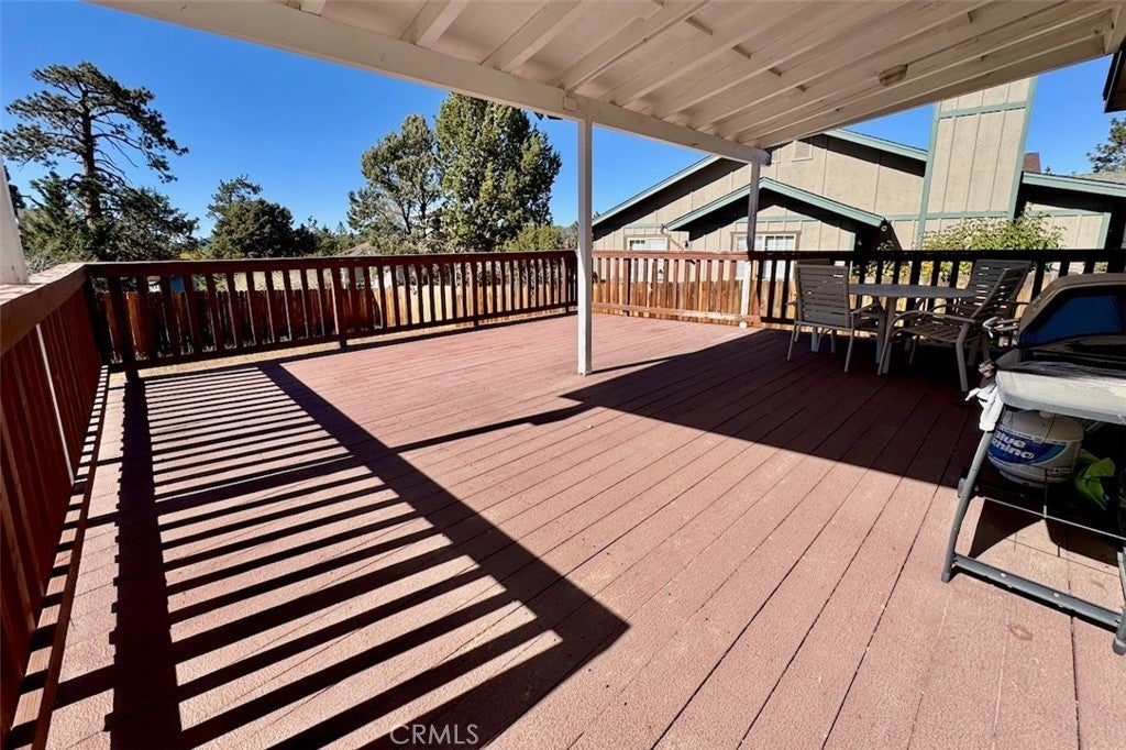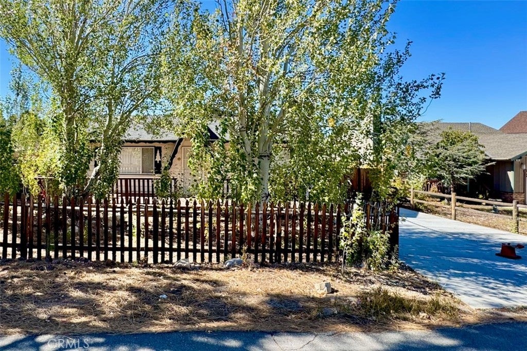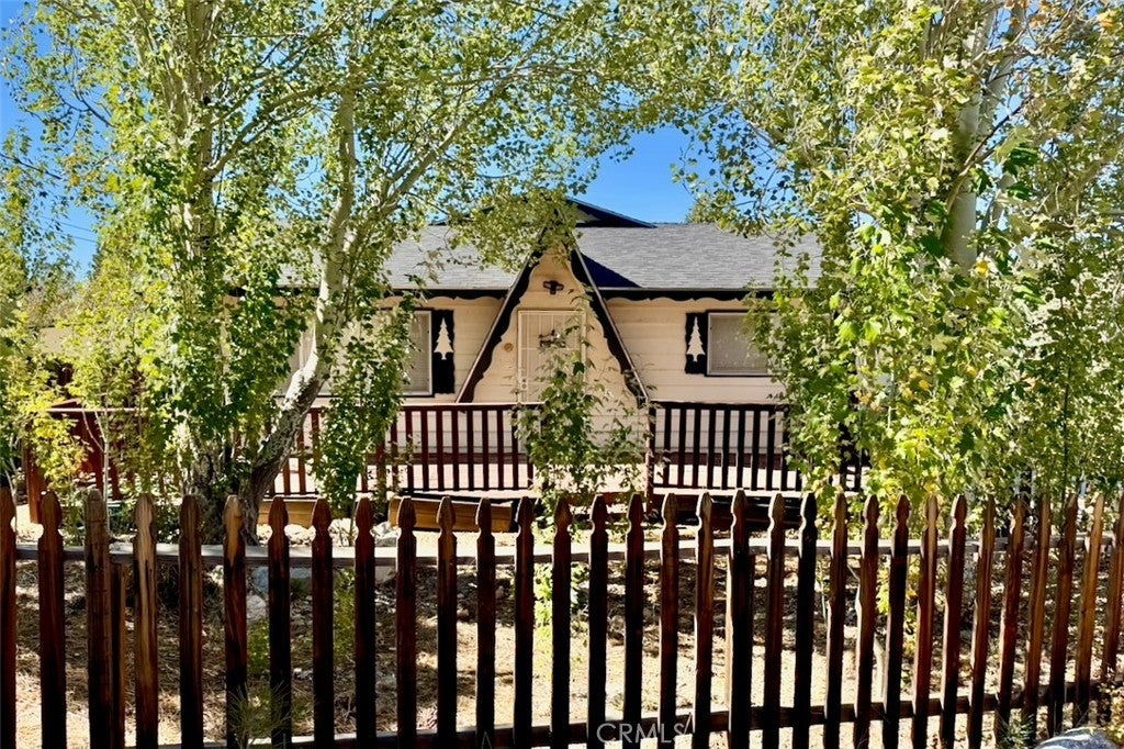 Beautiful and spacious single-story Moonridge home featuring 3 bedrooms, 2 full baths, and 1,224 sq. ft. of living space on a generous 7,540 sq. ft. lot. Ideally located on a quiet street with a new long flat concrete driveway for easy parking and a new roof installed in 2022. This updated home features plank flooring, upgraded dual-pane windows, and a light, open floor plan. The great room offers a cozy fireplace, while the kitchen includes granite countertops, a breakfast bar, and all kitchen appliances, cookware, and furnishings—beds, dressers, TVs, and more—making it fully turnkey. The spacious primary suite includes its own full bath. Two additional bedrooms share the second full bath. An indoor laundry area comes equipped with washer and dryer. Outdoor highlights include a fenced front yard with porch, newer driveway with possible gated concrete RV pad, a large covered view deck, a huge private fenced backyard, and a sizable storage shed. Great location very close to the resorts and just minutes from Big Bear Village. This property is move-in ready and ideal as a primary residence, vacation getaway, or possible short-term rental investment.