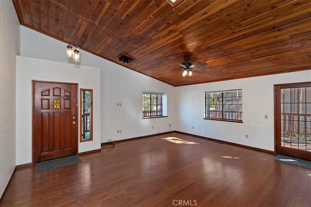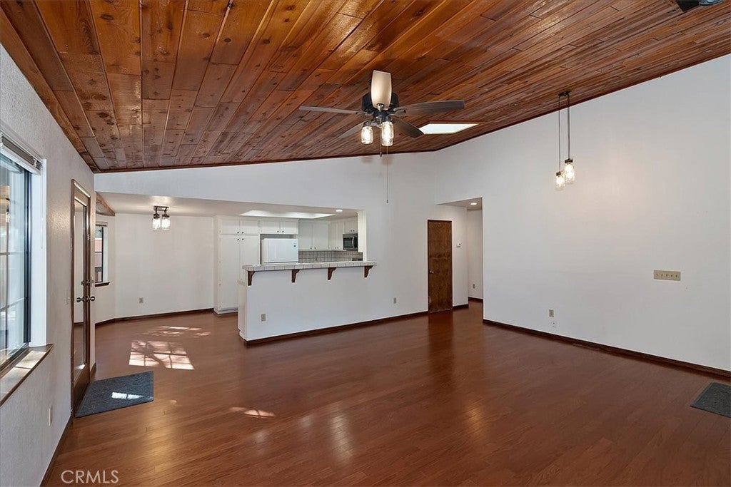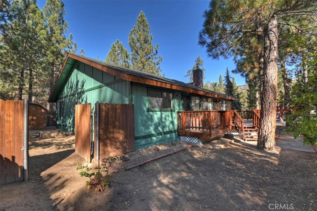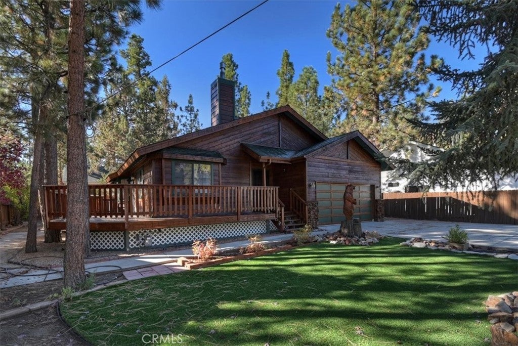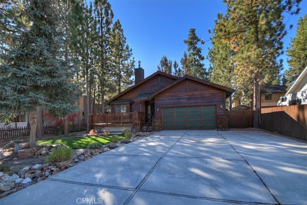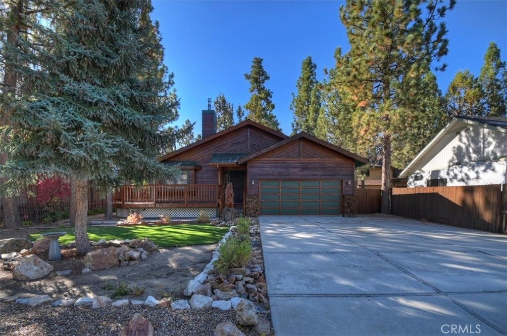 Fantastic value on this charming single-level home offering 3 bedrooms and 2 baths in the peaceful and sought-after Forest Springs community of Big Bear City. You’ll notice right away the care that’s gone into this home, with fresh exterior stain on both the house and the deck adding to its warm mountain appeal. Step inside to a bright and inviting living room with vaulted tongue-and-groove wood ceilings and a skylight that fills the space with natural light. The kitchen features a cozy bay window and dining area—perfect for family meals, or hosting friends after a day on the slopes. You’ll love the oak wood flooring throughout the main living areas which adds warmth and character. Spacious primary suite with its own private bath along with two additional bedrooms and a separate laundry room. Furnace is only three years old. Outside, relax on the wrap-around deck and breathe in the crisp mountain air. The level, low-maintenance yard, fenced backyard, and storage shed make life here easy and enjoyable. With an attached 2-car garage plus extra parking for your RV or boat, there’s room for all your mountain toys. Whether you’re looking for a full-time home or a cozy getaway, this Forest Springs gem has everything you need to enjoy the best of Big Bear living—comfort, charm, and that perfect mountain lifestyle.