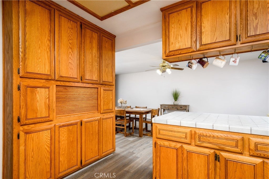 Breakfast Bar, Ceiling Fan(s), Cathedral Ceiling(s), High Ceilings, Pull Down Attic Stairs, Tile Counters, All Bedrooms Down, Bedroom on Main Level, Main Level Primary