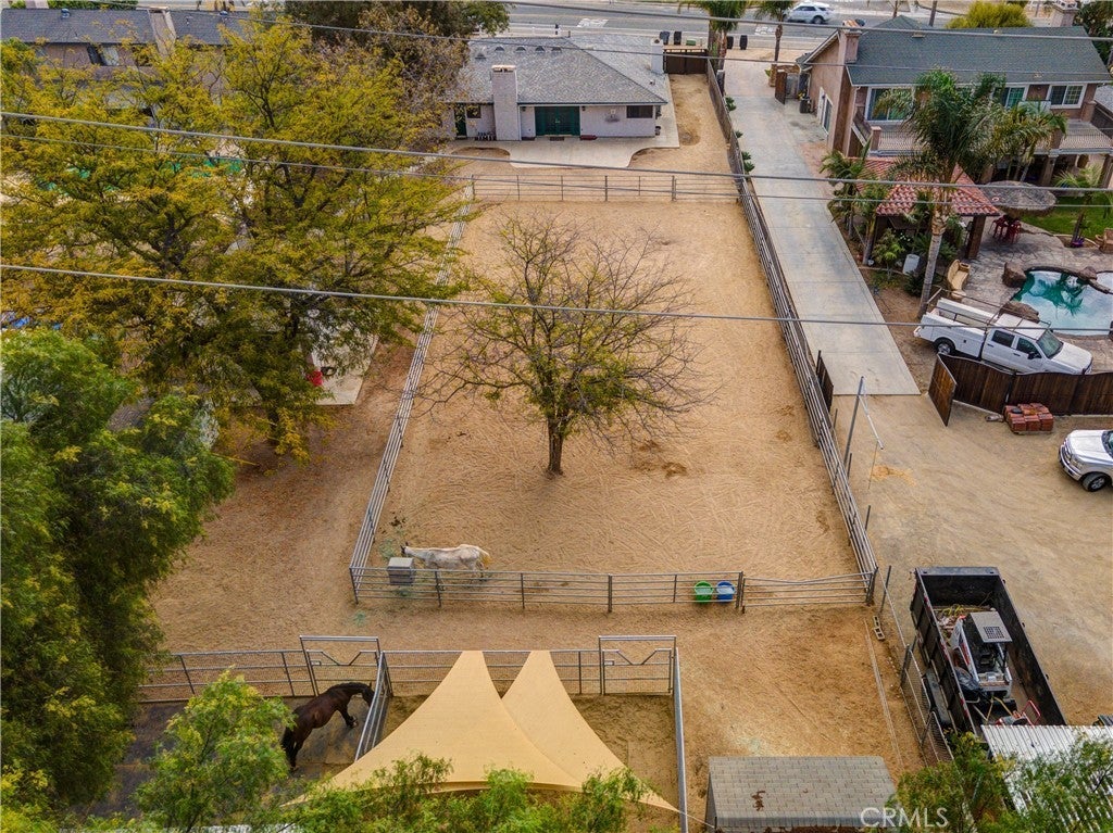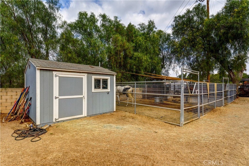 Welcome to Horse Town USA! This property is ideal for horse trainers, riders, and horse lovers alike. Situated on a 20,473 sq. ft. lot, it offers exceptional amenities for equestrian activities. This community is renowned for its horse trails, which are directly accessible from the property. The dedicated horse arena measures 48' x 97' with 1 7/8" pipe fencing, perfect for riding and training. It includes three horse stalls: (2) 24' x 24' welded wire stalls and (1) 12' x 12' stall. Additionally, there are two tack rooms, which can also serve as storage. The small building in the back is versatile and could be used as a trainer's office, for extra storage, or even a playroom. The grounds are covered with decomposed granite (DG), and there's convenient access from the front to the backyard for horses or hay deliveries. The comfortable 4-bedroom, 2-bathroom house features two fireplaces, one in the living room and another in the family/dining room. New laminate flooring has been installed in the living room, family room, and kitchen, making it a truly move-in-ready home. We invite you to come and see this property for yourself and envision your family living here.